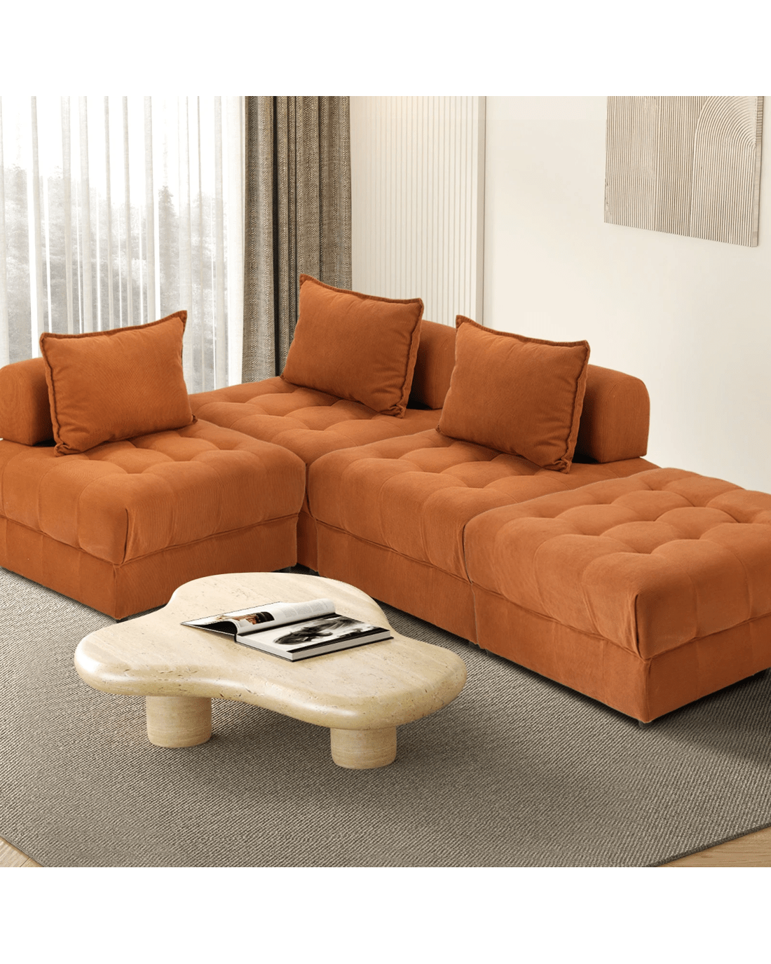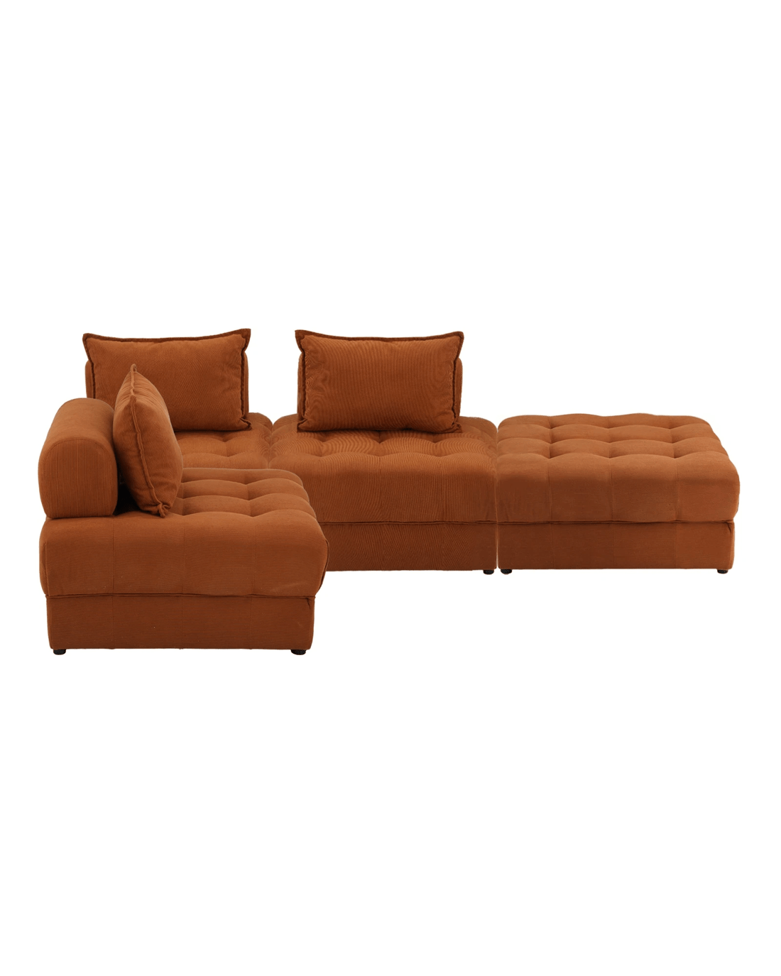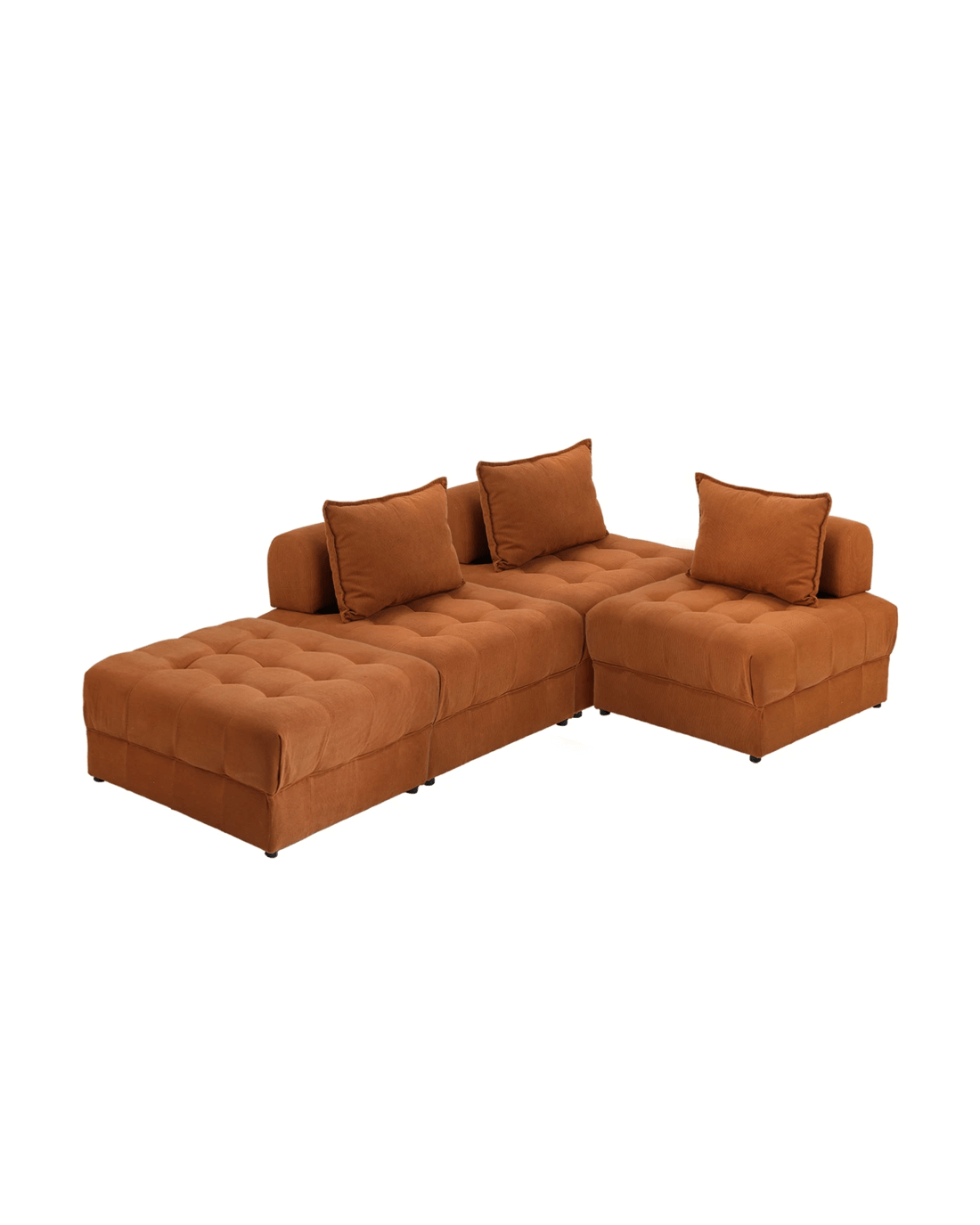 Oikiture 4 Seater Velvet Modular Sofa & Ottoman Set Armless Tofu Back - Brown - Brown