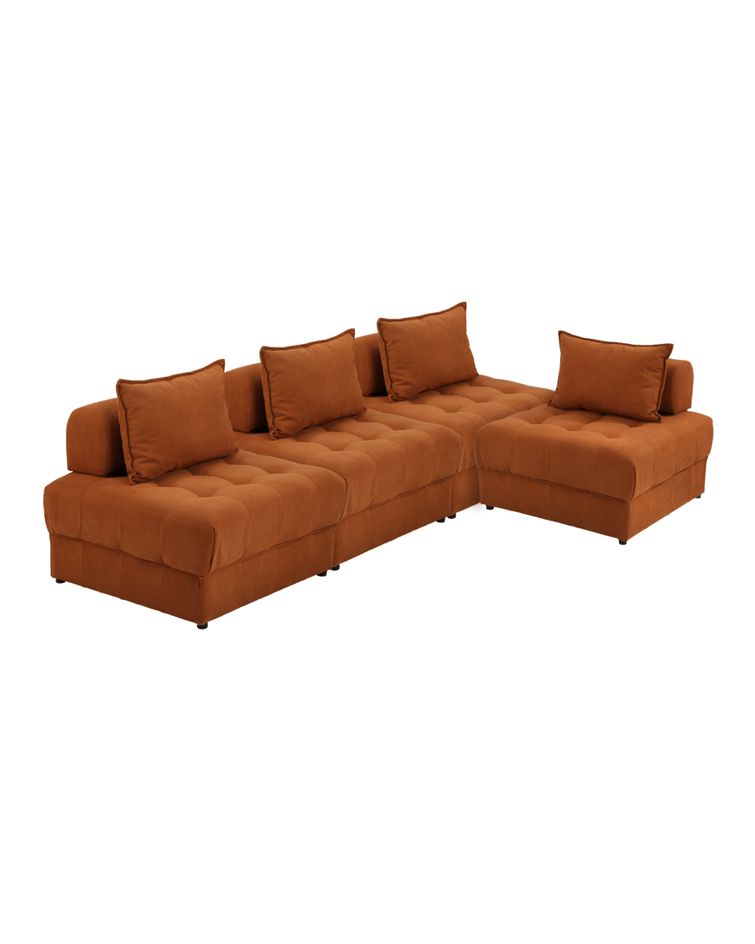 Oikiture 4 Seater Velvet Modular Sofa Lounge Chair Armless Tofu Back - Brown - Brown