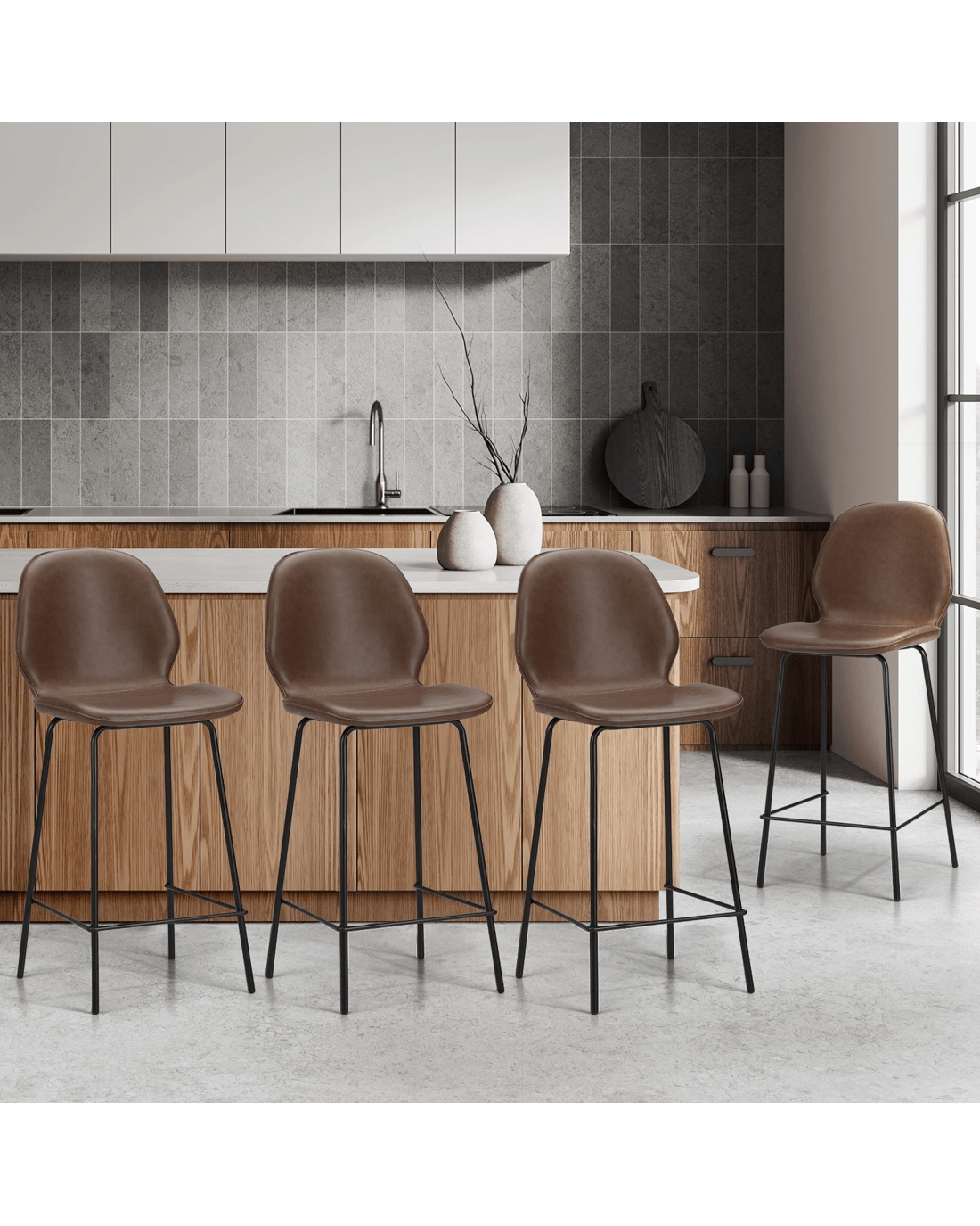 Sold by Kamprad's Oikos 1943Oikiture 4PCS Bar Stools Kitchen Counter Chair Metal - Brown