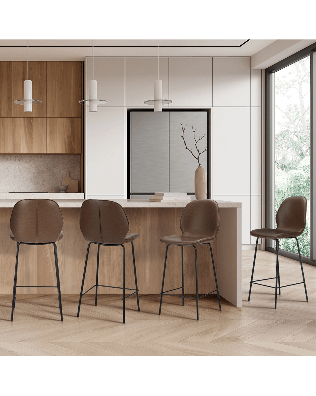 Underneath, the integrated footrest provides a firm footing while the anti-slip floor protectors also ensure that your pristine floor is never in danger of damage or scratches with every robust bar stool use.