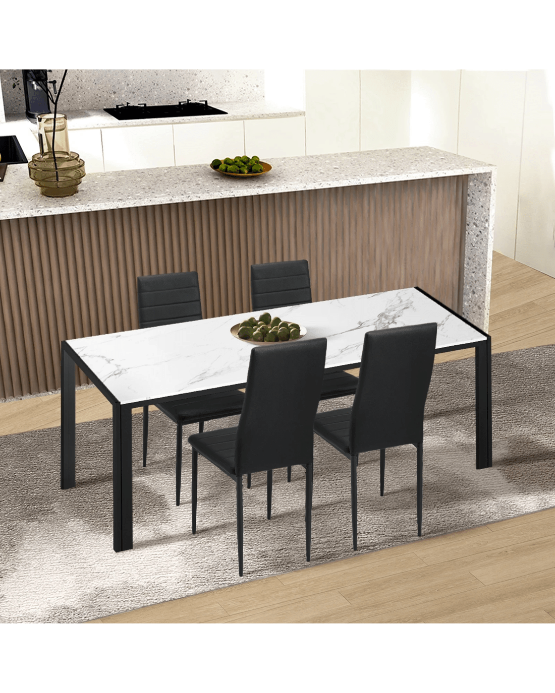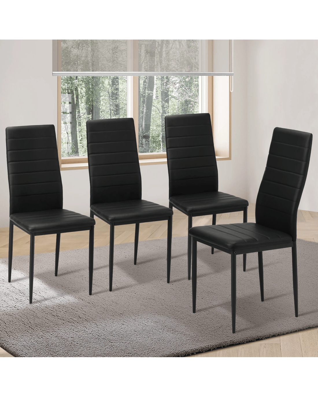 Sold by Kamprad's Oikos 1943Oikiture 4pcs Dining Chairs High-back Kitchen Chair Padded Faux Leather - Black