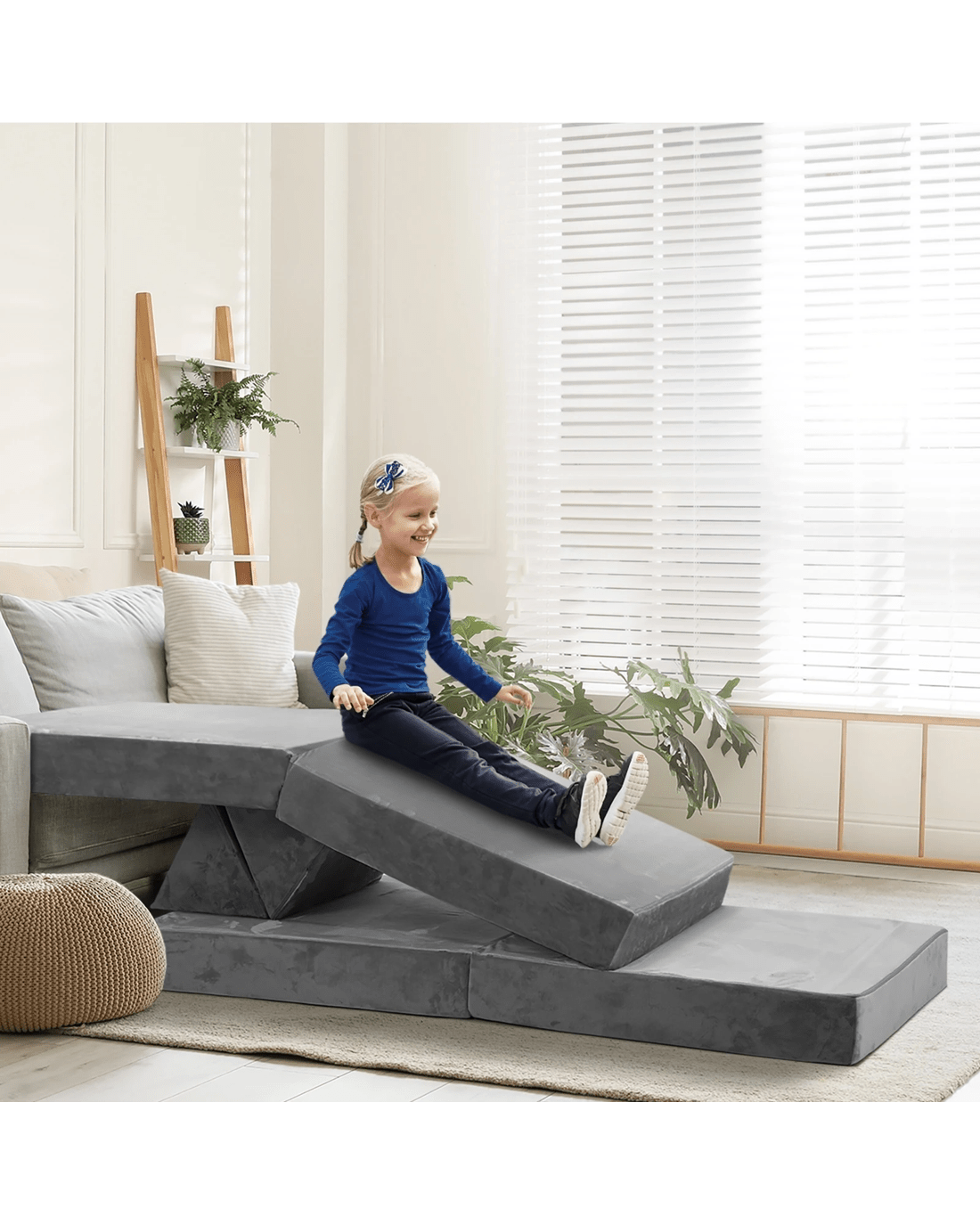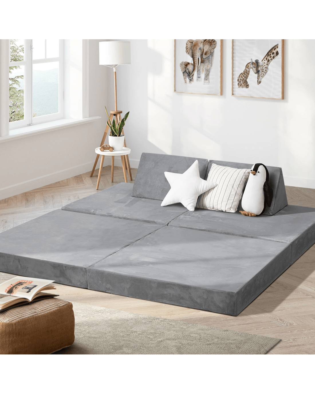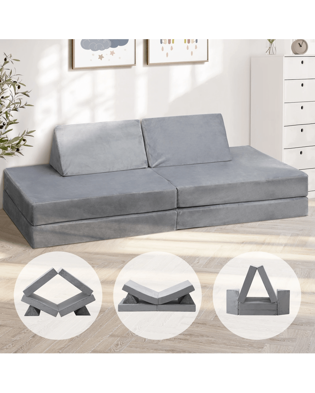 Kids always love fun activities. And now they can have more fun and games and literally learn about 3-dimensional play with their favourite couch. Magical would be the one of the best terms to describe the Oikiture Kids Play Couch. From a simple two-seater floor couch, it can easily transform into various objects by shifting and moving the cushions around. Stack, layer, fold, unfold, aggregate or separate, the modular-design couch can be anything that matches your child's creativity and imagination. House, tent, cubicle, stage, furniture, spaceship or robot to name just a few. The transformation goes on. Better still, get more than one set and extend the magic! Of course, the couch is also great for chilling out for your child to interact with their tablets, do some reading, catch up on homework or simply having an afternoon rest and snooze. Upholstered in a comfortable velvet fabric, the couch also features extra-thick padded cushions with zipped covers for easy cleaning and washing. From the simple to the complex, the Oikiture Kids Play Couch is a geometrical wonder in more ways than one.
