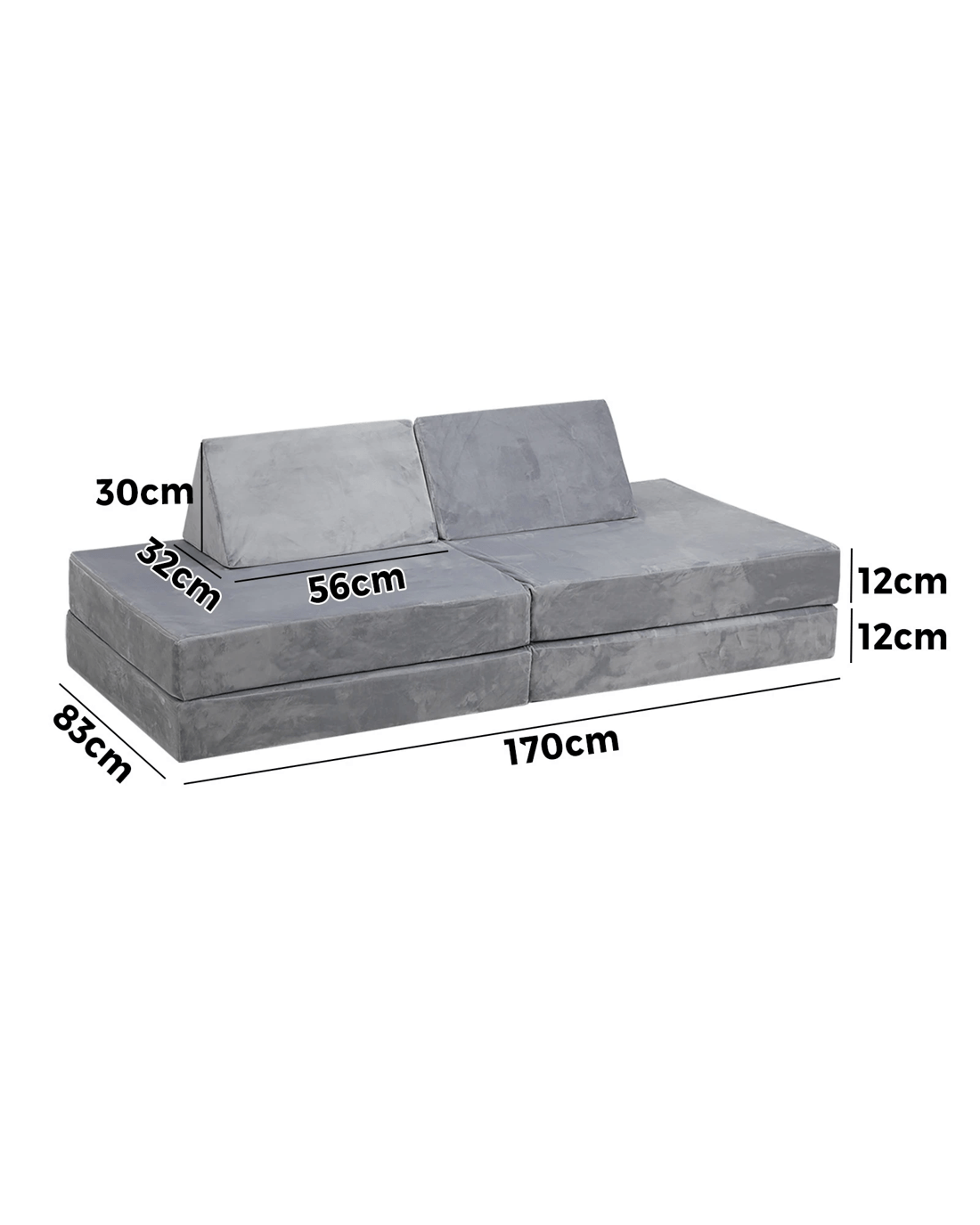 Sold by Kamprad's Oikos 1943Oikiture 4Pcs Kids Sofa Play Couch Modular Lounge Cushion Convertible Playset - Grey