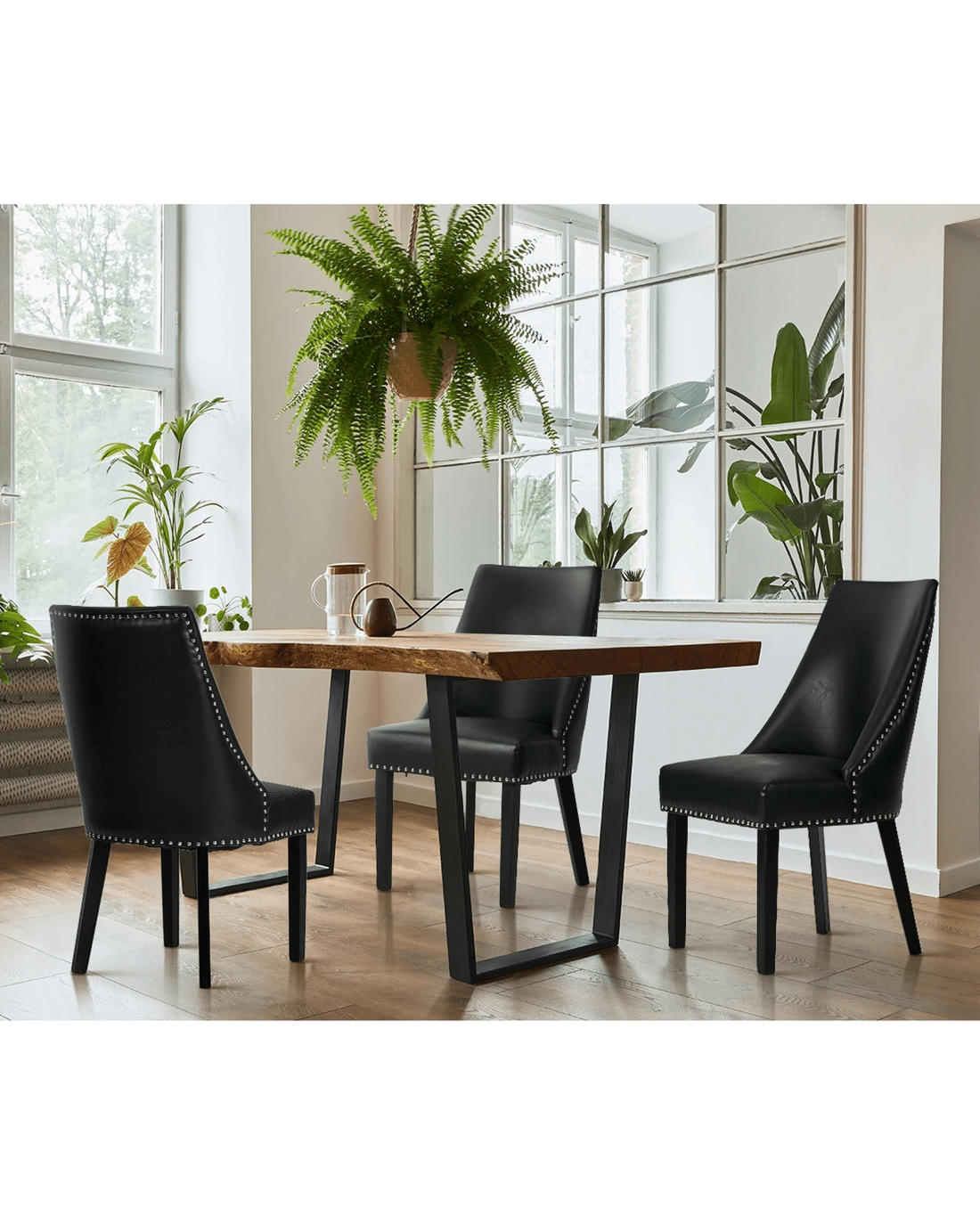 Sold by Kamprad's Oikos 1943Oikiture 4PCs PU Leather Dining Chair Kitchen Padded Seat Winglet Design - Black