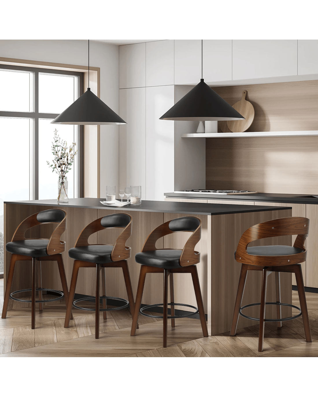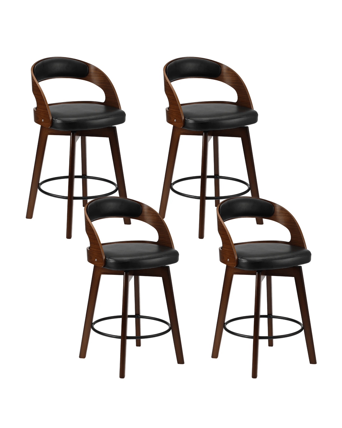Sold by Kamprad's Oikos 1943Oikiture 4x Bar Stools Kitchen Counter Stool Swivel Dining Chair Pu Leather - Black
