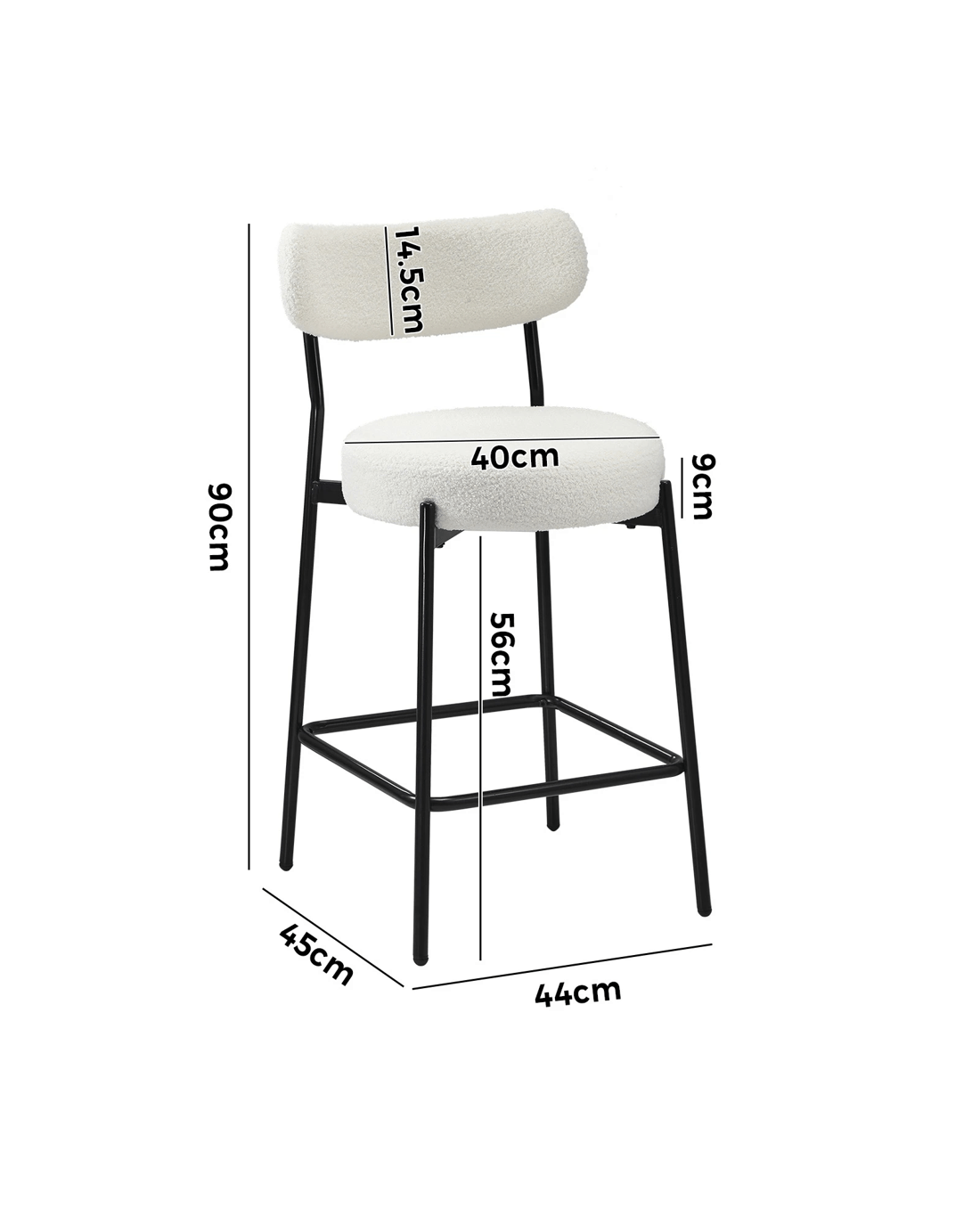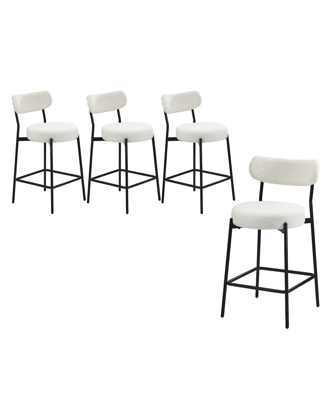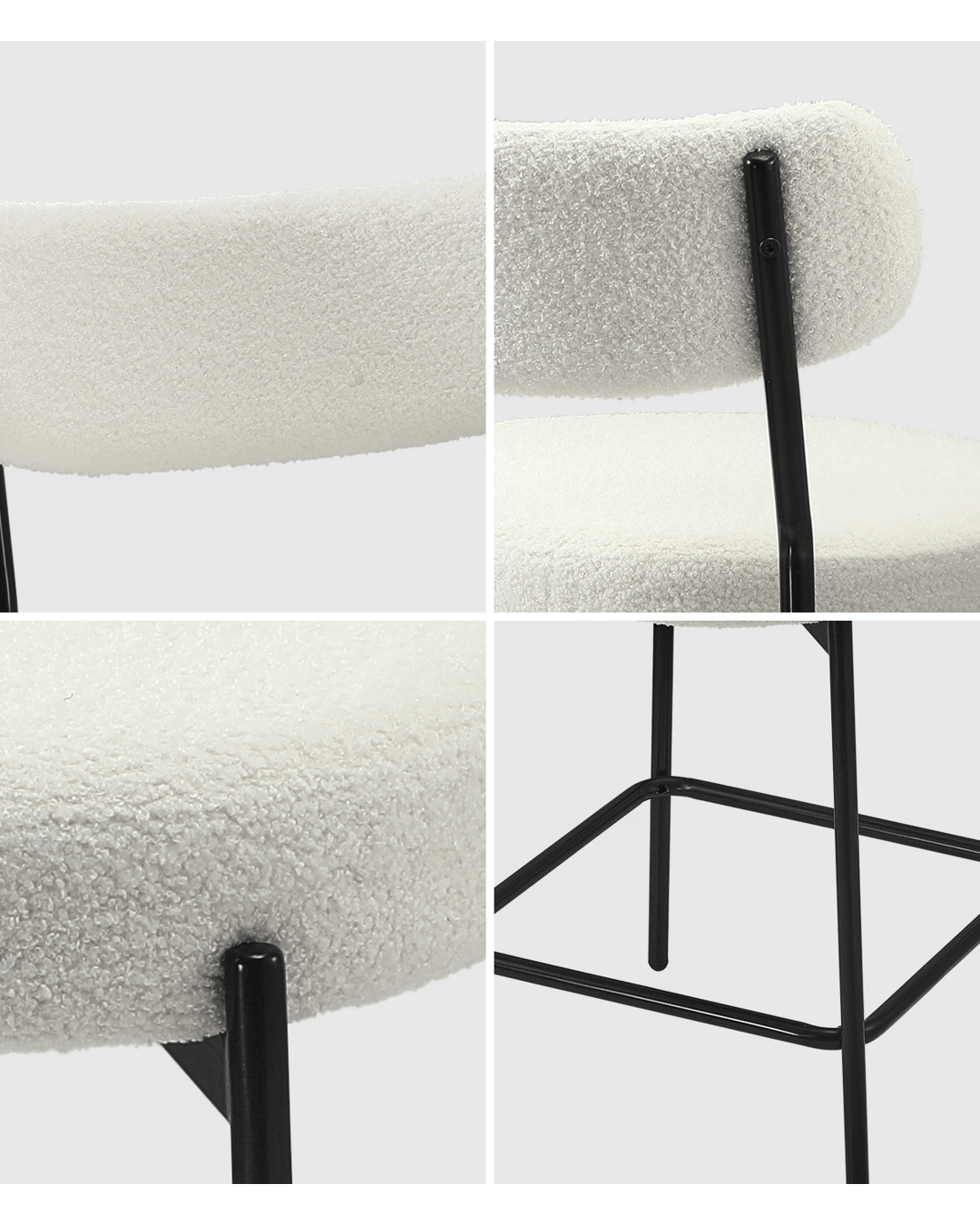 Sold by Kamprad's Oikos 1943Oikiture 4x Bar Stools Kitchen Dining Chairs Counter Stool Boucle Fabric - White
