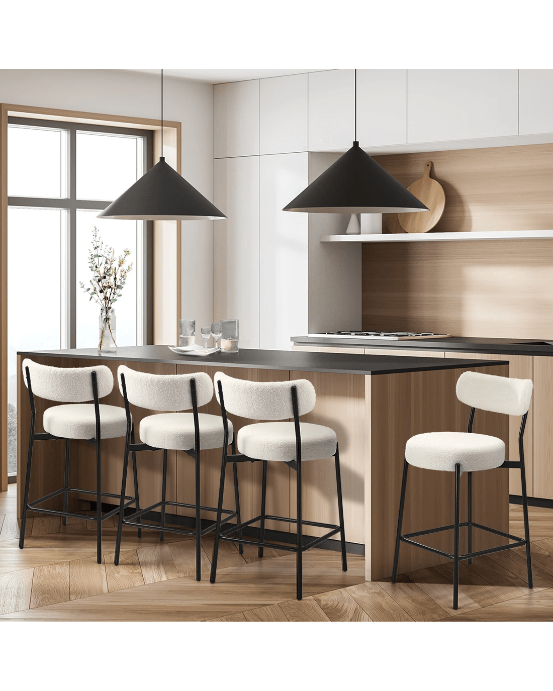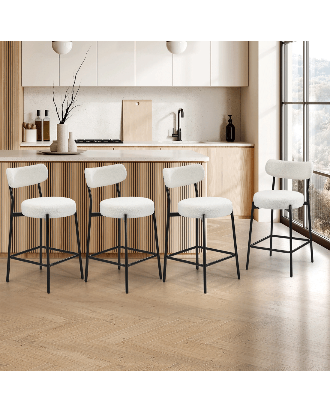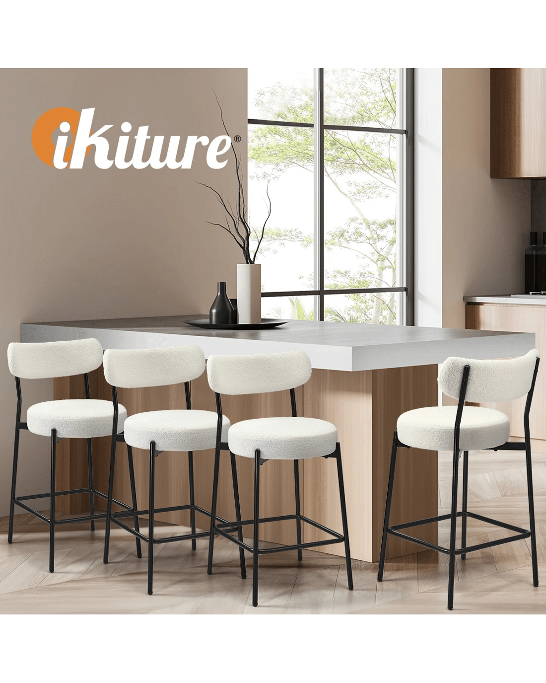 Sold by Kamprad's Oikos 1943Oikiture 4x Bar Stools Kitchen Dining Chairs Counter Stool Boucle Fabric - White