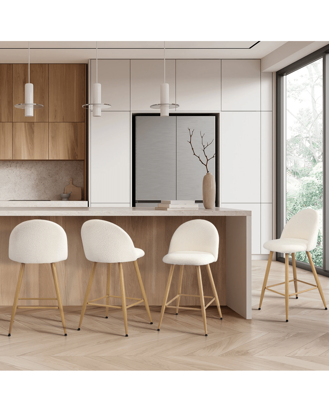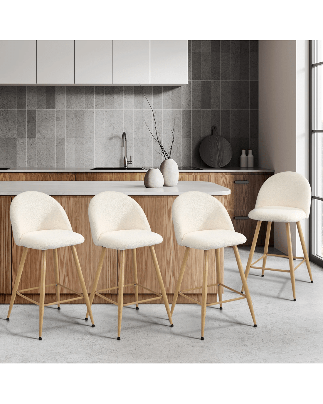 Sold by Kamprad's Oikos 1943Oikiture 4x Bar Stools Kitchen Dining Chairs Counter Stool Boucle Padded Stools - Beige