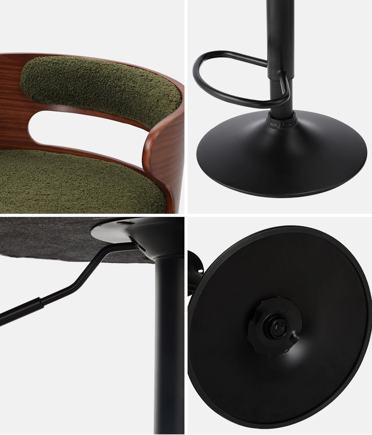 Oikiture 4x Bar Stools Kitchen Gas Lift Swivel Chairs Stool Wooden Boucle - Green
