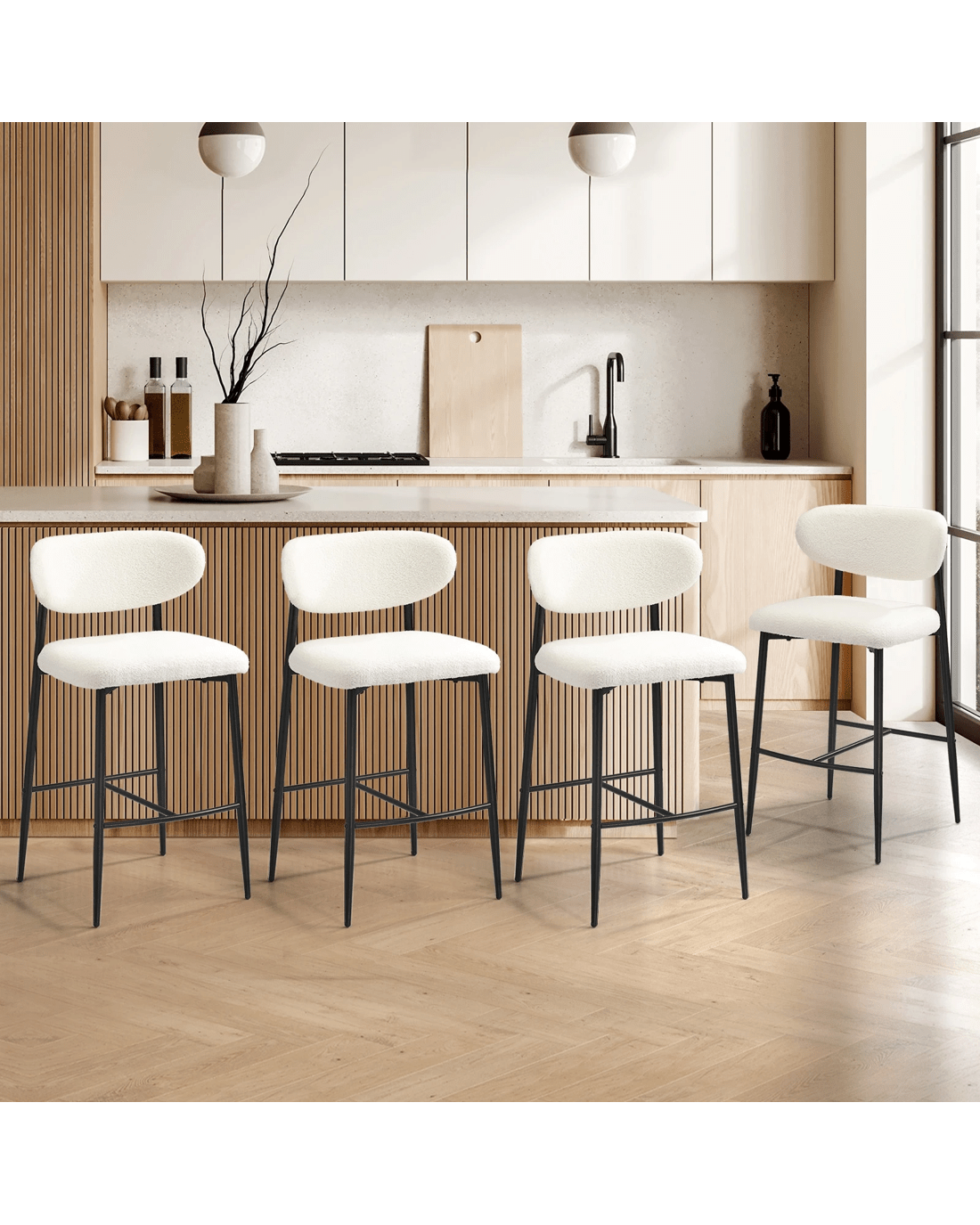 Sold by Kamprad's Oikos 1943Oikiture 4x Bar Stools Kitchen Stool Counter Chair Boucle Fabric - Black