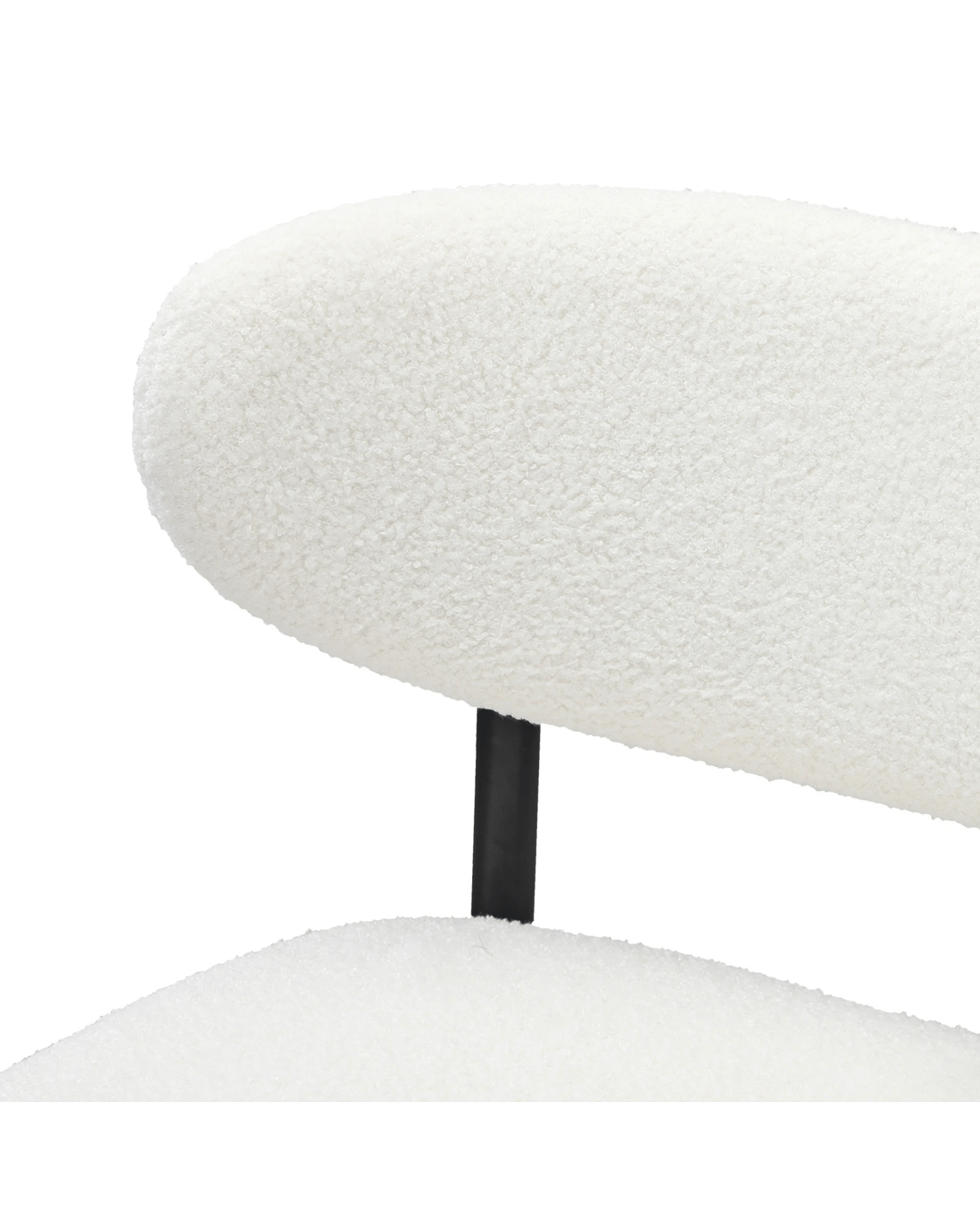Appreciating the finer things in life, the cosy boucle fabric upholstered seat is meticulously finished with near-flawless workmanship and padded with rich comfort. The finesse is in all the details. You'll also appreciate the wide seat and supportive, contoured backrest (similarly wrapped in boucle fabric) while you sit back and chill out with your favourite beverage.