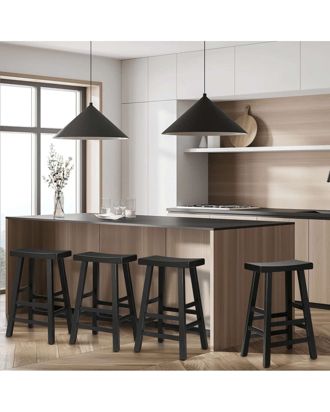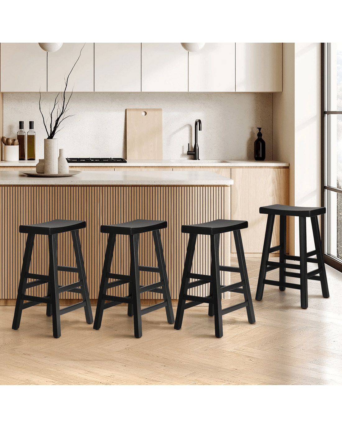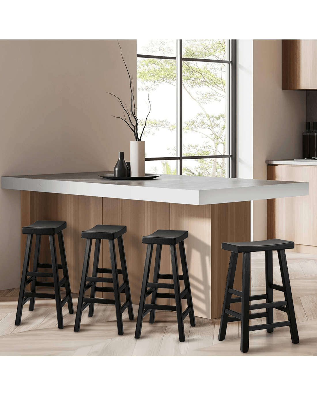 Oikiture 4x Bar Stools Kitchen Stool Wooden Counter Chairs Barstools - Black