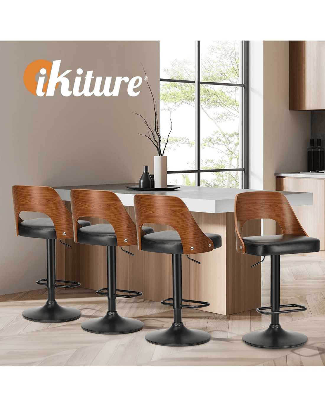 Sold by Kamprad's Oikos 1943Oikiture 4x Bar Stools Swivel Counter Stool Kitchen Gas Lift Chairs - Black