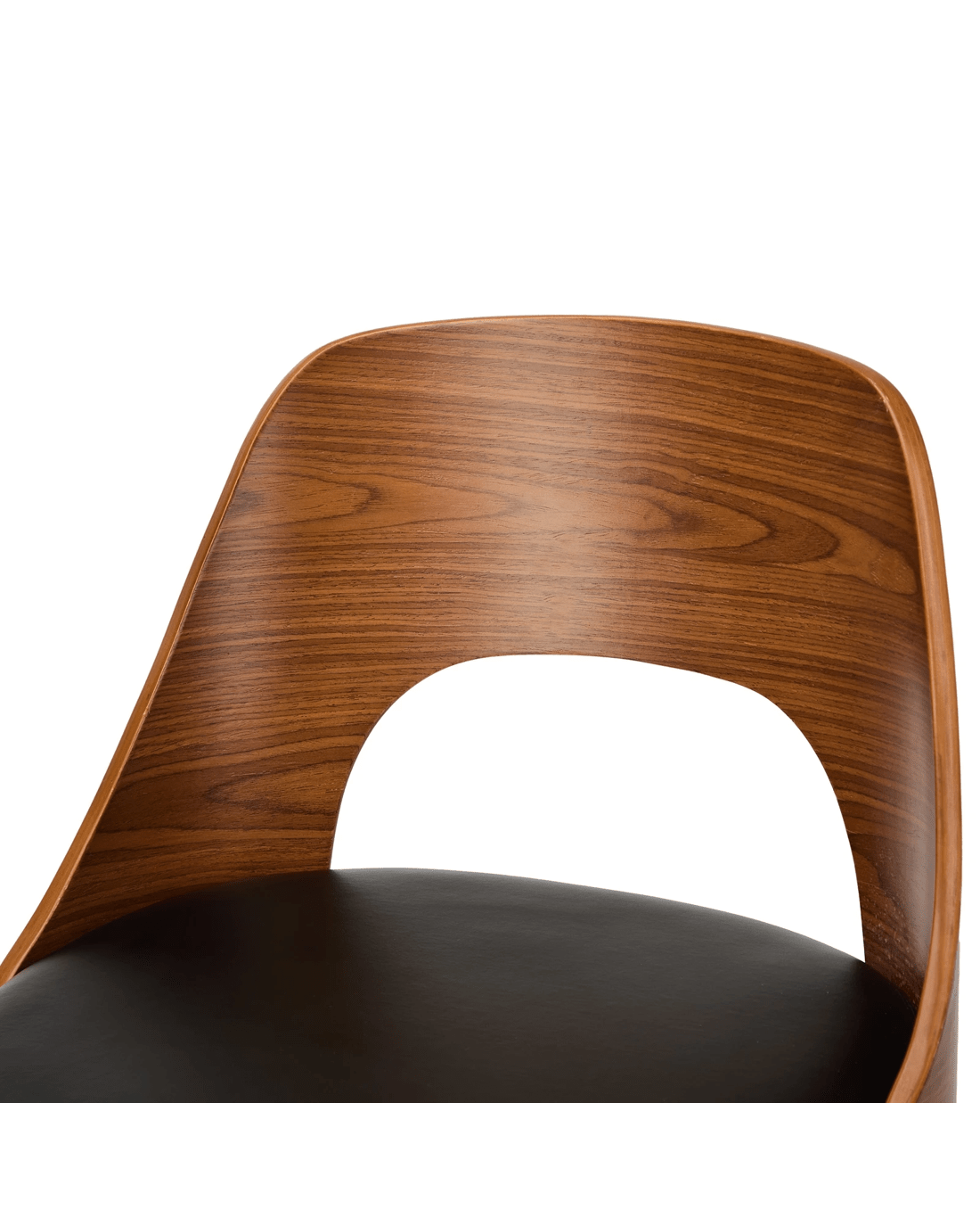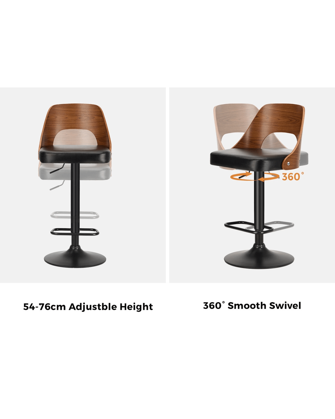 Better still, the PU leather upholstered seat is flawlessly finished and padded with rich comfort. Not least, the contoured and hollow-out bentwood backrest with a beautiful woodgrain texture also provides ample support while you sit back and chill out. Seat height can be easily adjusted to suit various heights with its SGS-certified gas lift and heavy-duty working mechanism, and the seat can be easily rotated to face all directions.