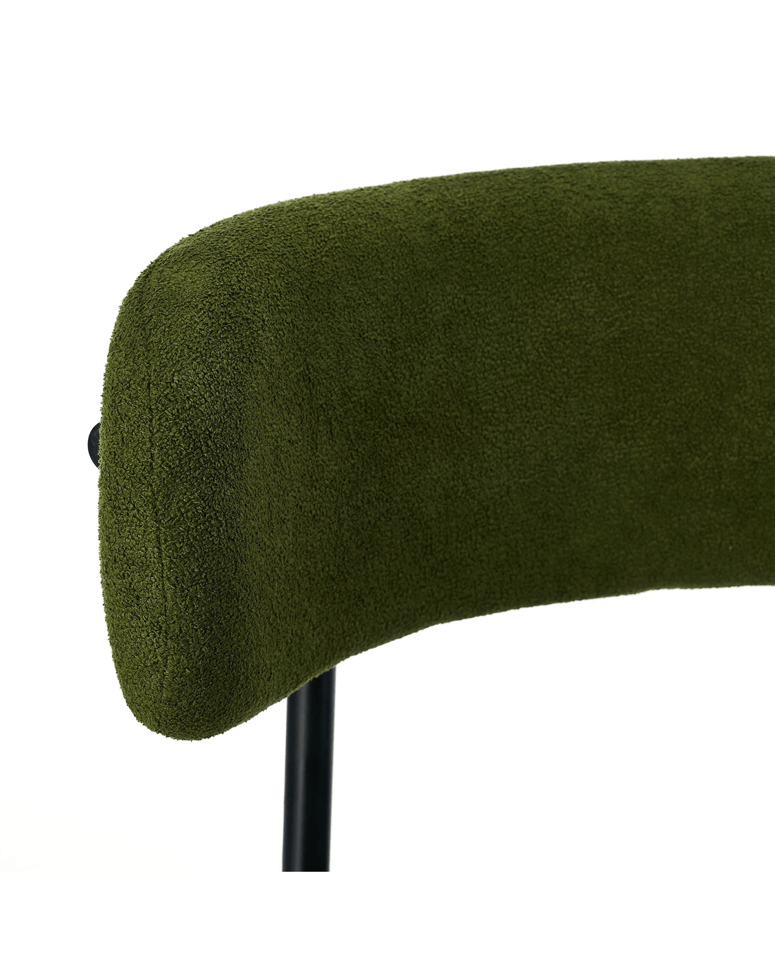With its luxurious Boucle upholstery generously padded with high-density foam for the seat and backrest and, you're sitting on prime comfort. The contoured backrest also provides ample support for you to sit back and enjoy the seat. Soft and satisfying, the feeling is as good as savouring that delicious meal served to you. Aesthetically, the dining chair is simply captivating with its sleek powder-coated metal legs in chic black to accentuate the richness of the seat and curved backrest. A minimalist styling that renders maximum presence.