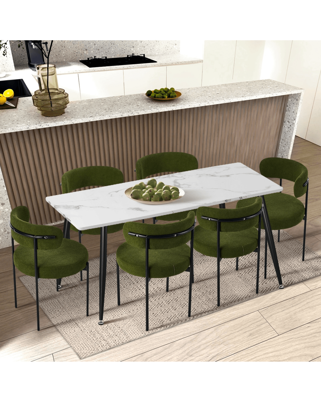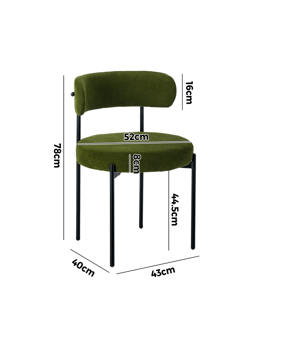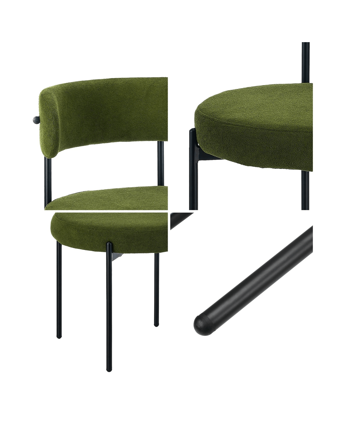 Sold by Kamprad's Oikos 1943Oikiture 4x Dining Chair Round Boucle Kitchen Lounge Seats Backrest - Green
