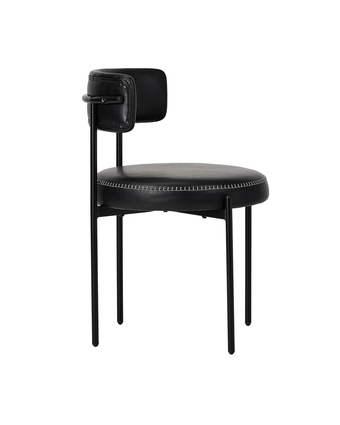 With its luxurious PU Leather upholstery generously padded with high-density foam for the seat and backrest and, you're sitting on prime comfort. The contoured backrest also provides ample support for you to sit back and enjoy the seat. Soft and satisfying, the feeling is as good as savouring that delicious meal served to you. Aesthetically, the dining chair is simply captivating with its sleek powder-coated metal legs in chic black to accentuate the richness of the seat and curved backrest. A minimalist styling that renders maximum presence.