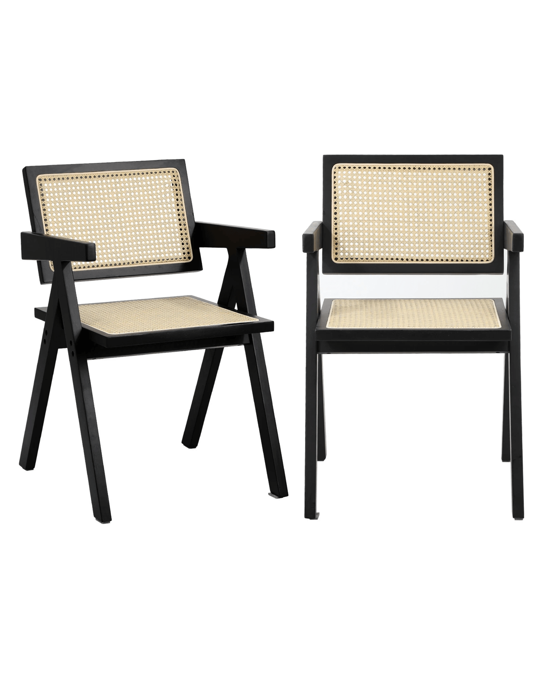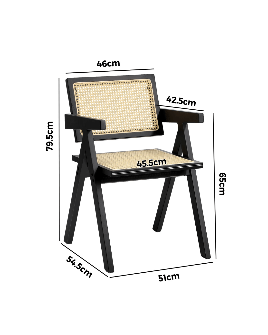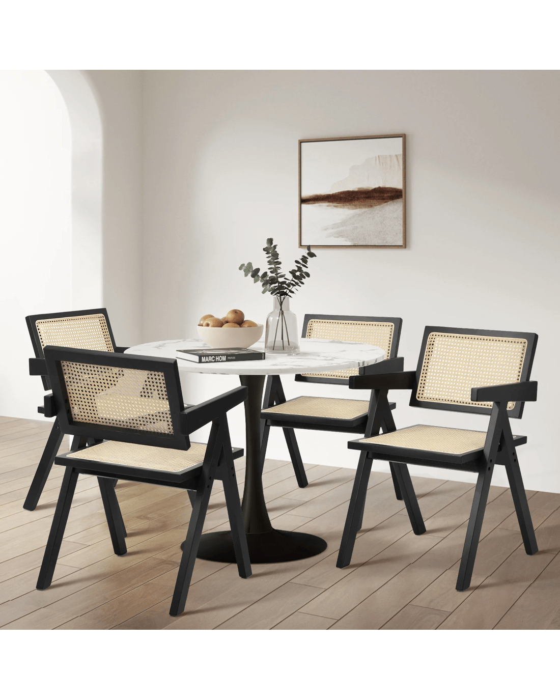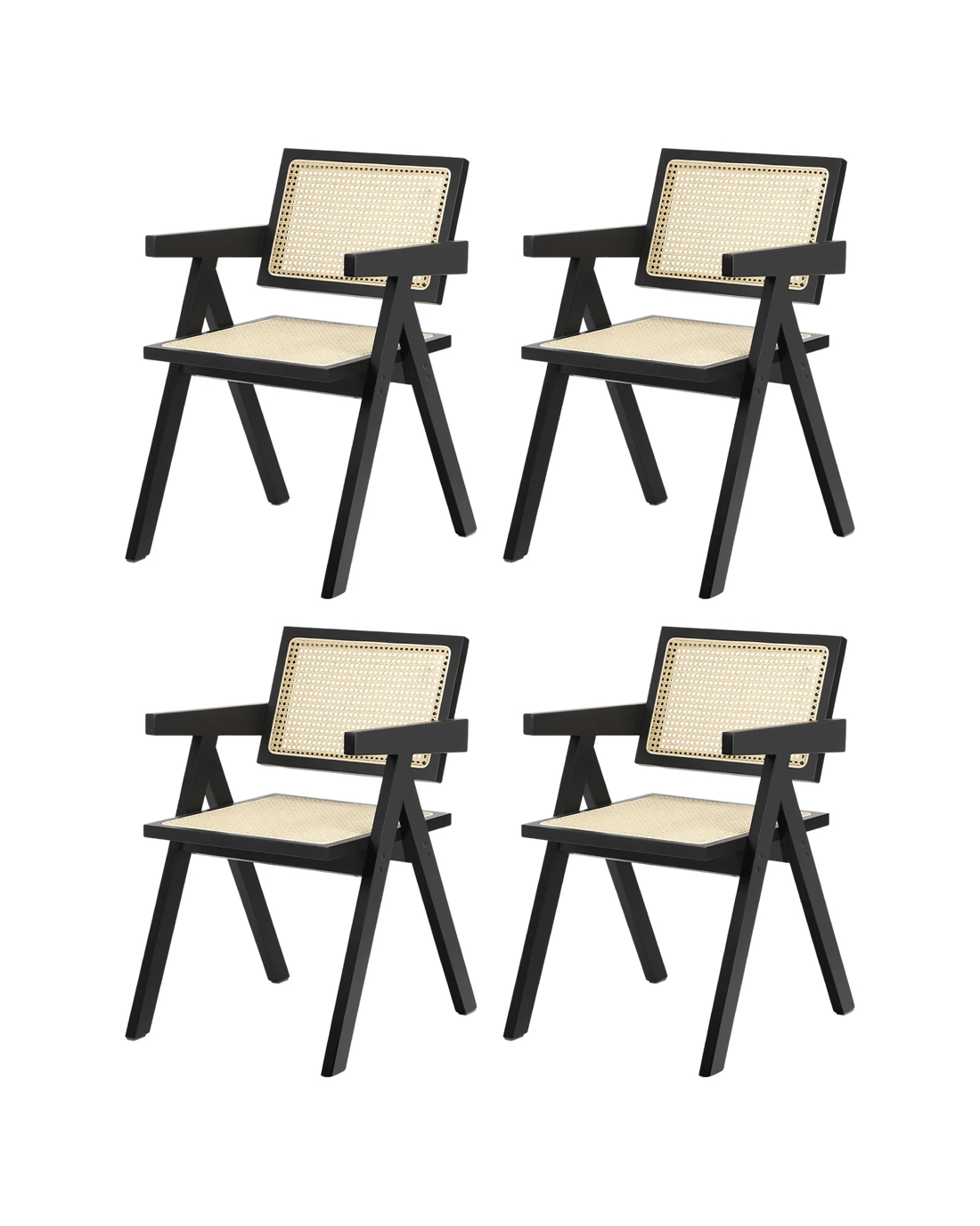 Oikiture 4x Dining Chairs Rattan Chair Wooden Accent Chair - Black