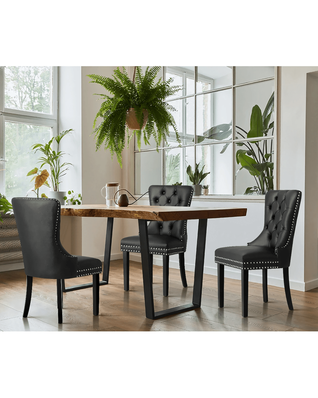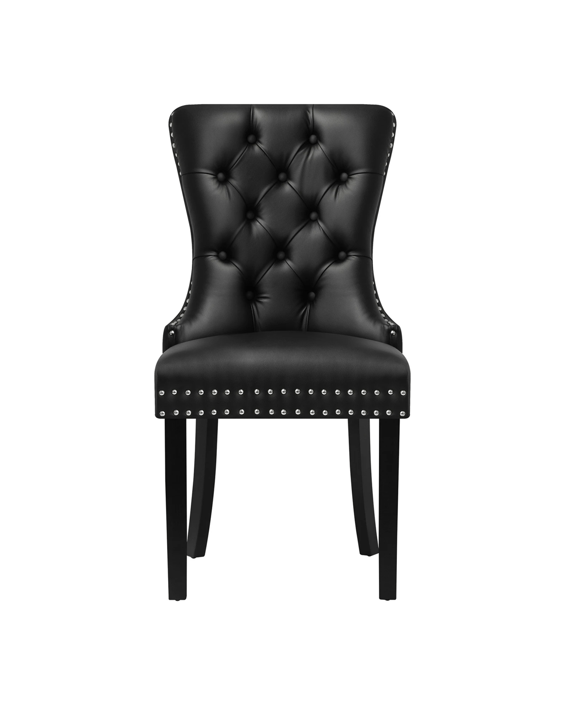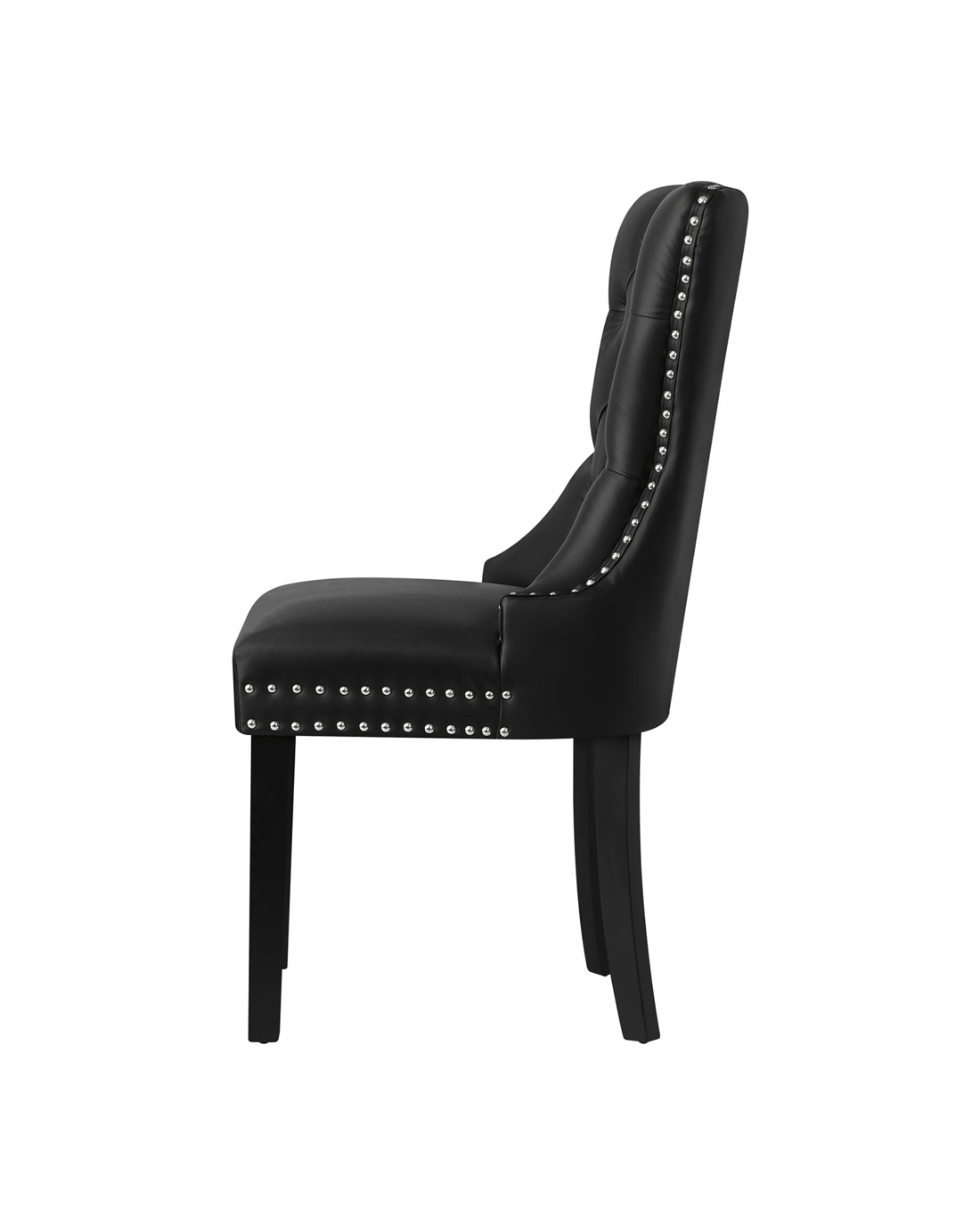 The contoured high back backrest is designed to offer greater support that wraps around your upper body while the well-padded high-density foam seat is as comfortable as ever with every sitting. Better still, the interior side of the seat are fitted with silver stud trim and button tufted backrest oozes class and sophistication all round. With its sturdy wooden legs, the dining chair is also extremely stable and handle up to 150kg in weight capacity.