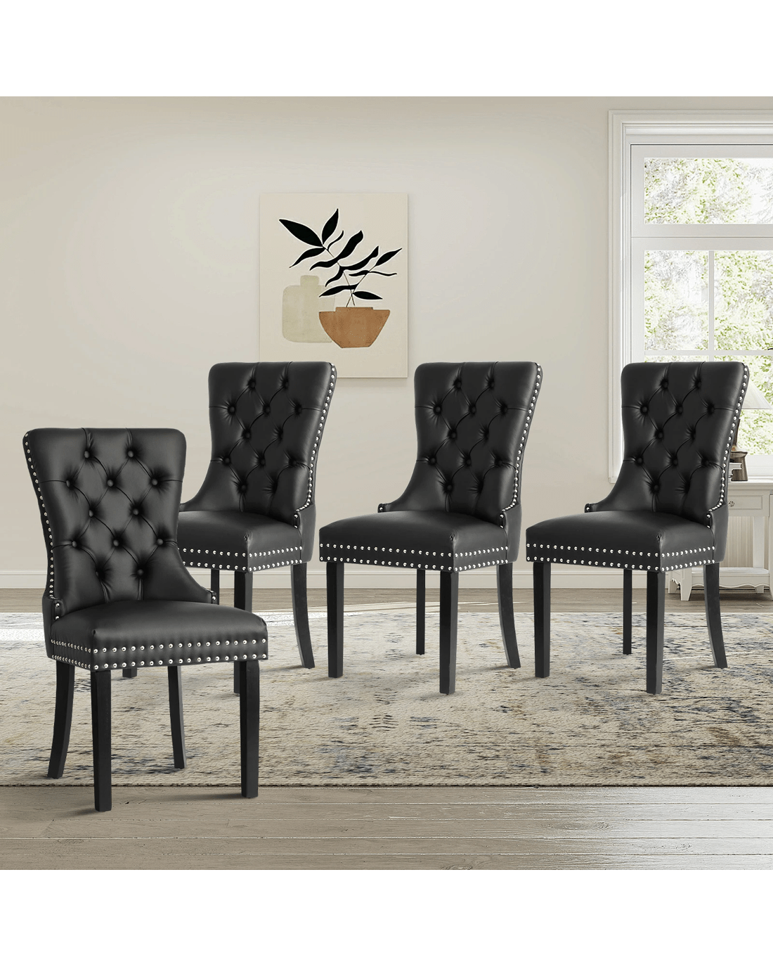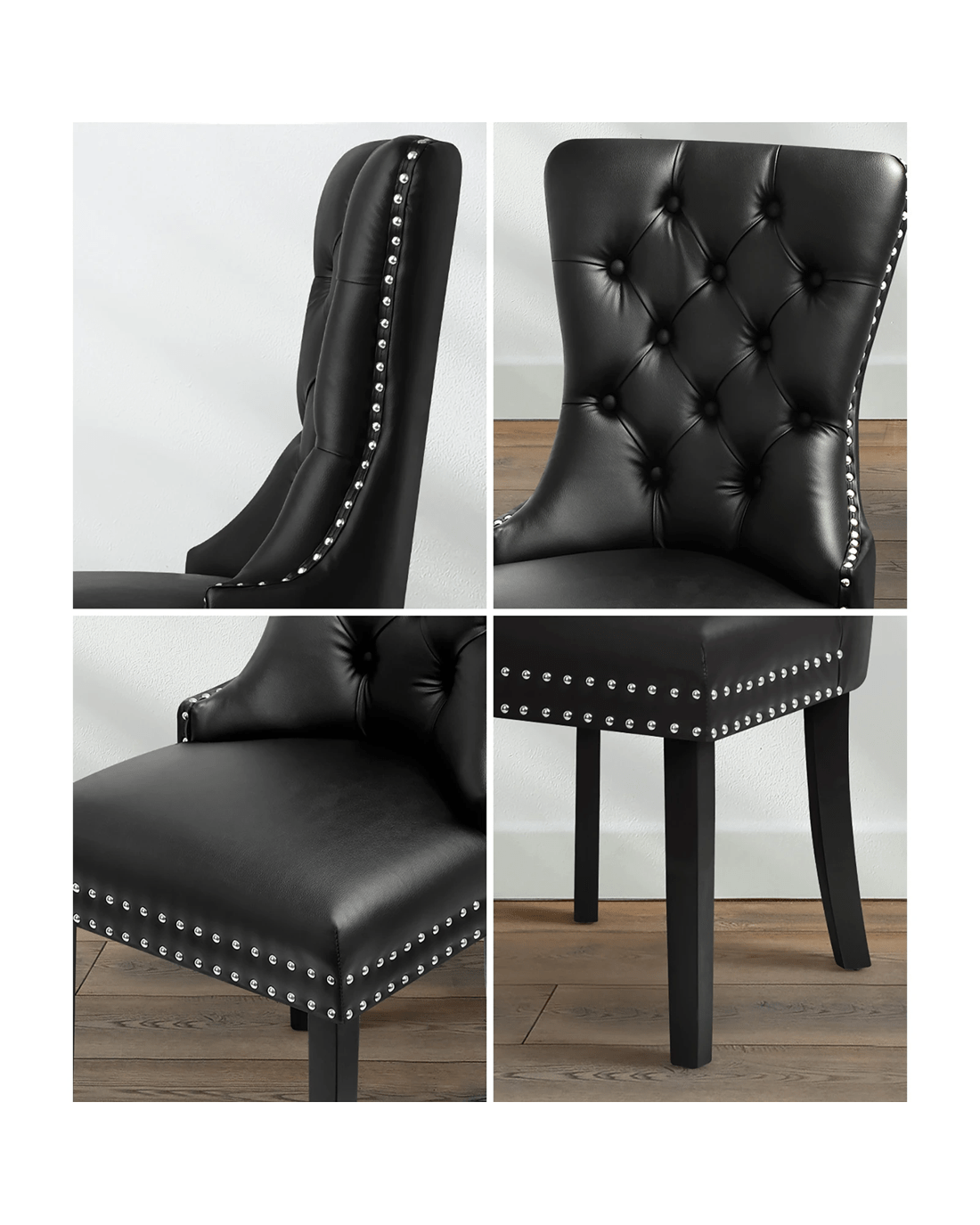 Sold by Kamprad's Oikos 1943Oikiture 4x Dining Chairs Upholstered French Provincial Tufted PU Leather - Black