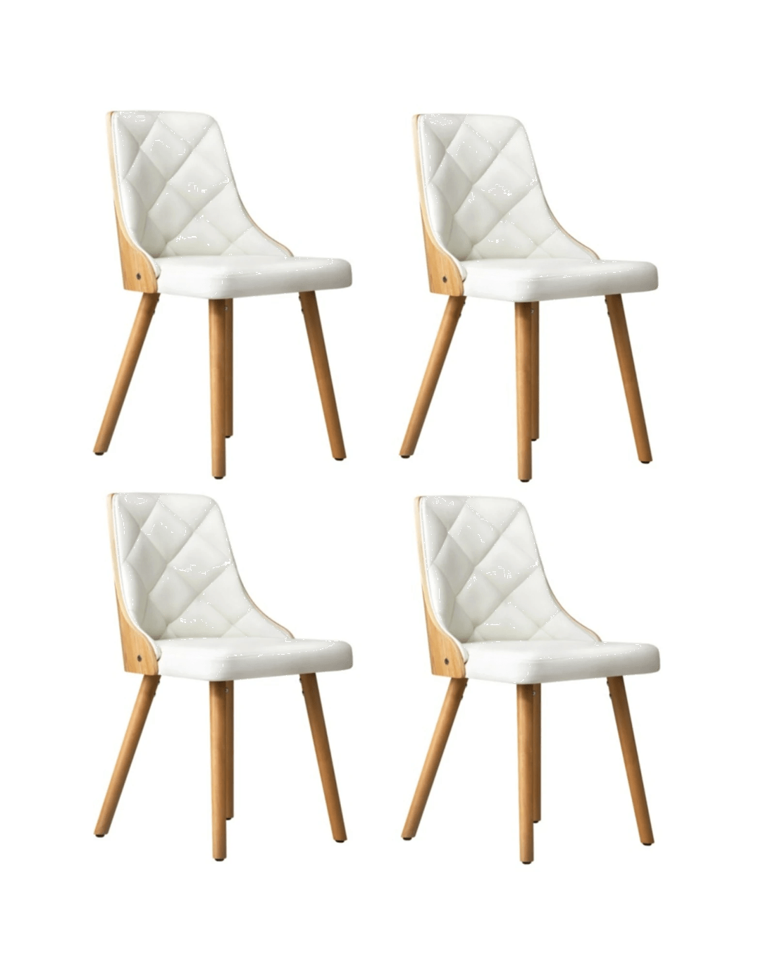 Oikiture 4x Dining Chairs Wooden Chair Kitchen Cafe Faux Leather Padded - White