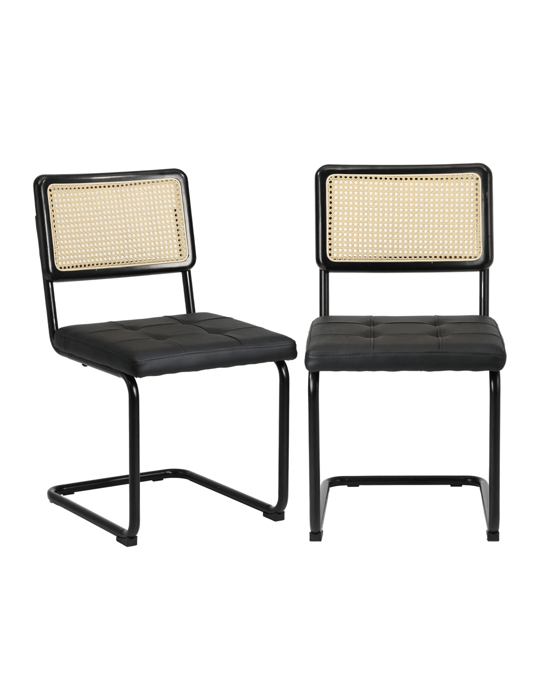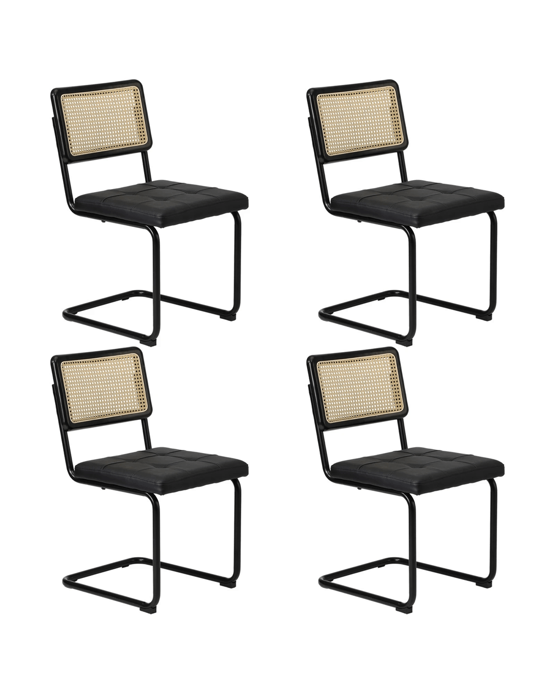 Sold by Kamprad's Oikos 1943Oikiture 4x Rattan Dining Chair Cesca Replica Cantilever PU Leather Padded - Black