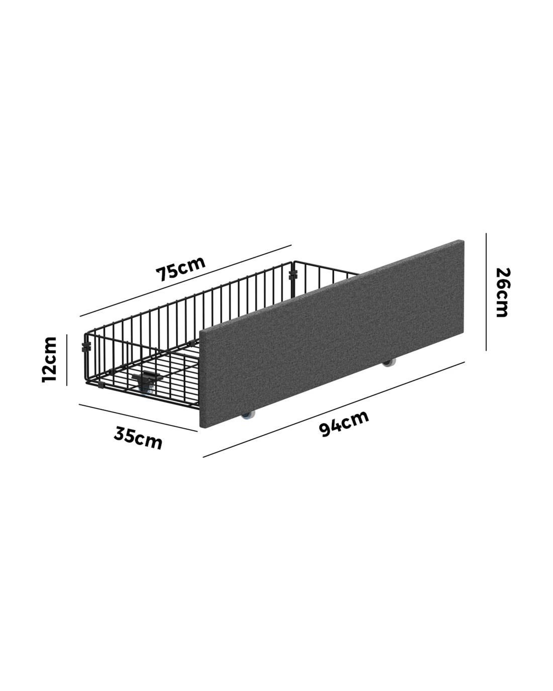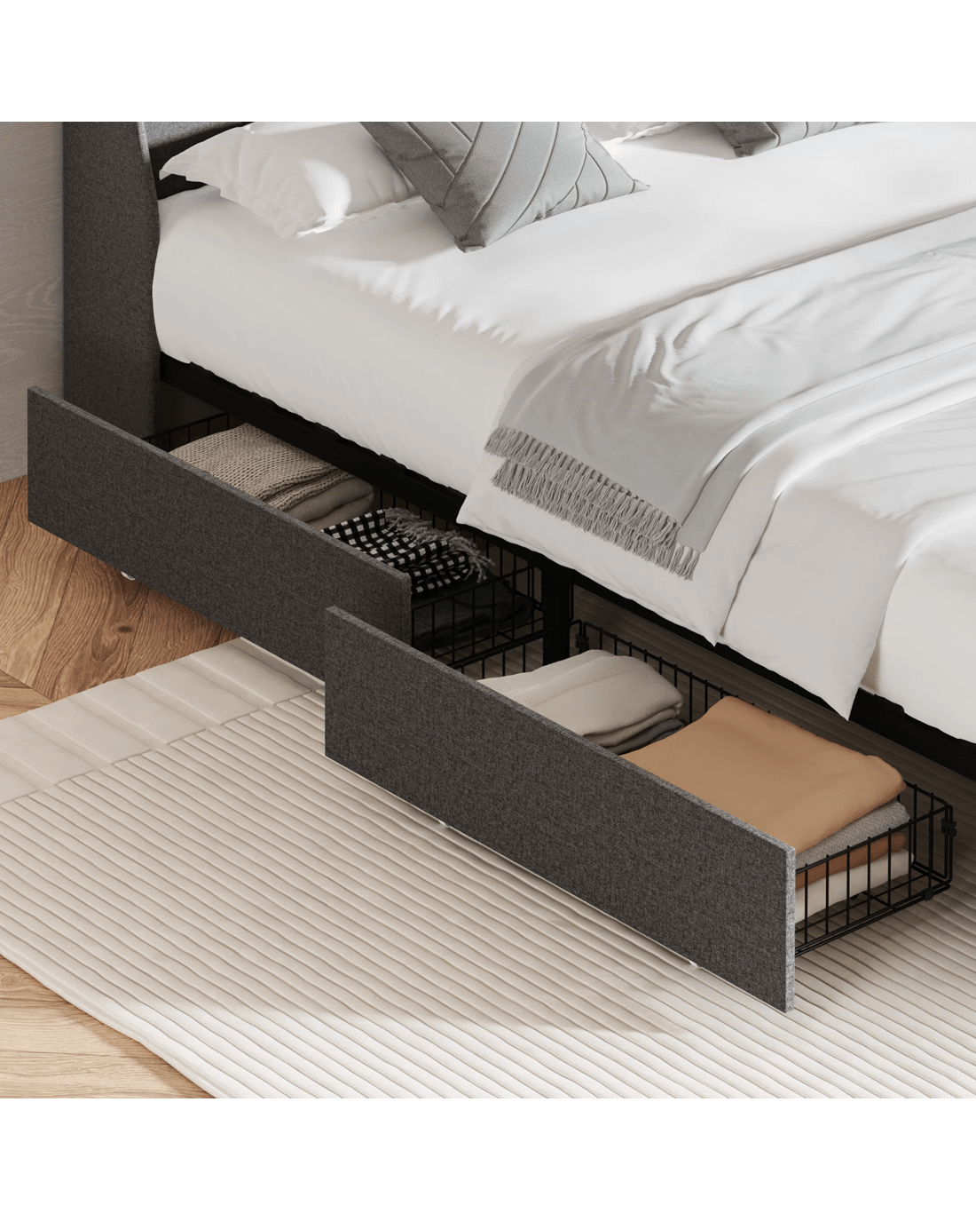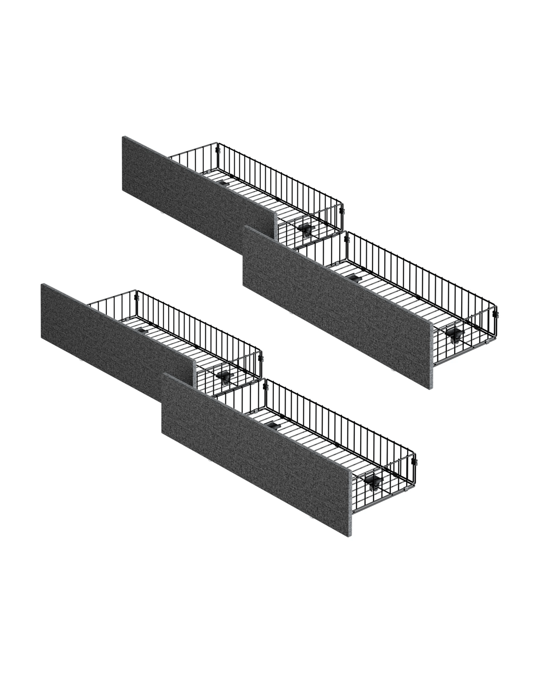 Oikiture 4x Trundle Drawers for Bed Frame with Wheels Metal - Grey - Grey