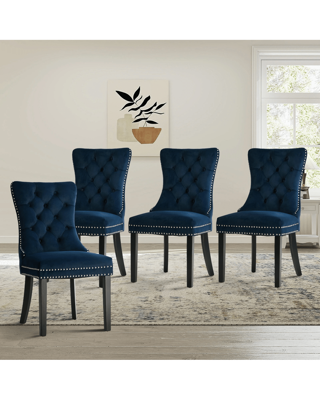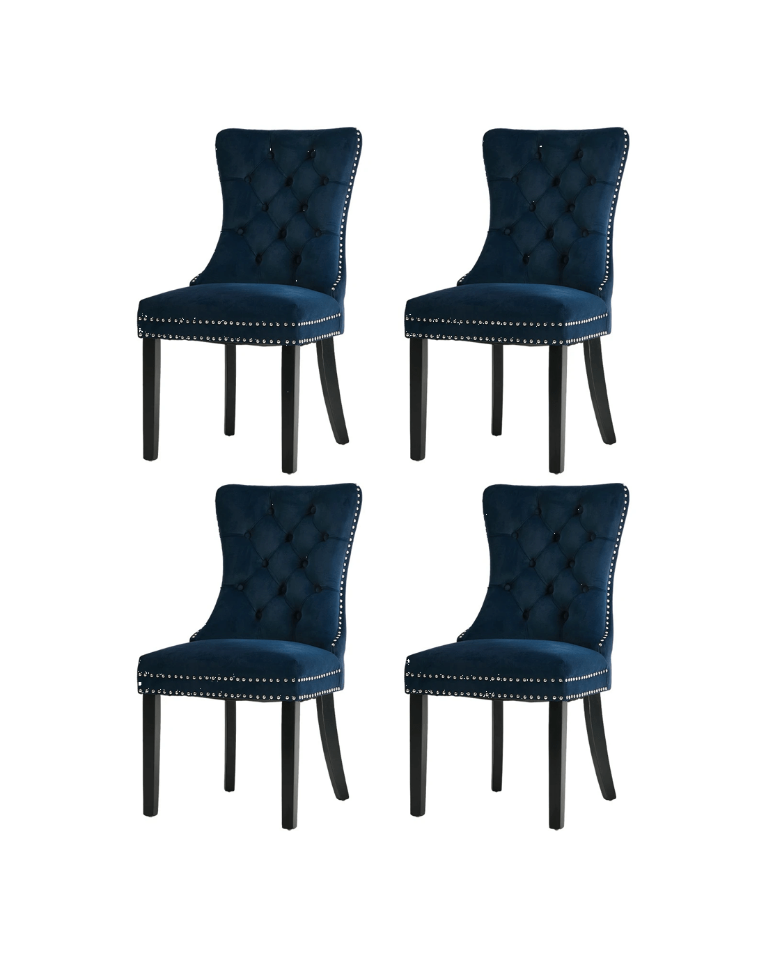Sold by Kamprad's Oikos 1943Oikiture 4x Velvet Dining Chairs Upholstered French Provincial Tufted - Blue