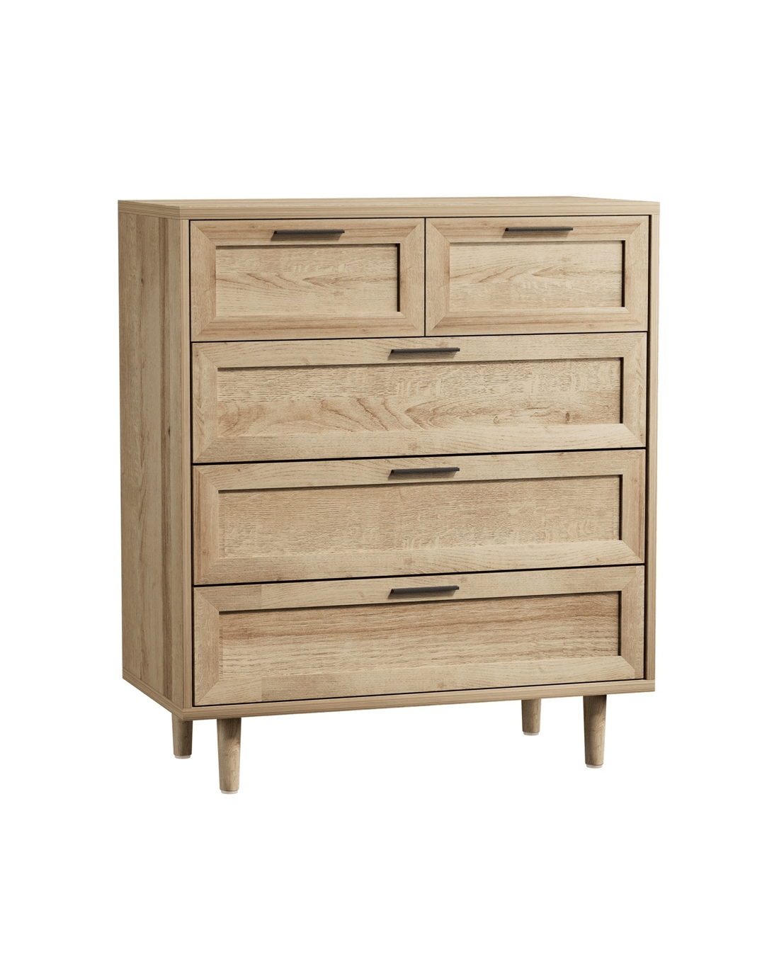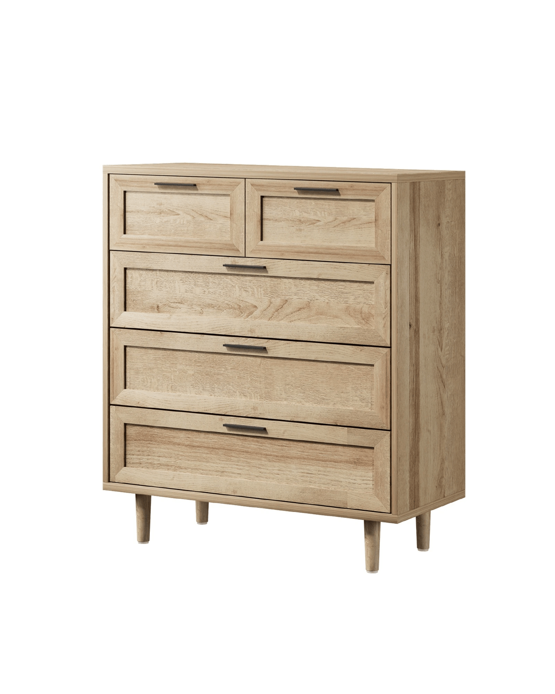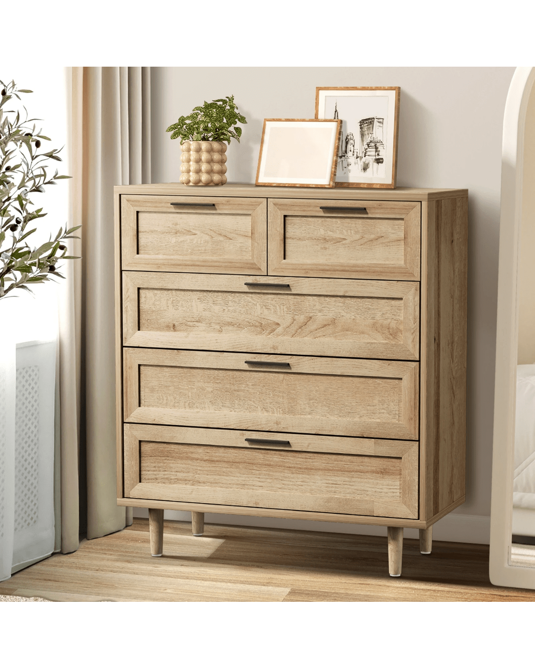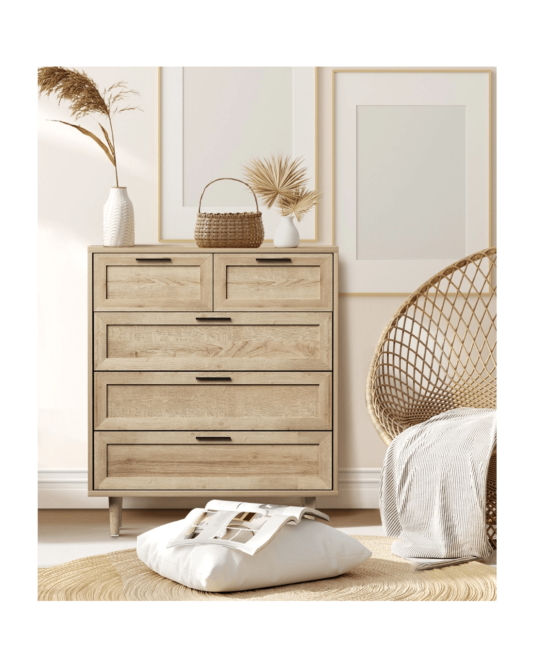 Oikiture 5 Chest Of Drawers Dresser Chest Storage Cabinet Tallboy - Natural