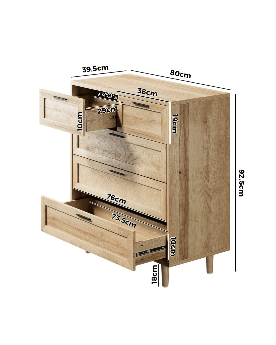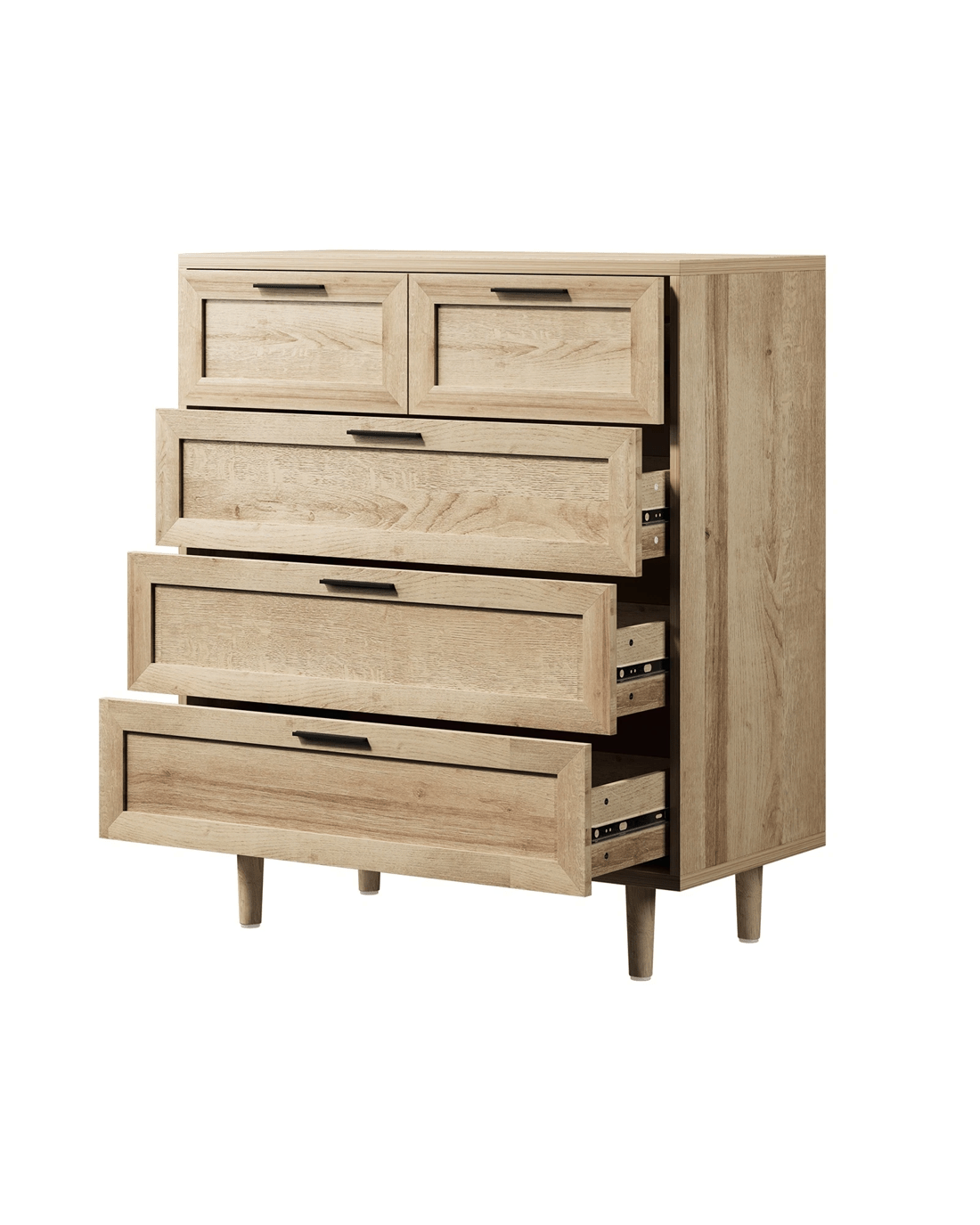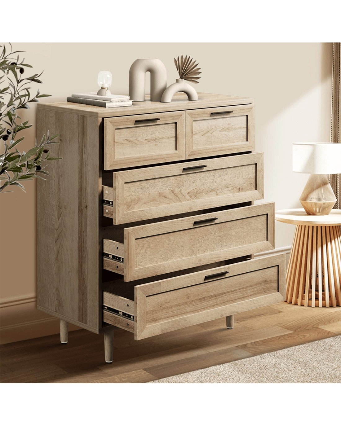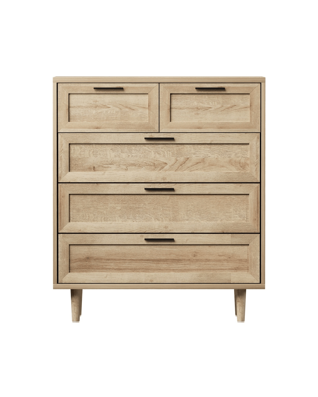 Oikiture 5 Chest Of Drawers Dresser Chest Storage Cabinet Tallboy - Natural