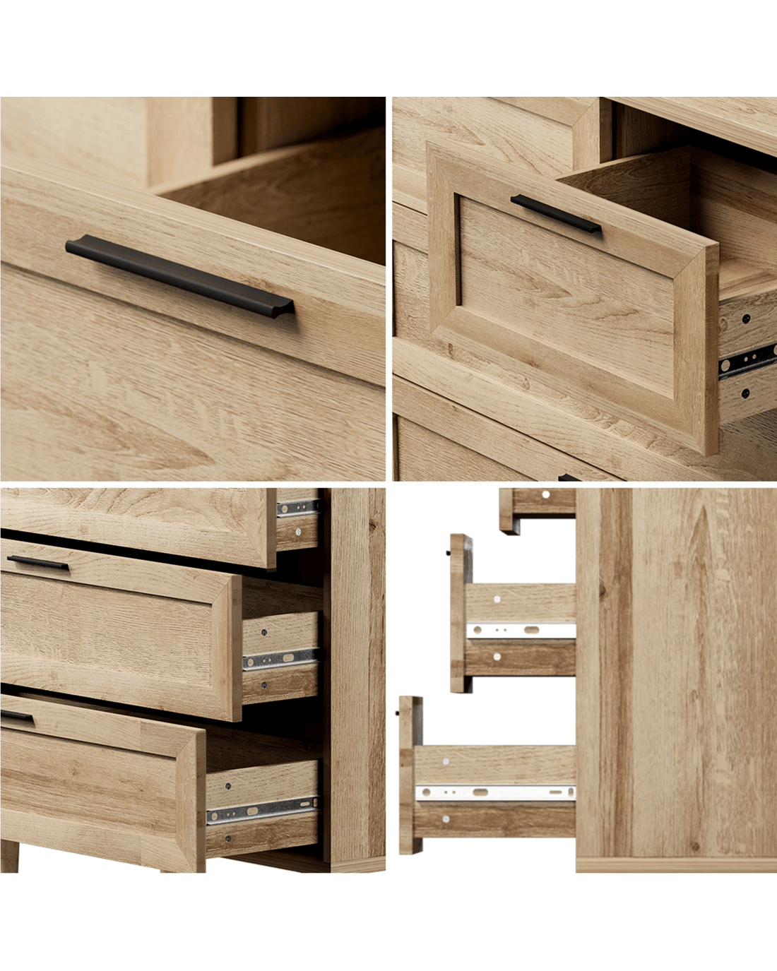 Constructed with 15mm particle board, the chest of drawers maintains a good sense of structure and durability. Plus, the sturdy solid wood legs are strong to the task and make for easy cleaning underneath the chest of drawers. The attention to detail is meticulous, evidenced by the fine workmanship from top to bottom. And maintaining the chest of drawers in its pristine condition is just a simple wipe away. Assembly is a breeze too with the easy-to-follow instructions.