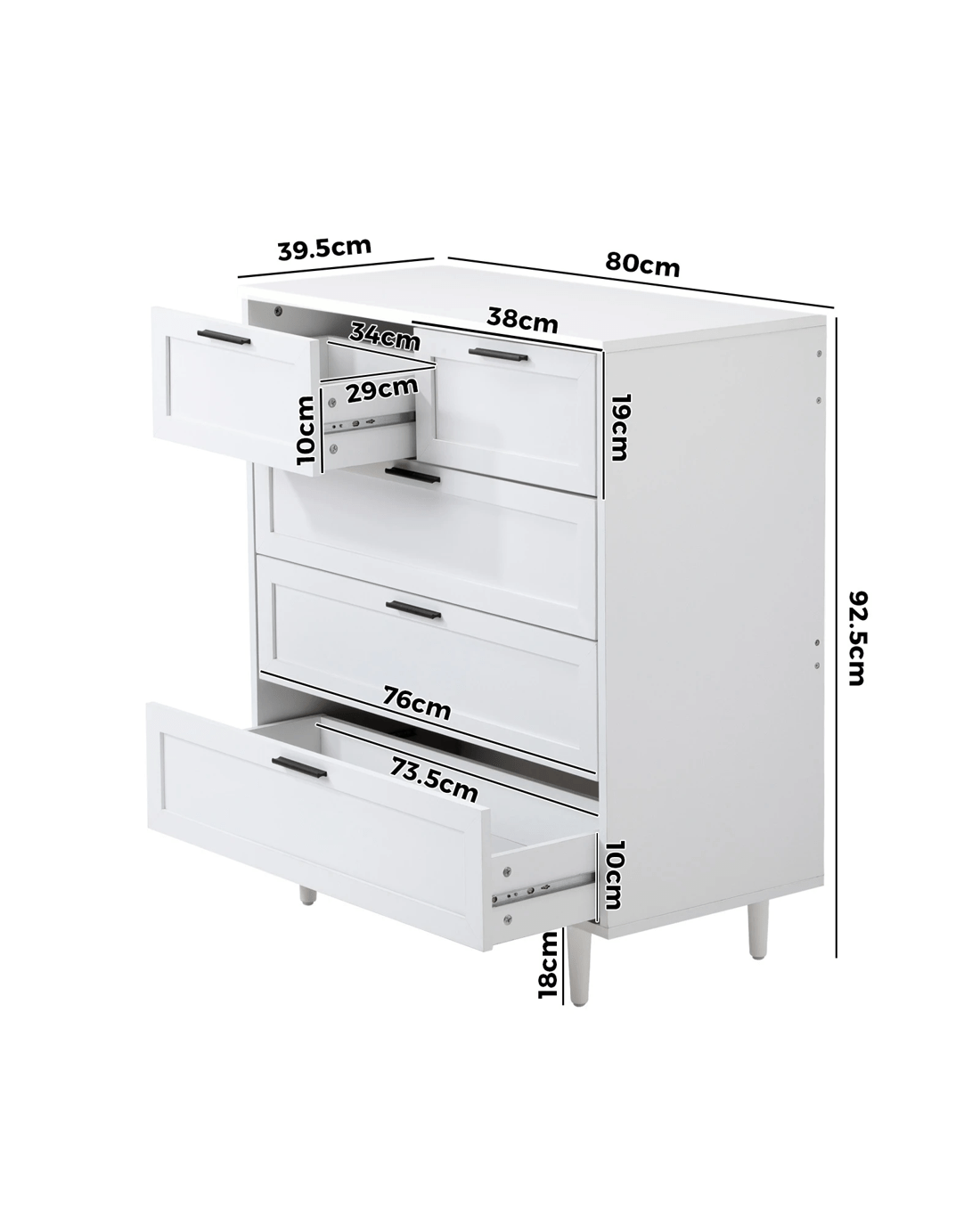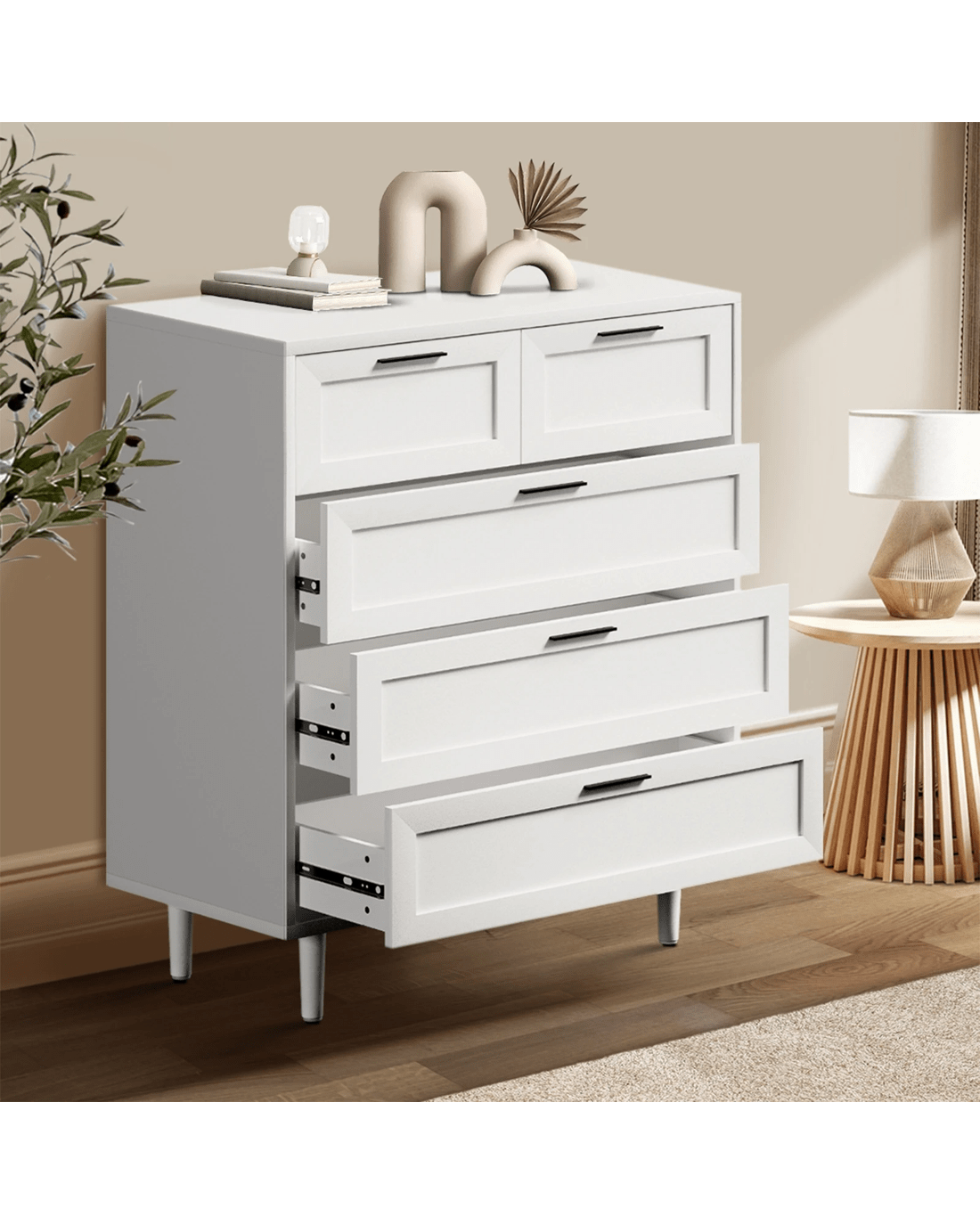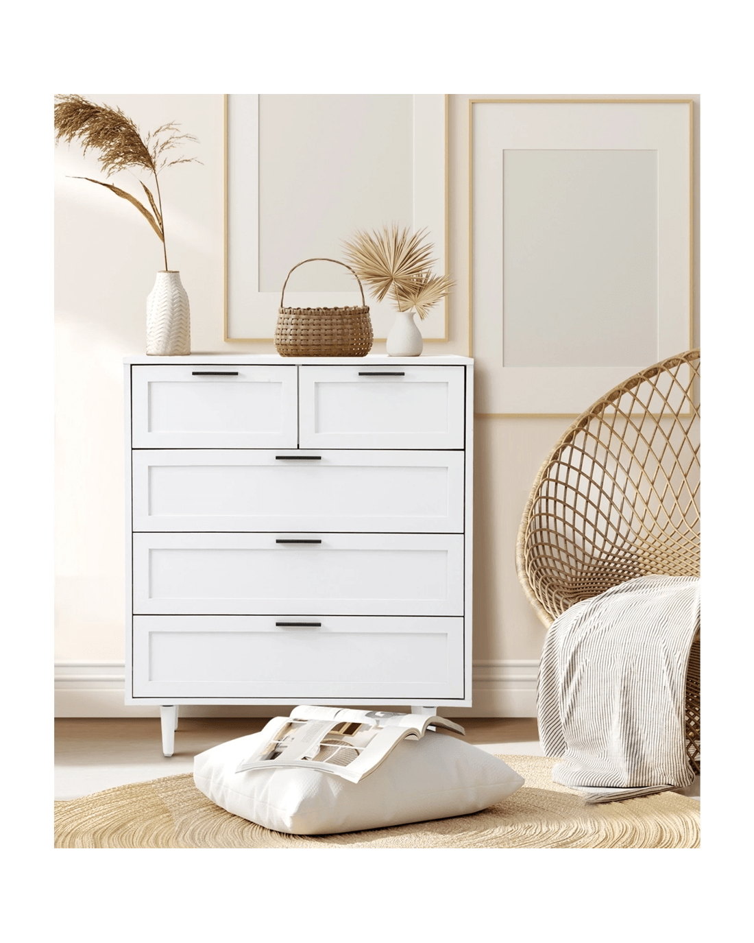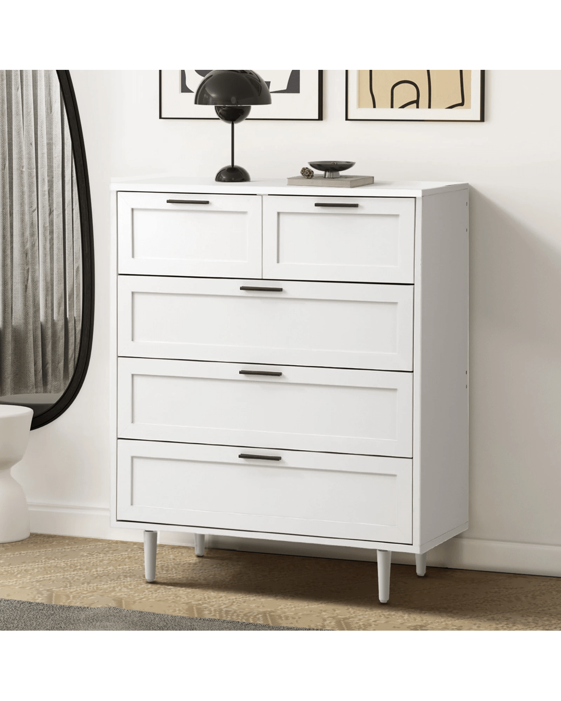 Sold by Kamprad's Oikos 1943Oikiture 5 Chest Of Drawers Dresser Chest Storage Cabinet Tallboy - White