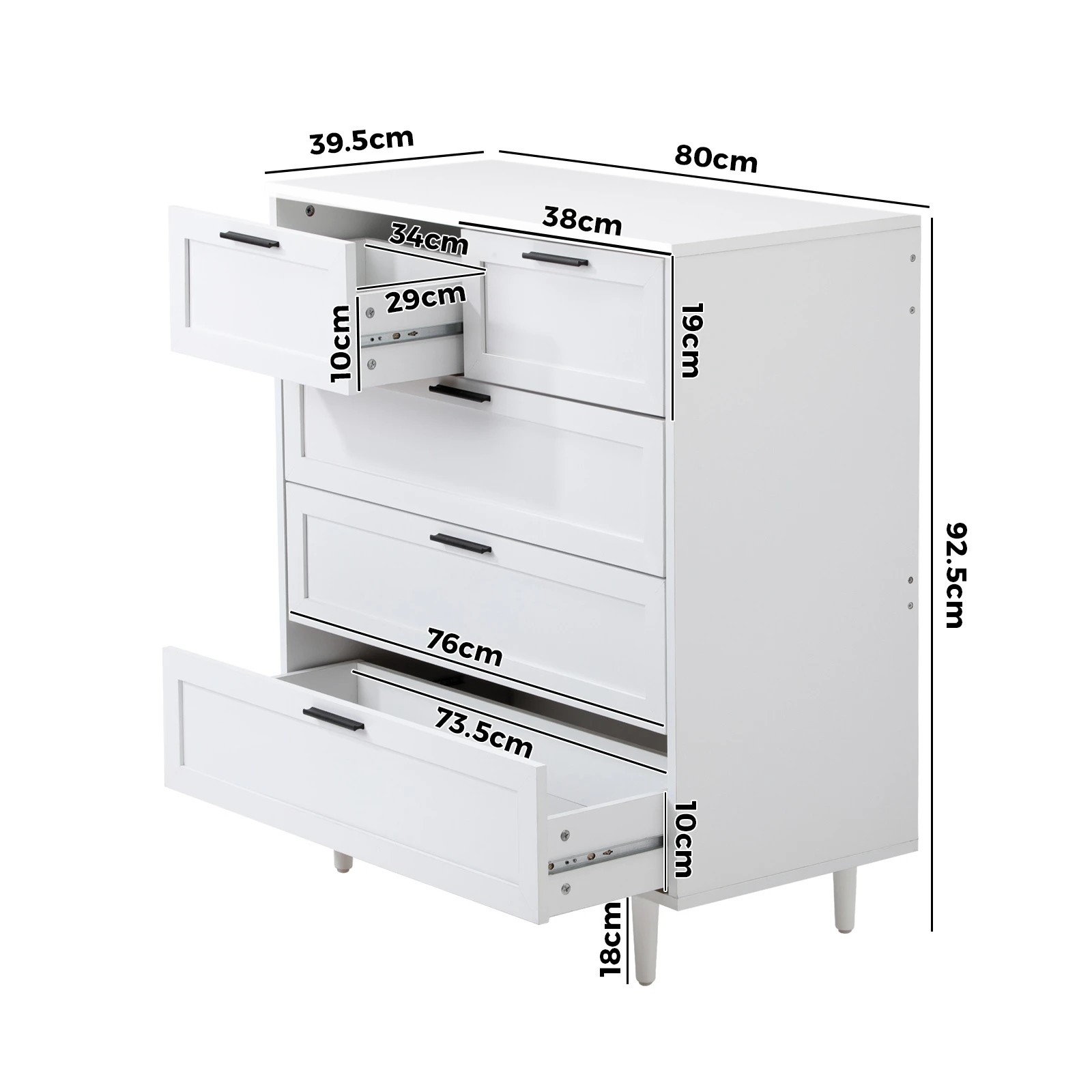 Oikiture 5 Chest Of Drawers Dresser Chest Storage Cabinet Tallboy - White