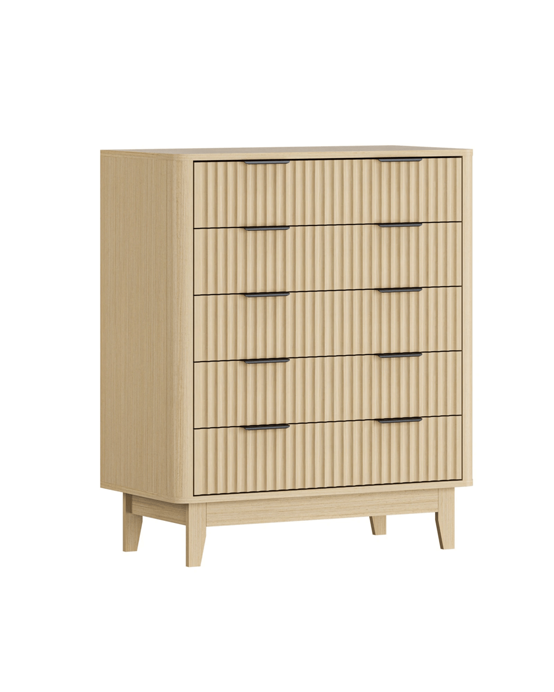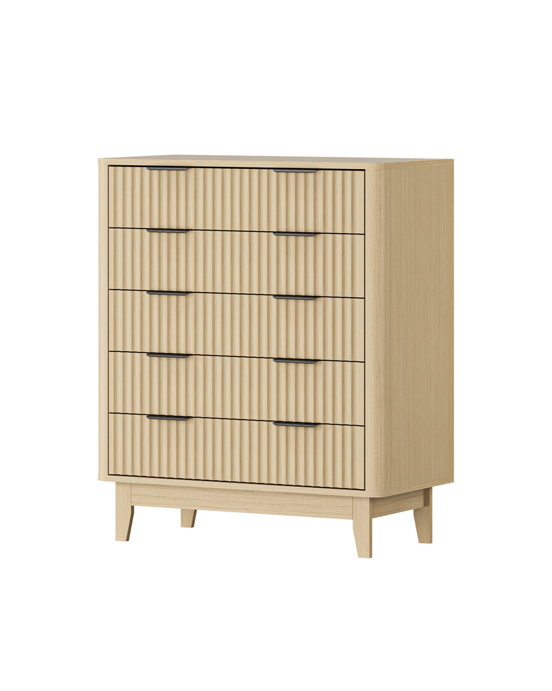 Time to refresh your existing chest of drawers with this eye-catching piece from Oikiture. With a practical and contemporary design, our chest of drawers features a neutral finish with stylish stripe textures on each drawer front to create interesting aesthetic embellishments. Thoughtful touches that render a unique presence.