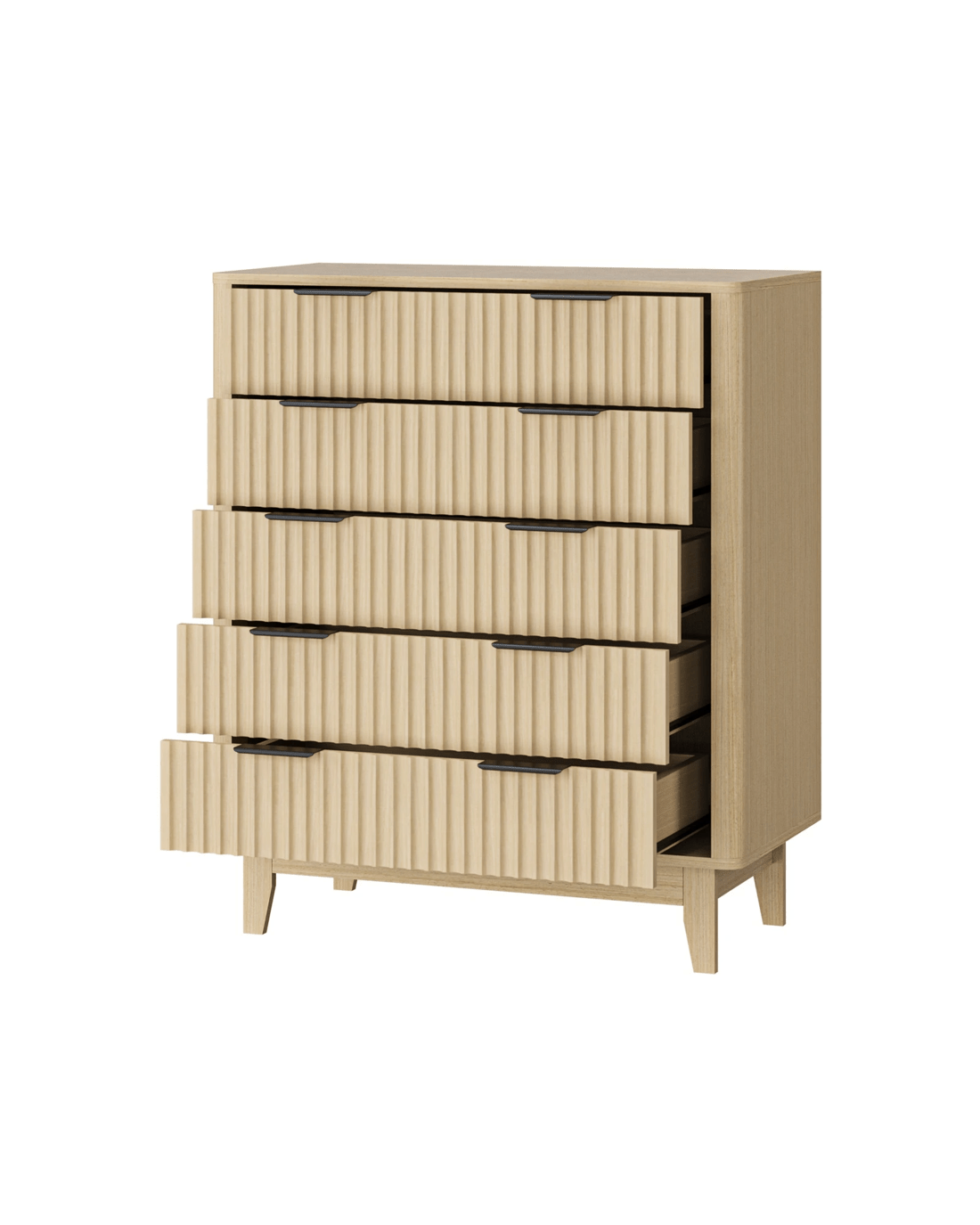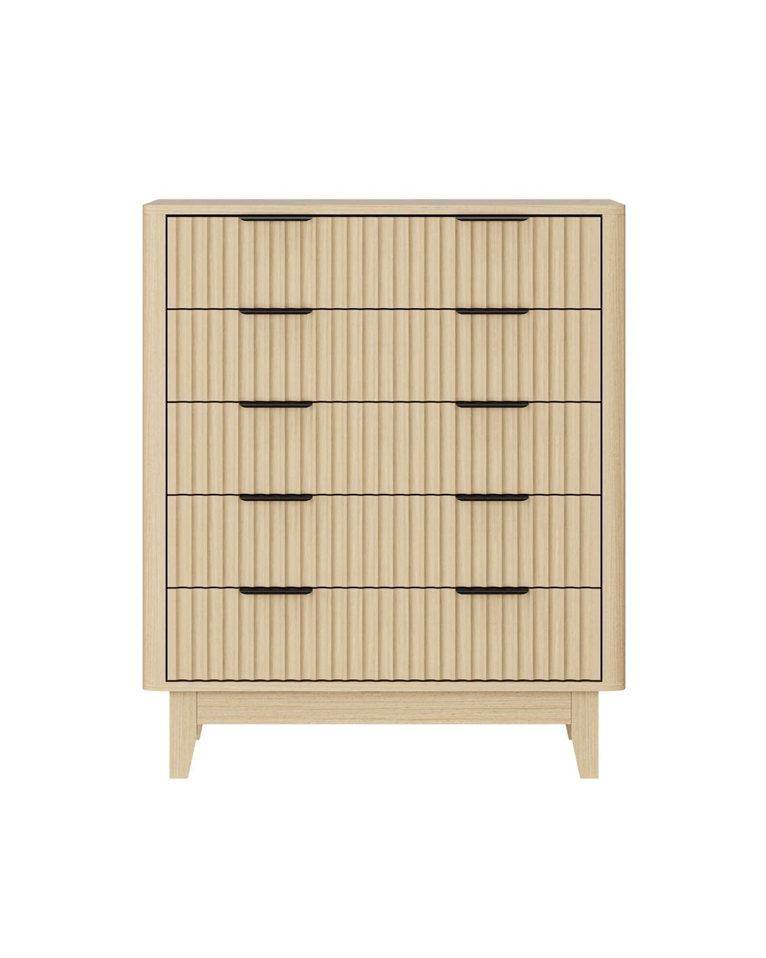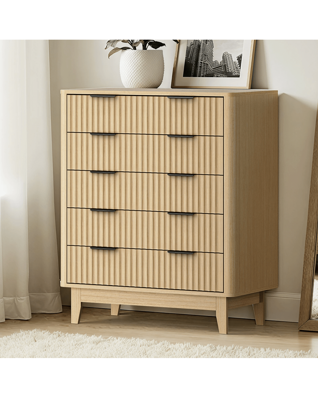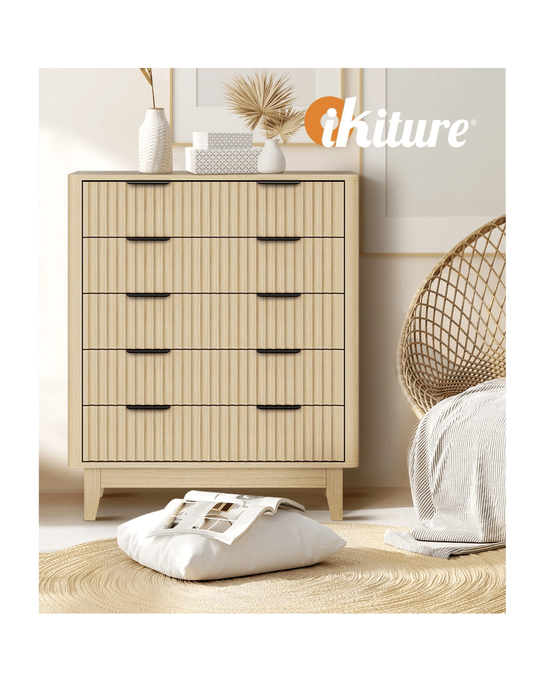 Oikiture 5 Chest Of Drawers Storage Cabinet Dressers Tallboy Stripe - Natural