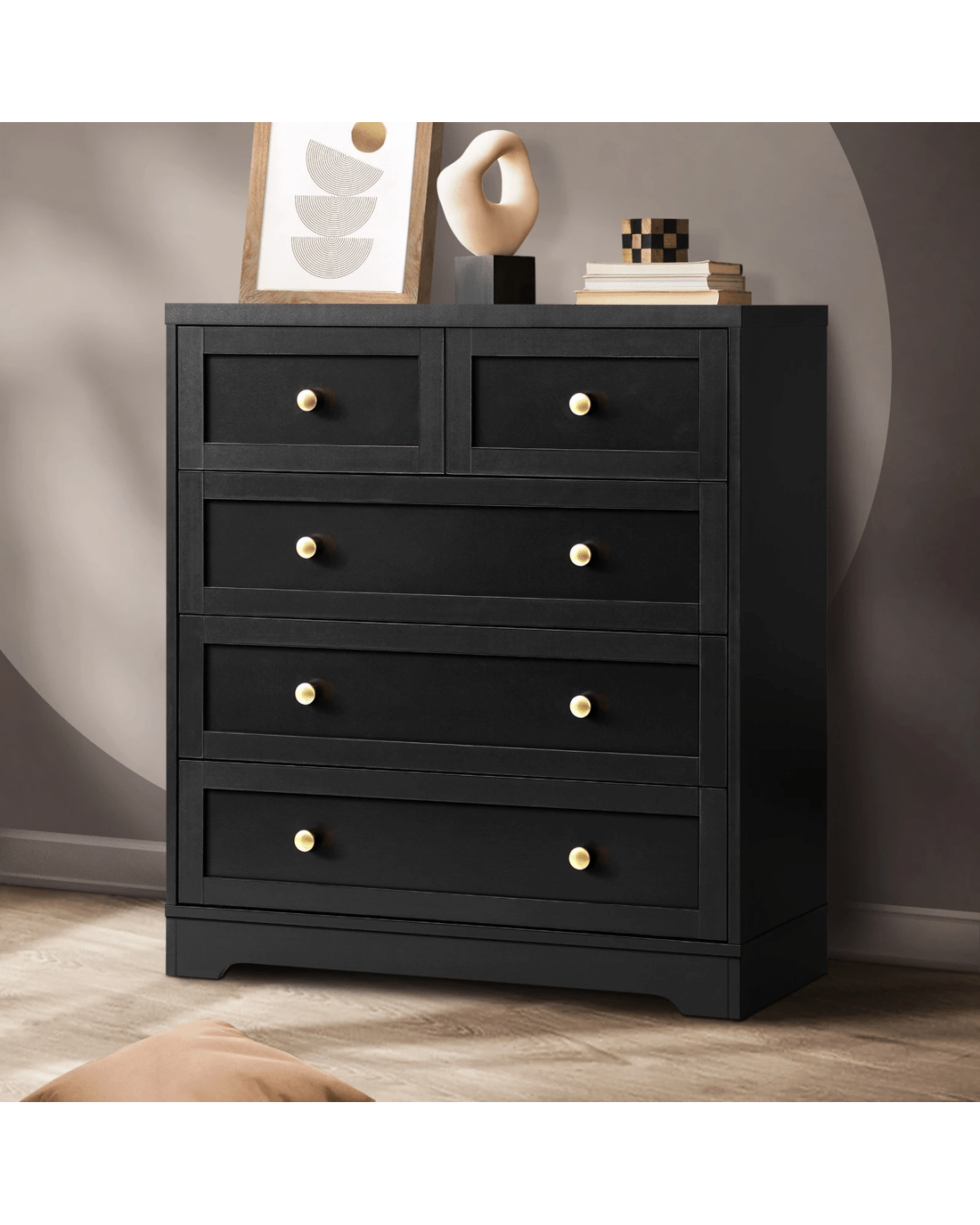 Oikiture 5 Chest Of Drawers Tallboy Dresser Table Storage Cabinet - Black