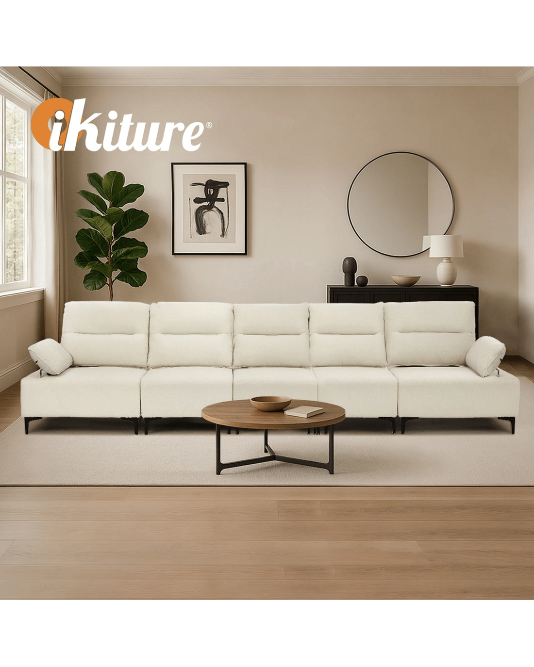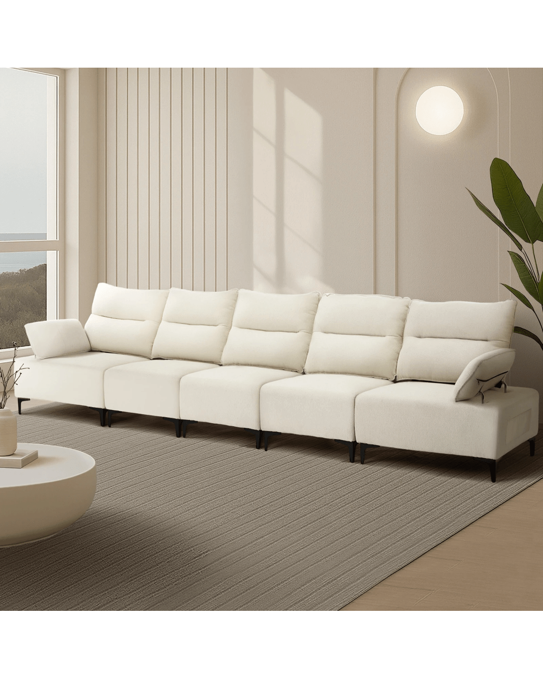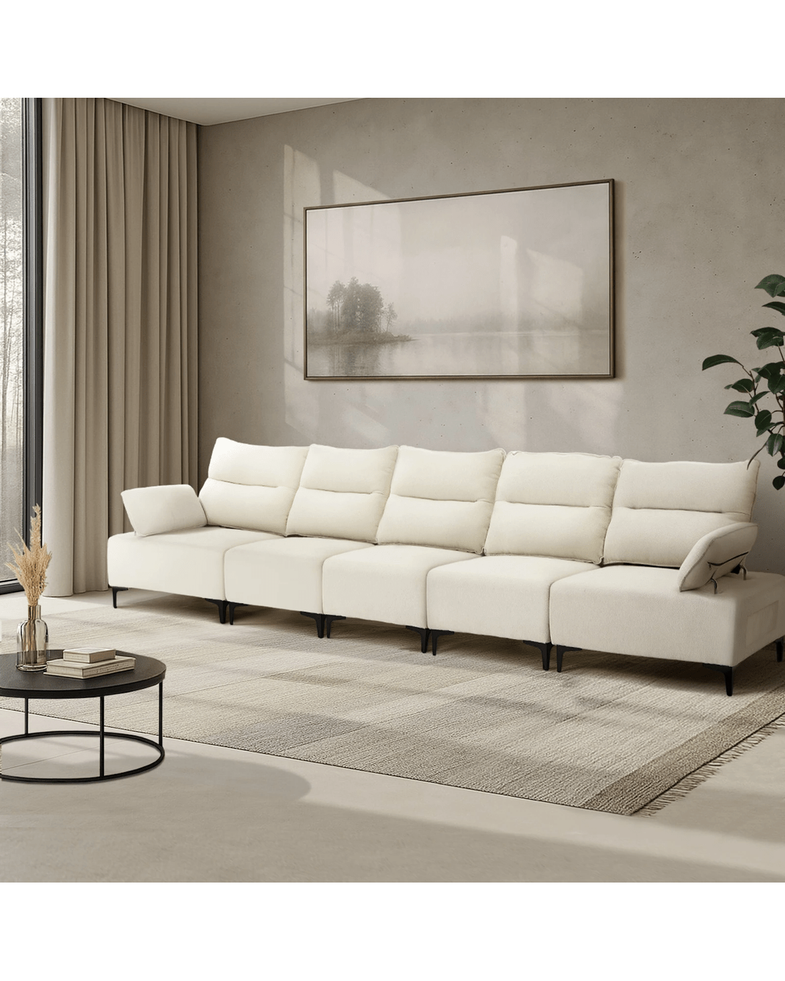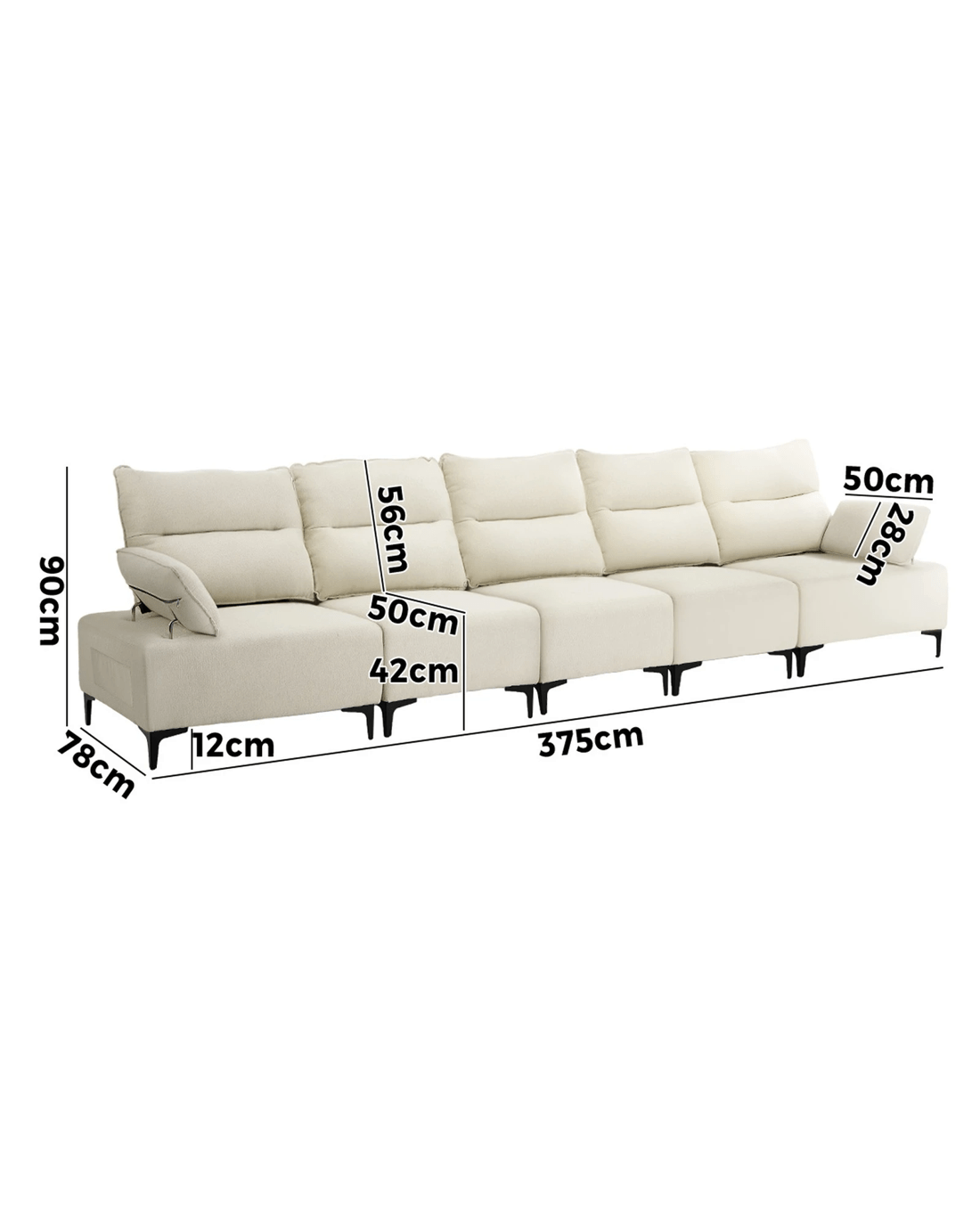 Sold by Kamprad's Oikos 1943Oikiture 5 Seater Couch Sofa Chenille Adjustable Armrest - Beige