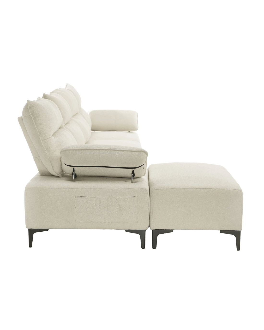 Adjustable armrests and sewn-in side pockets in each armrest enable your reading materials and even entertainment paraphernalia to be close at hand. Plus, the movable Ottoman (model set specific) also allows you to change its position to the left or right at a moment鈥檚 pleasure.