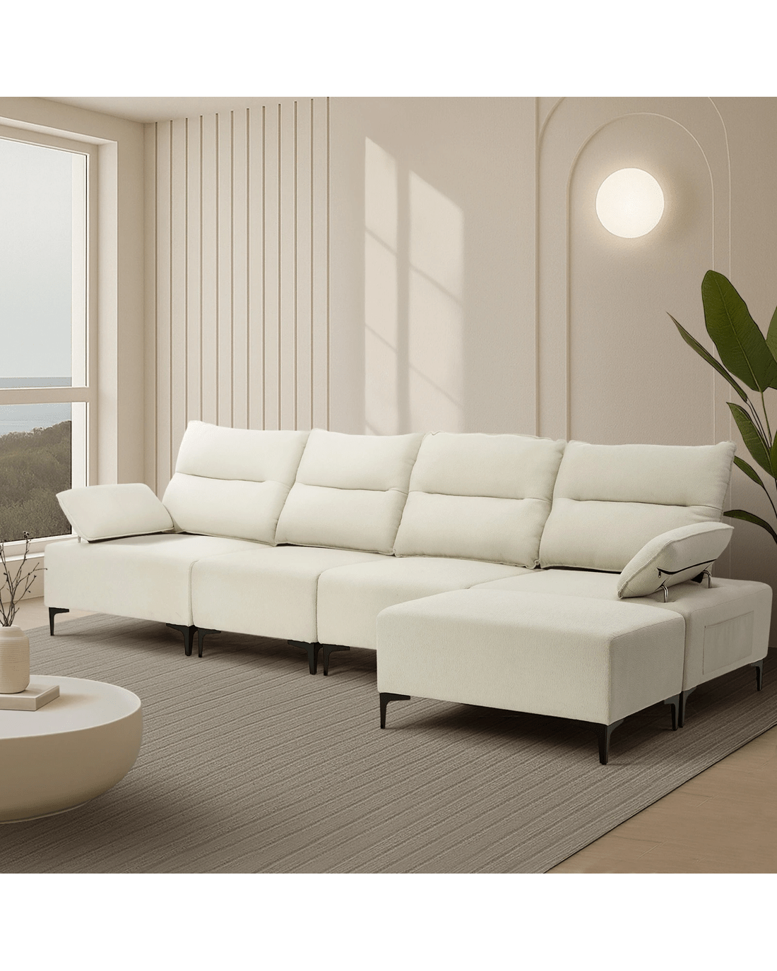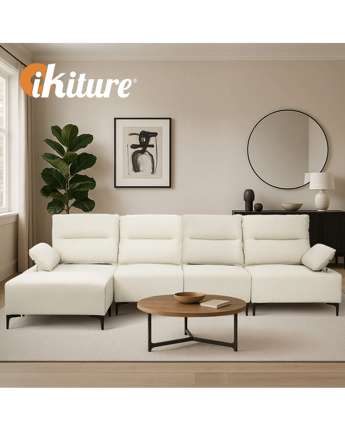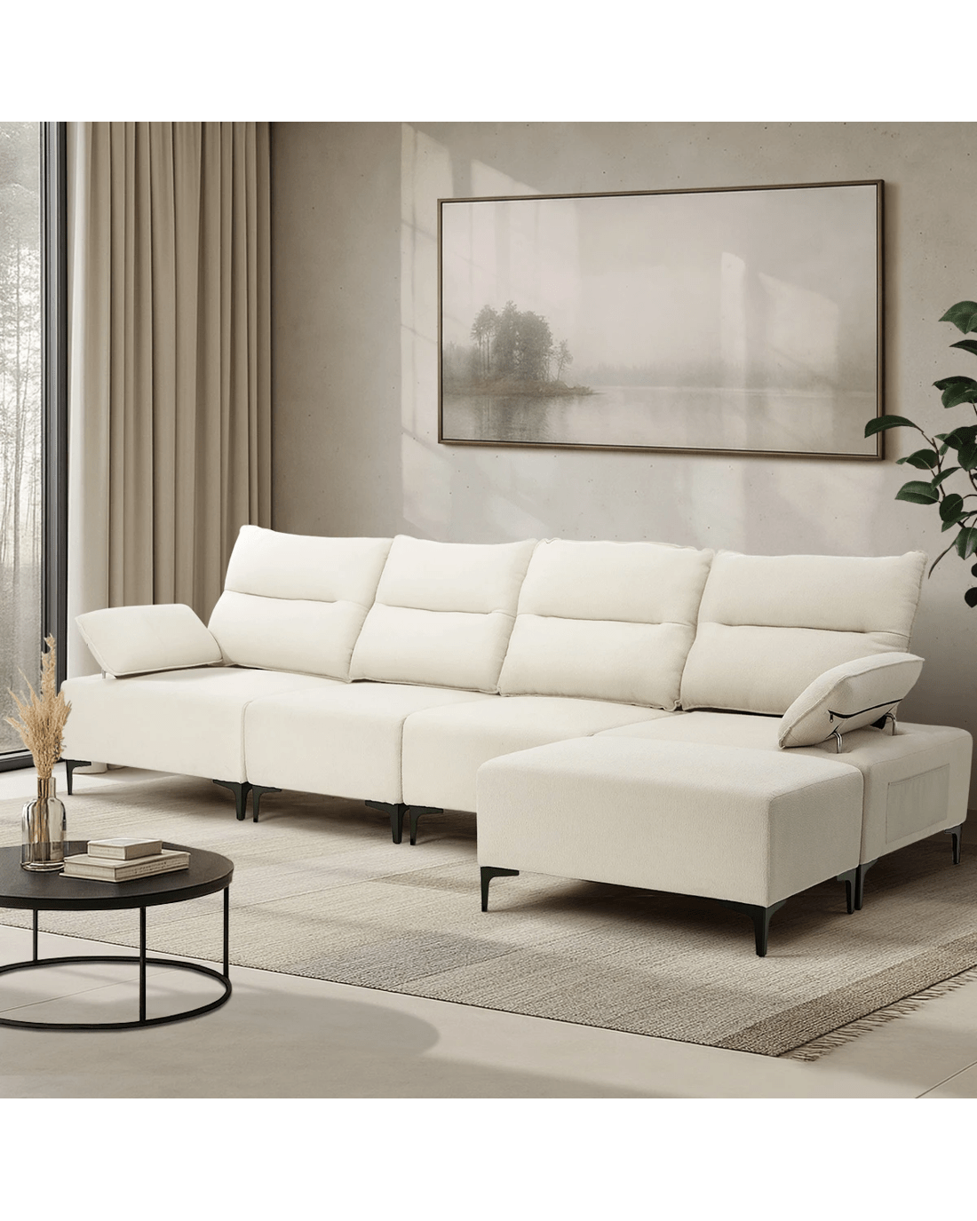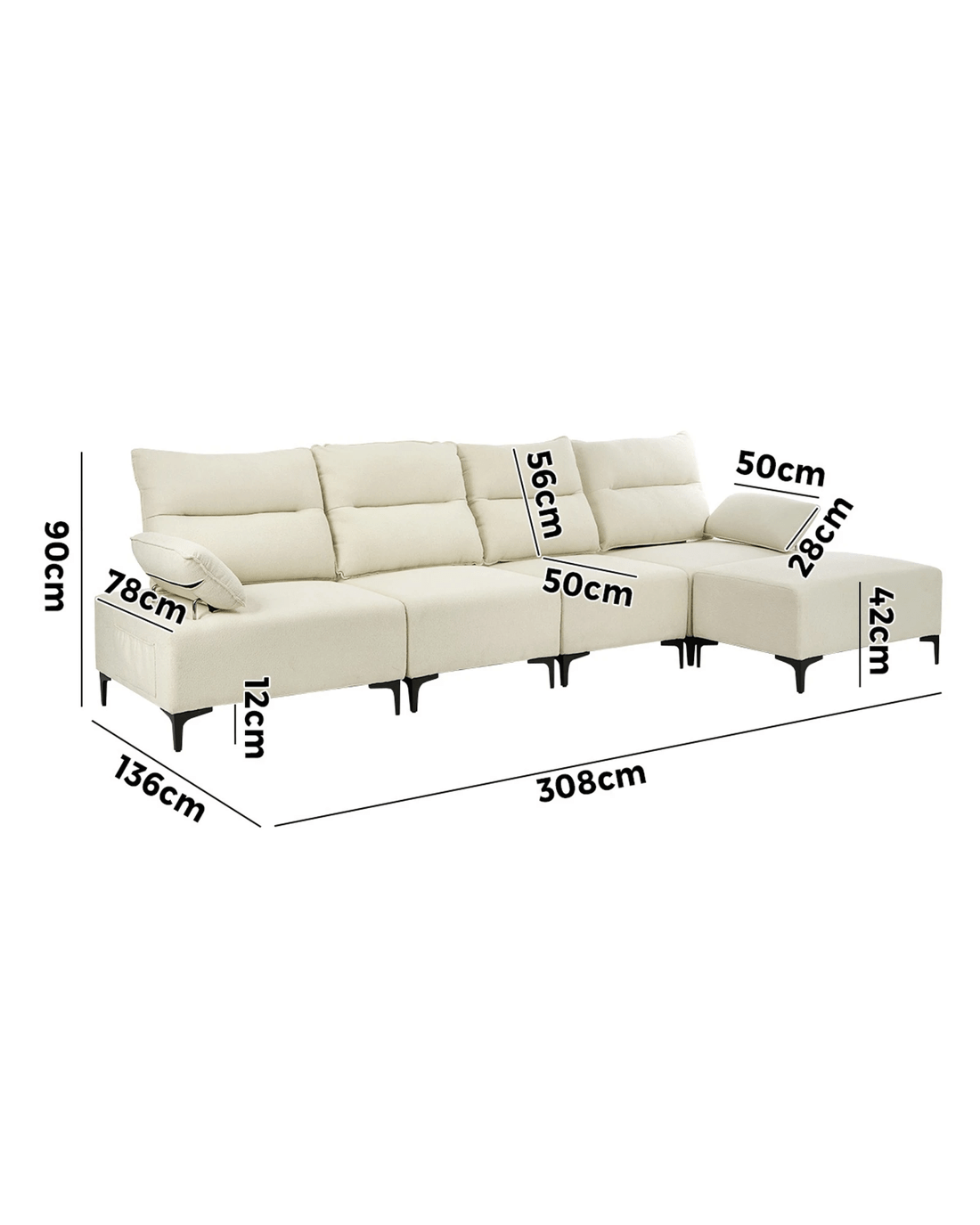 Sold by Kamprad's Oikos 1943Oikiture 5 Seater Modular Sofa Chenille Couch Ottoman Set - Beige