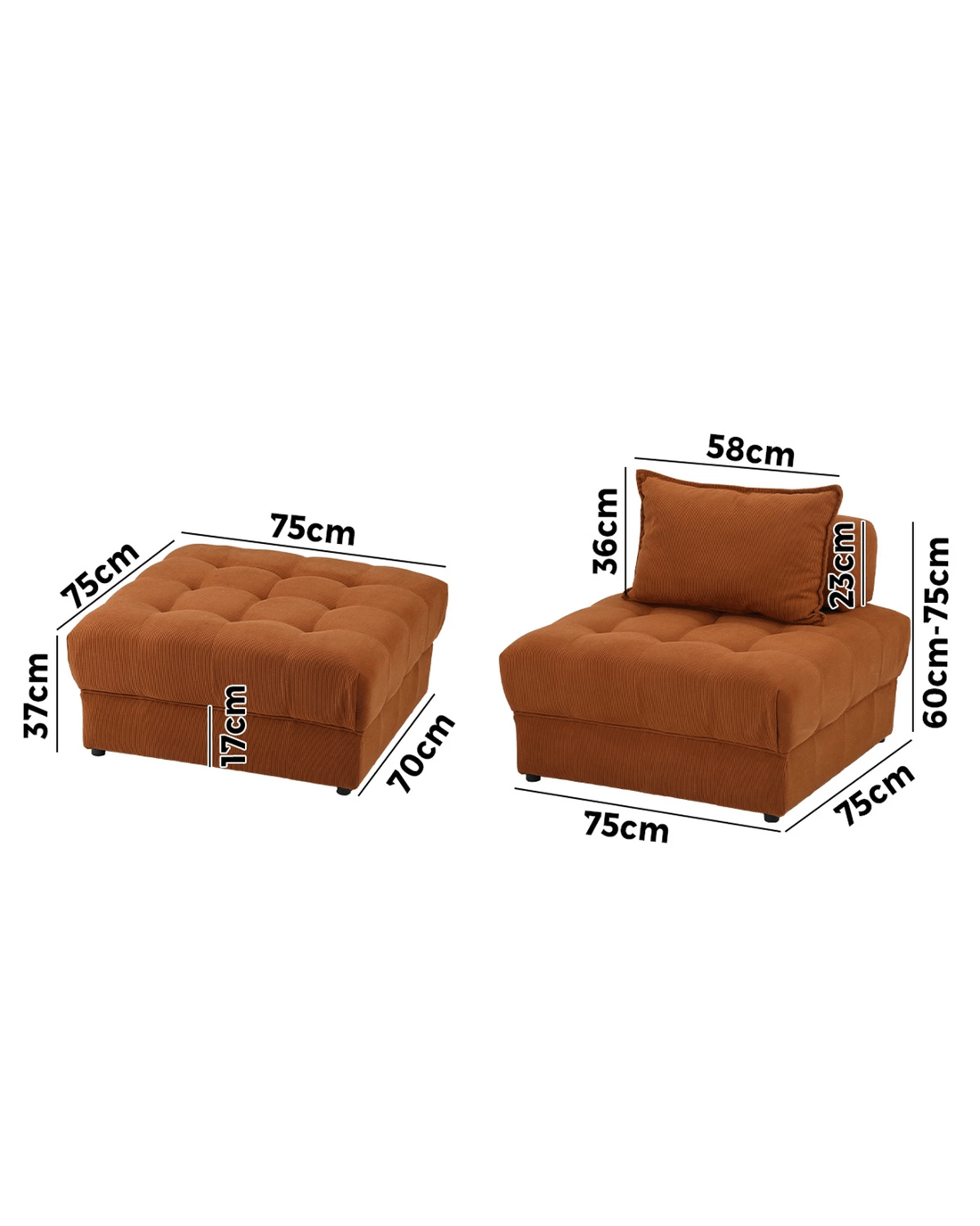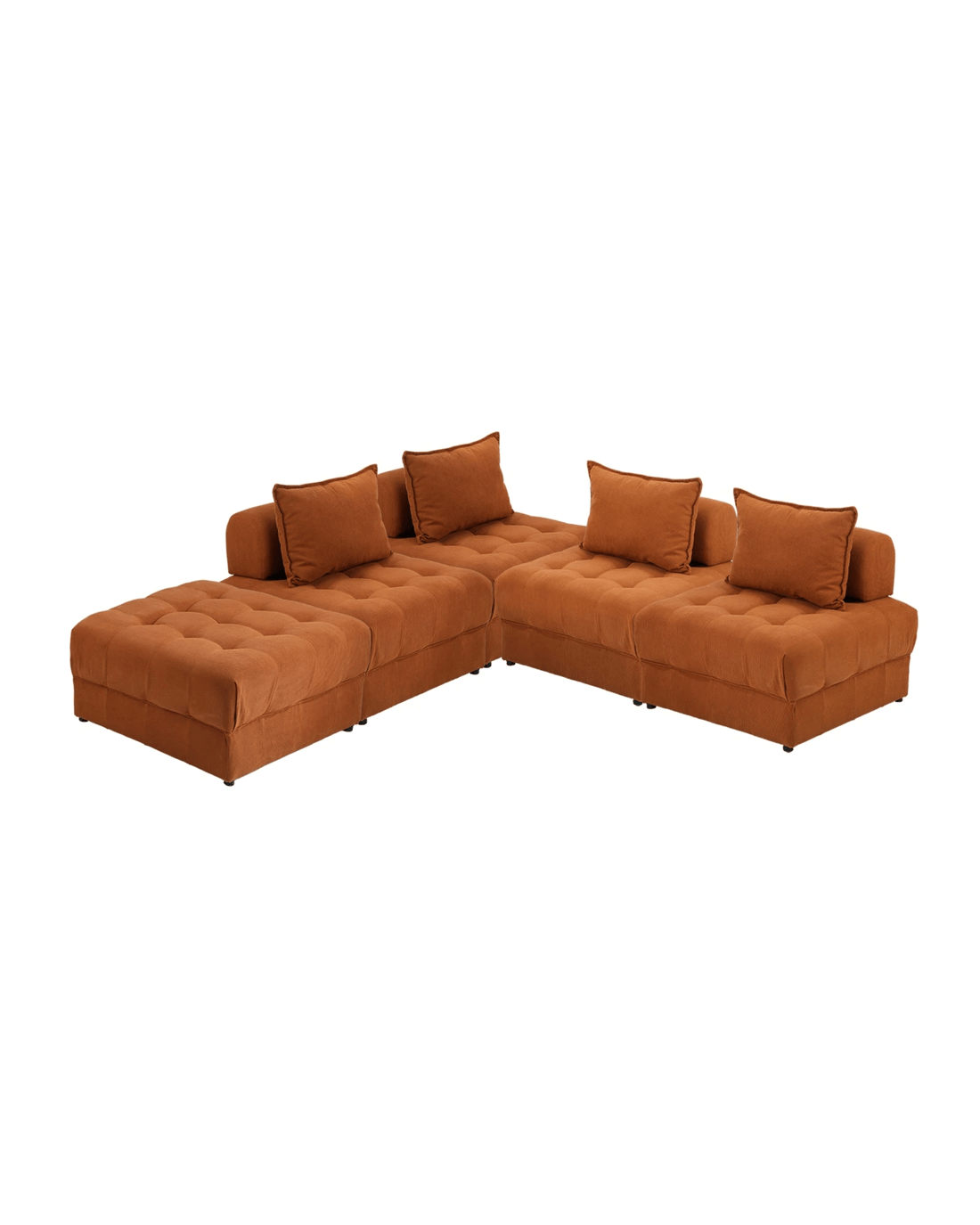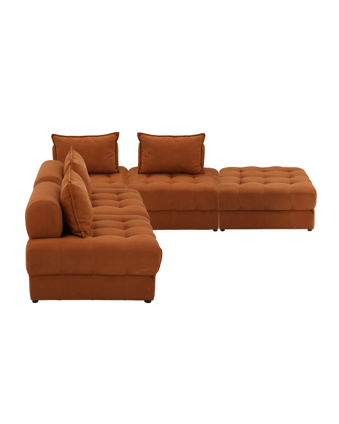 Oikiture 5 Seater Velvet Modular Sofa & Ottoman Set Armless Tofu Back - Brown