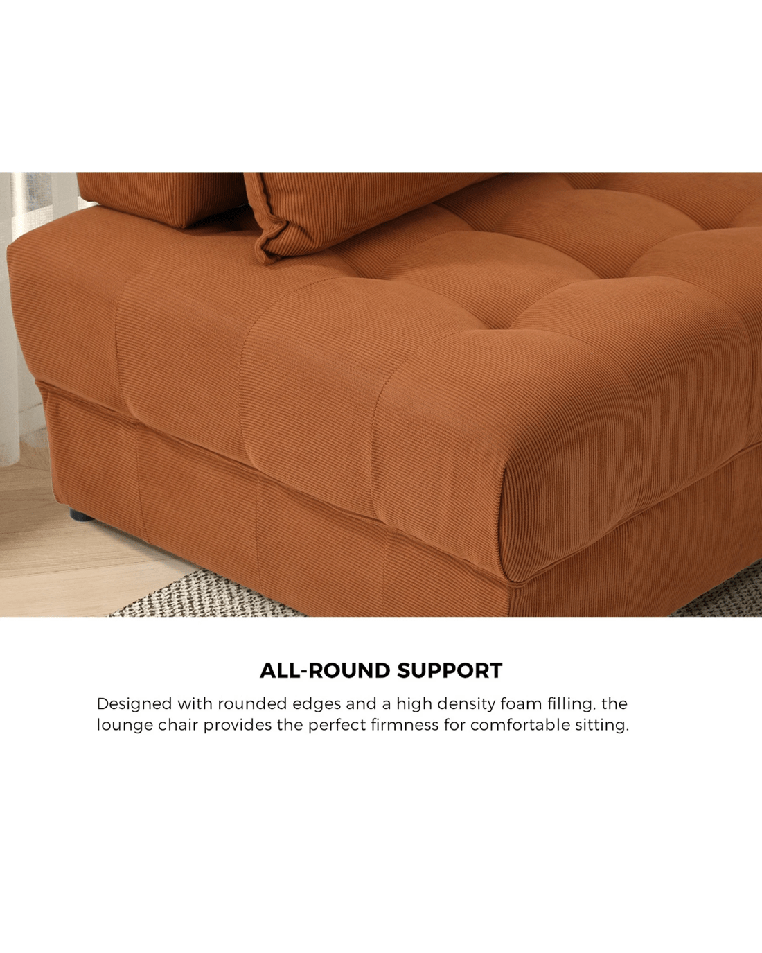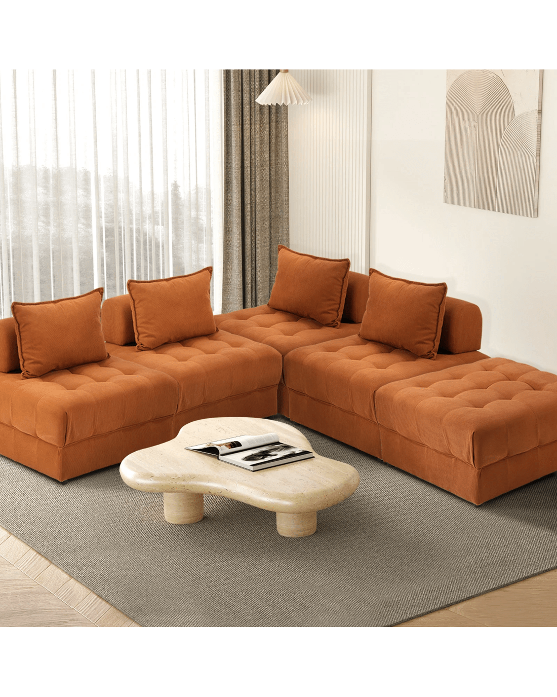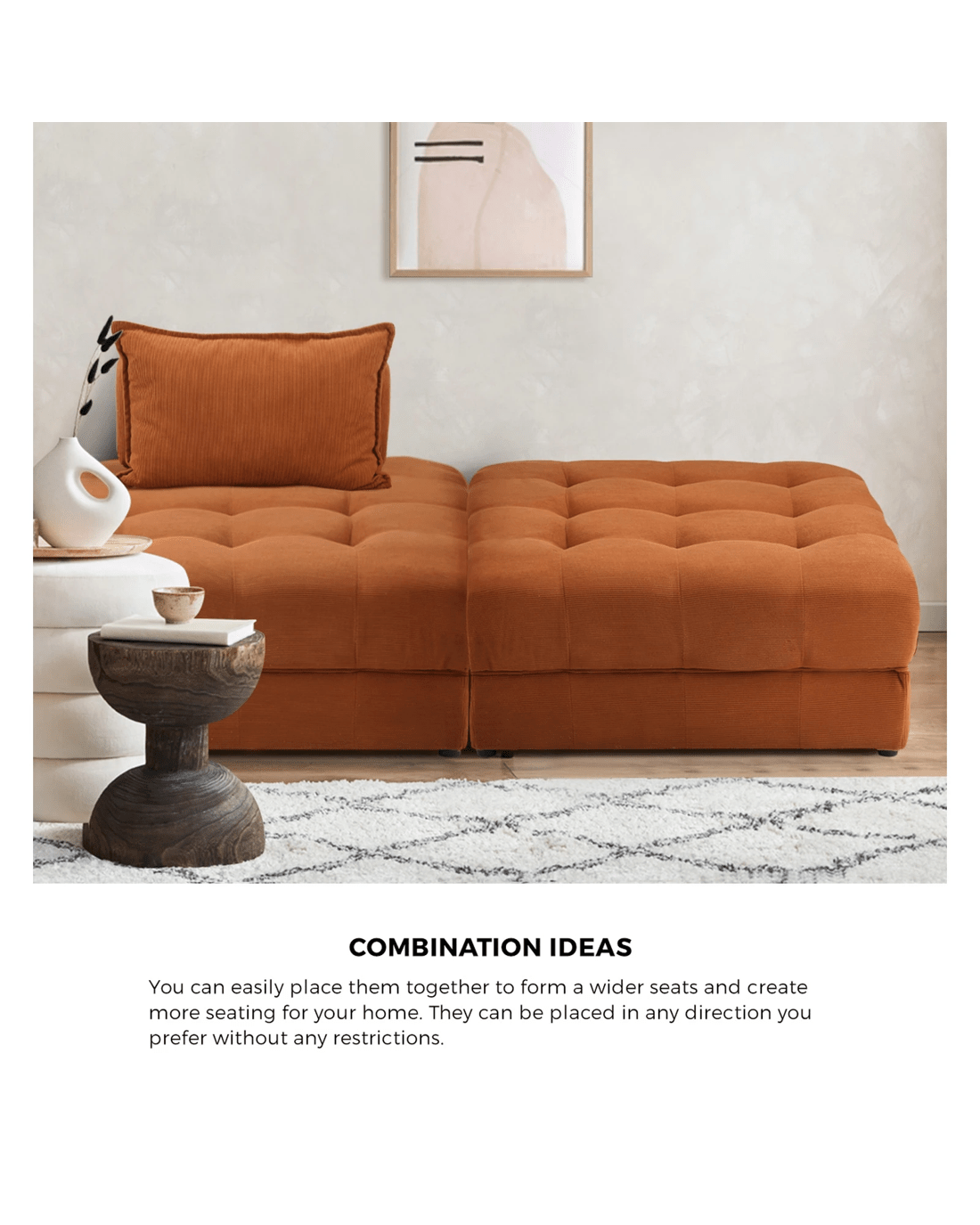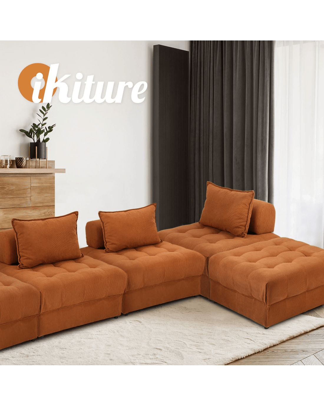 Oikiture 5 Seater Velvet Modular Sofa & Ottoman Set Armless Tofu Back - Brown