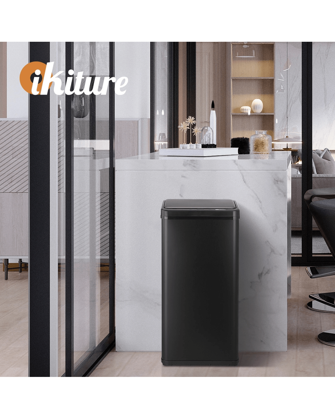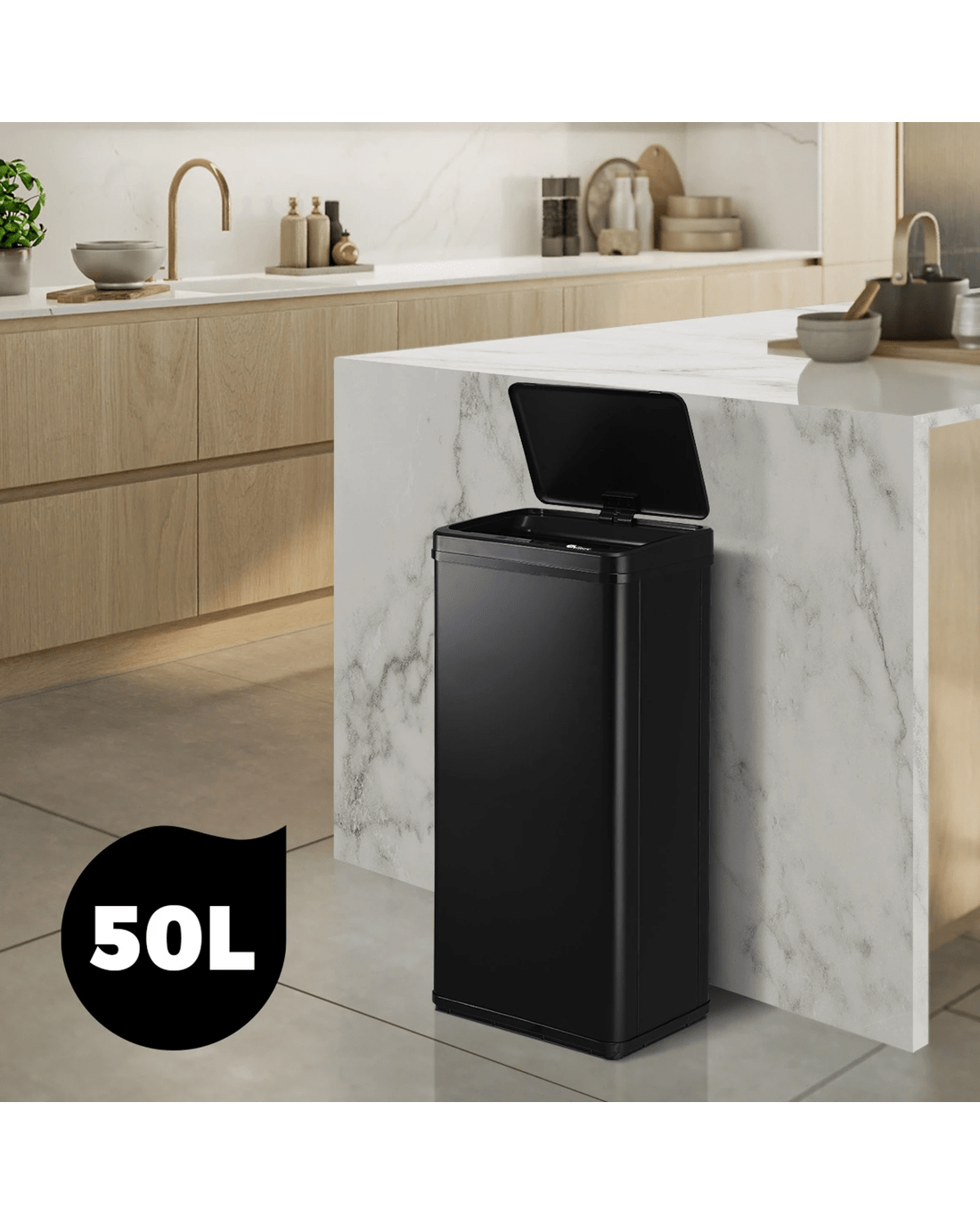 Sold by Kamprad's Oikos 1943Oikiture 50L Motion Sensor Bin Automatic Rubbish Trash Can - Black