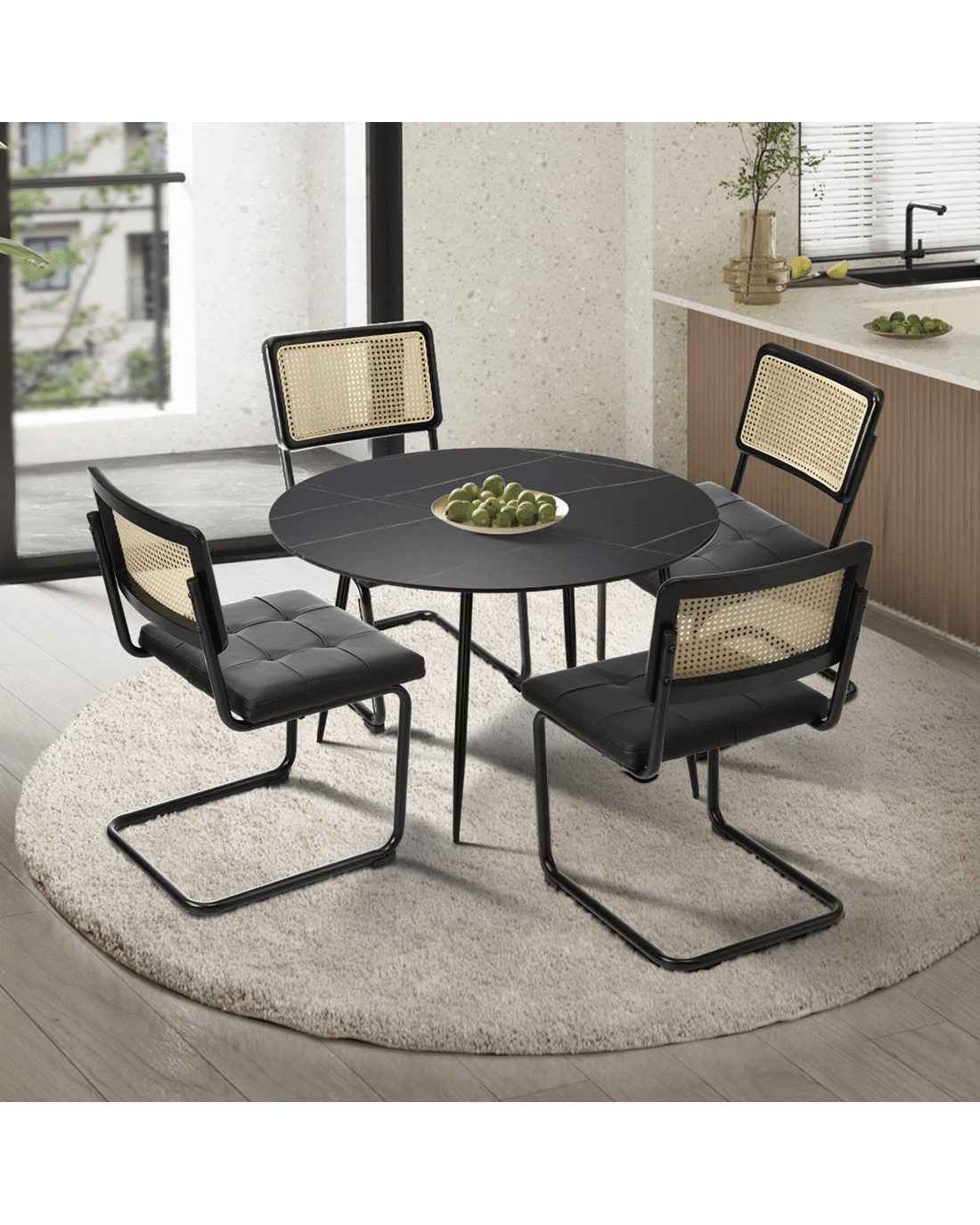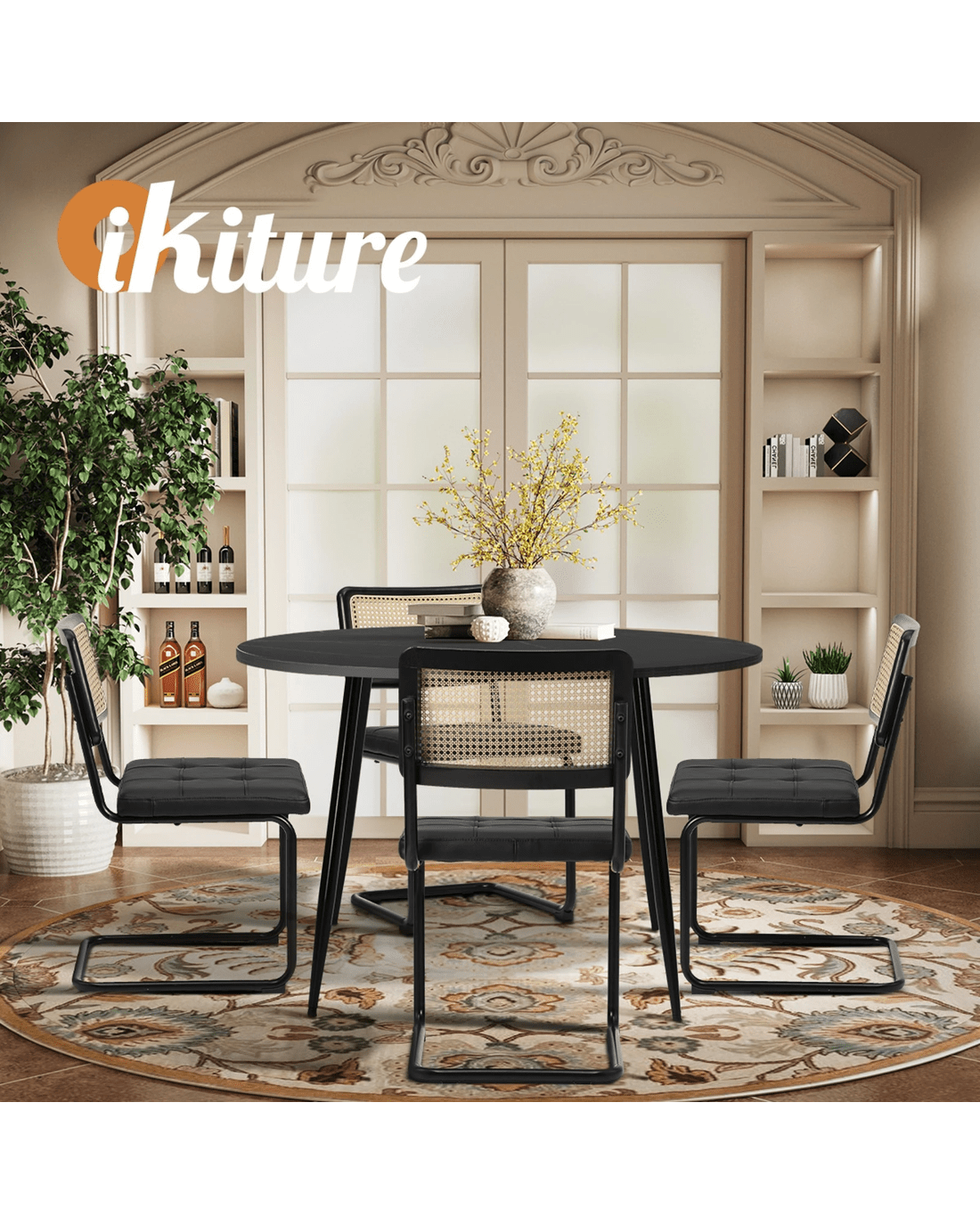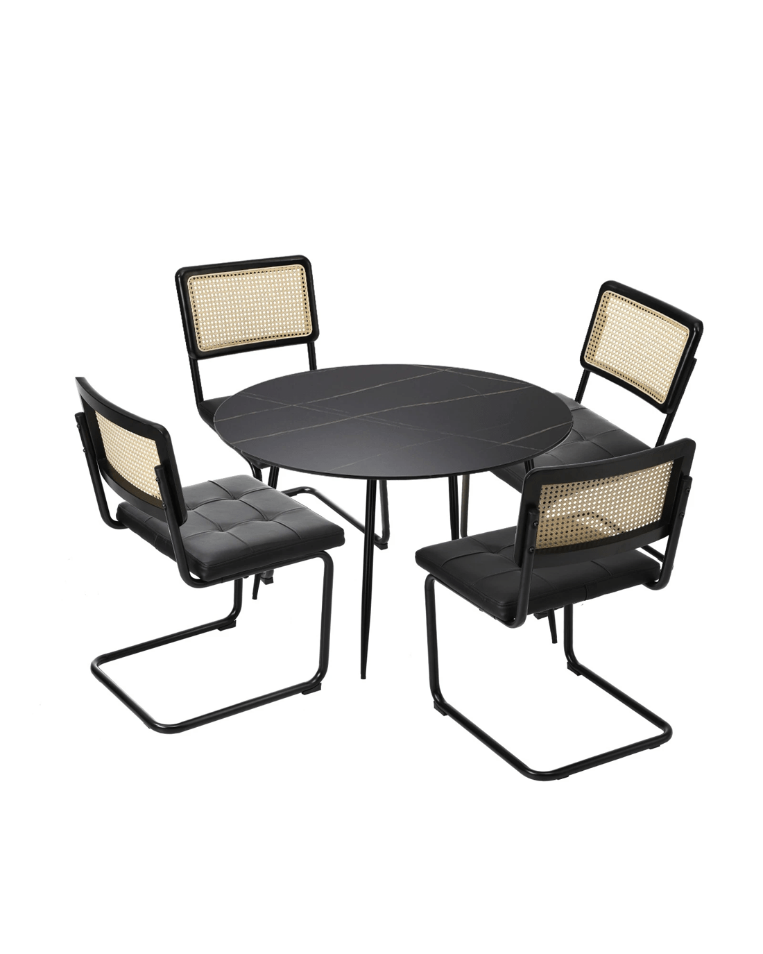 Sold by Kamprad's Oikos 1943Oikiture 5PCS Dining Table Set 1.1m Round Dining Table and Chairs PU Leather Padded Seat - Black