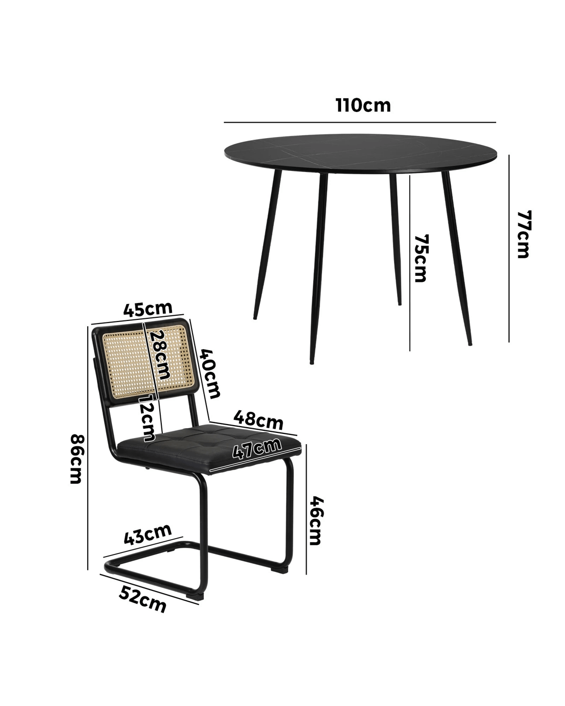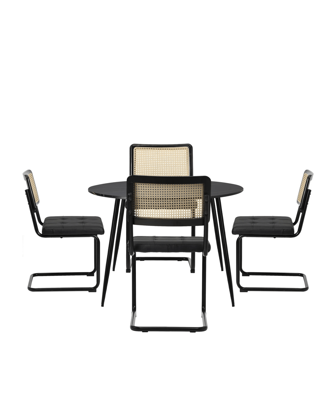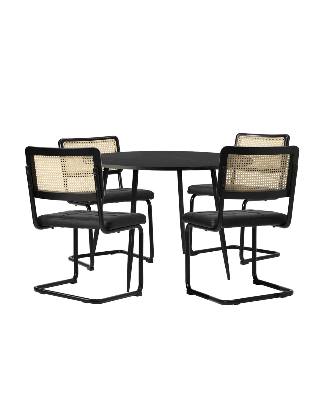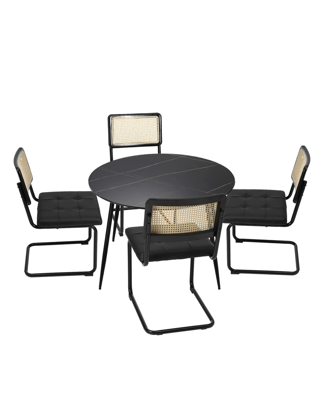 Sold by Kamprad's Oikos 1943Oikiture 5PCS Dining Table Set 1.1m Round Dining Table and Chairs PU Leather Padded Seat - Black