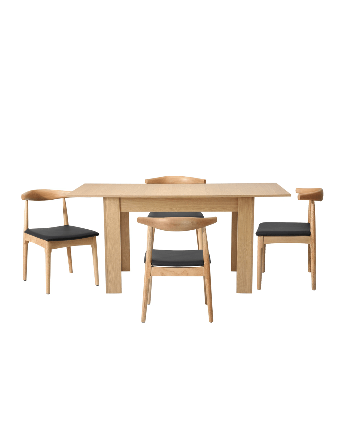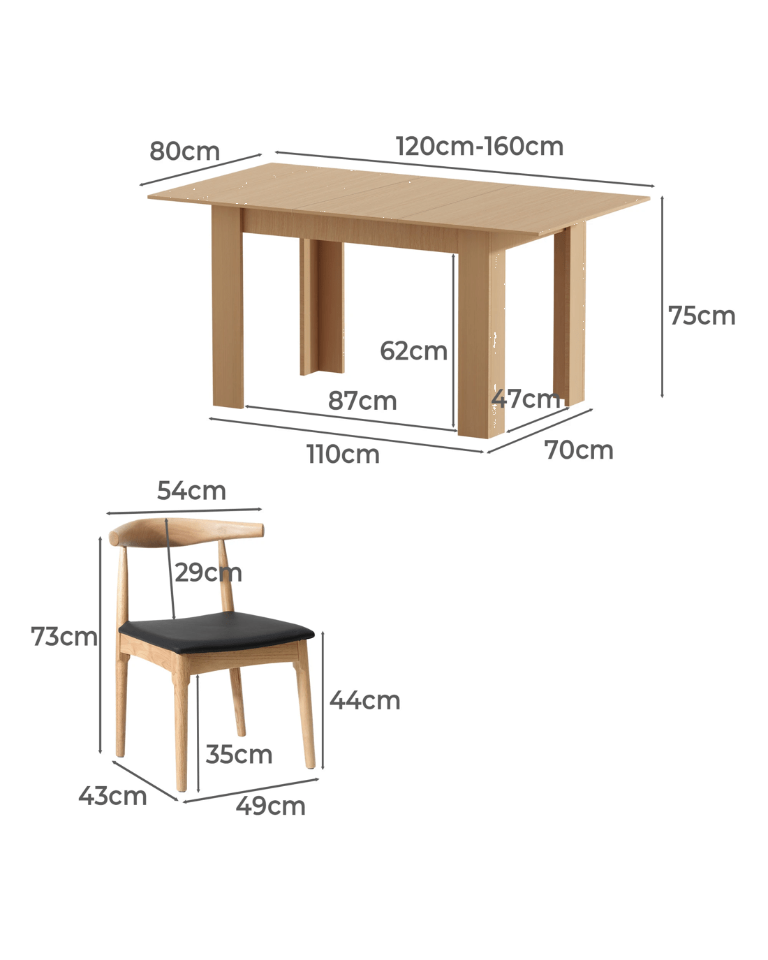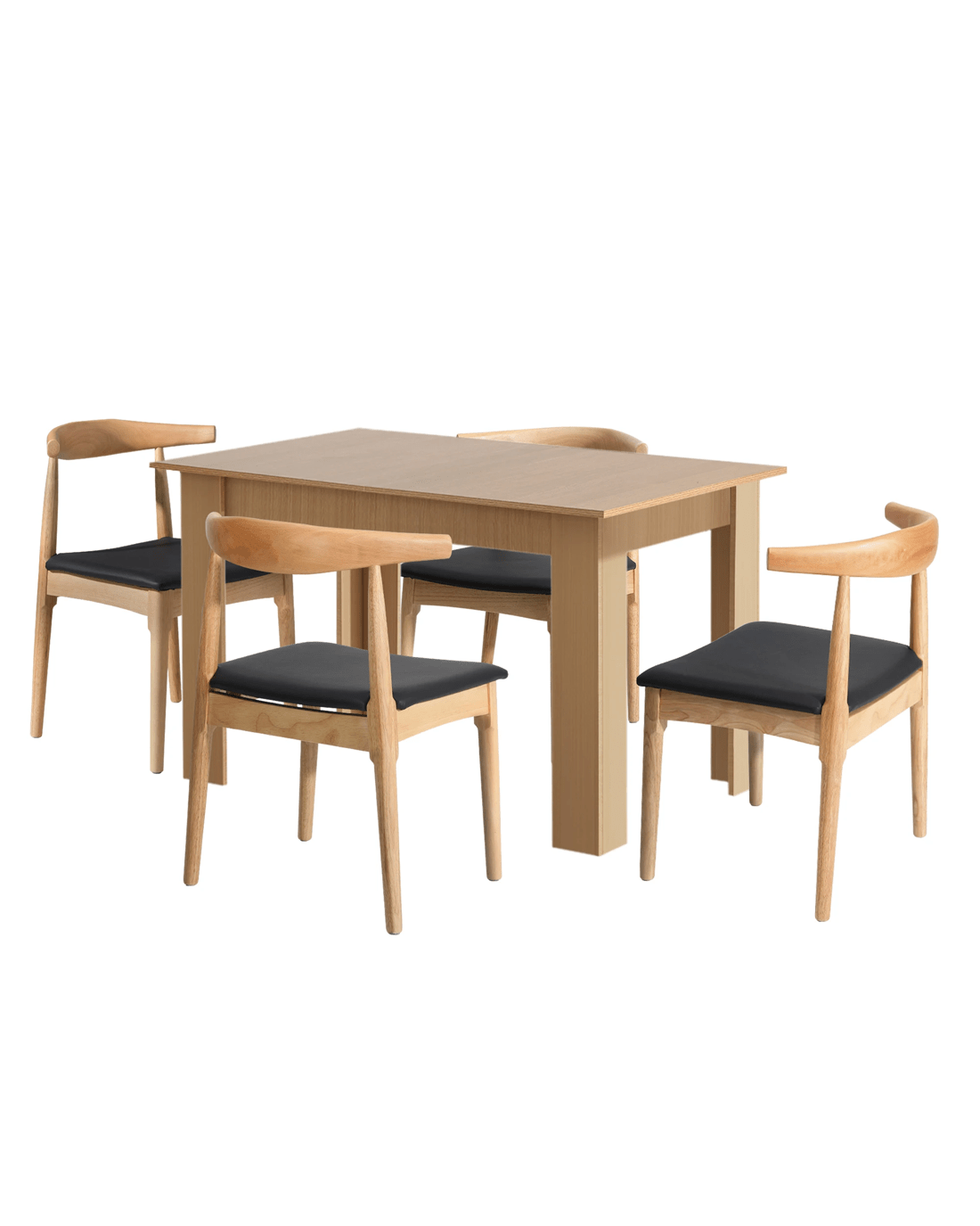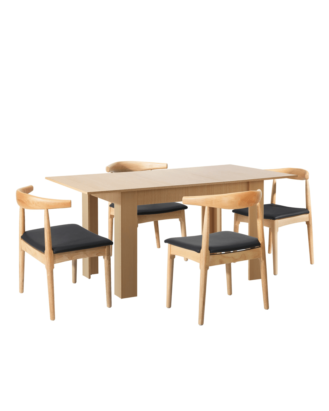Built to last, our dining chairs and extendable table boast exceptional craftsmanship and long-lasting materials. The chairs offer a comfortable and supportive seat, while the table showcases a sturdy foundation for gatherings that stand the test of time. The innovative extendable function allows you to effortlessly adapt the table to your needs, accommodating both intimate dinners and larger gatherings with ease.