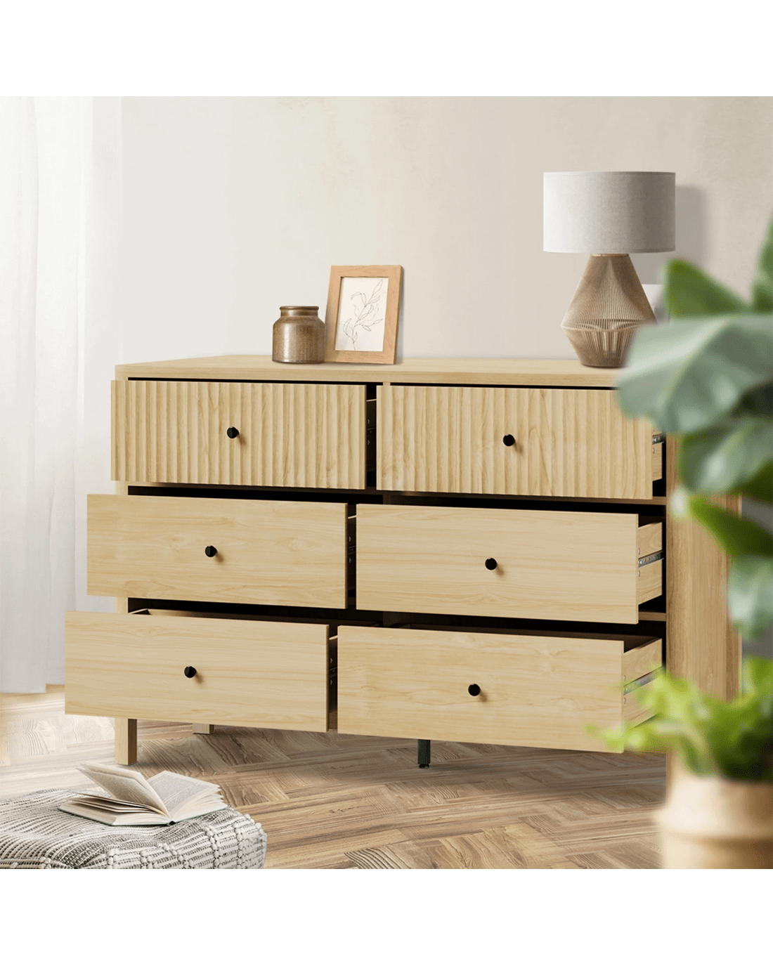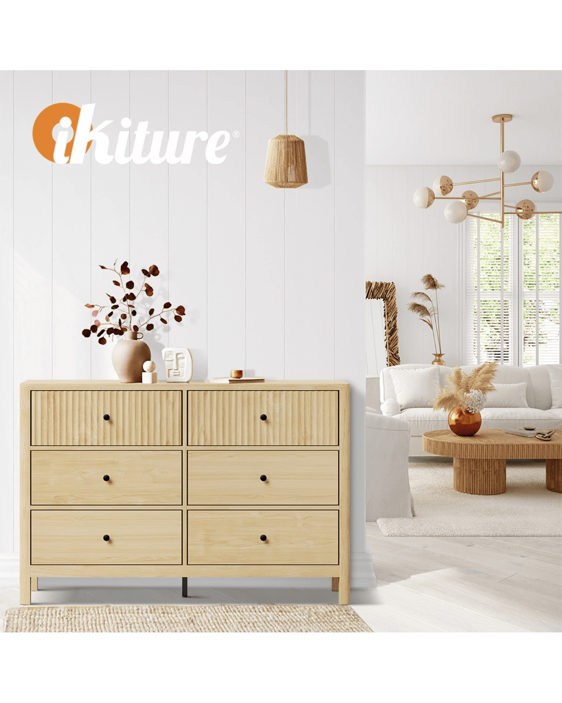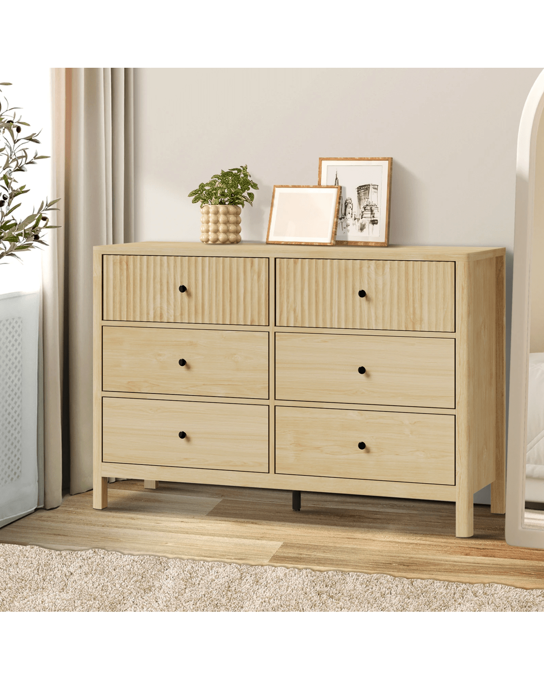 Oikiture 6 Chest Of Drawers Dresser Lowboy Storage Cabinet - Natural