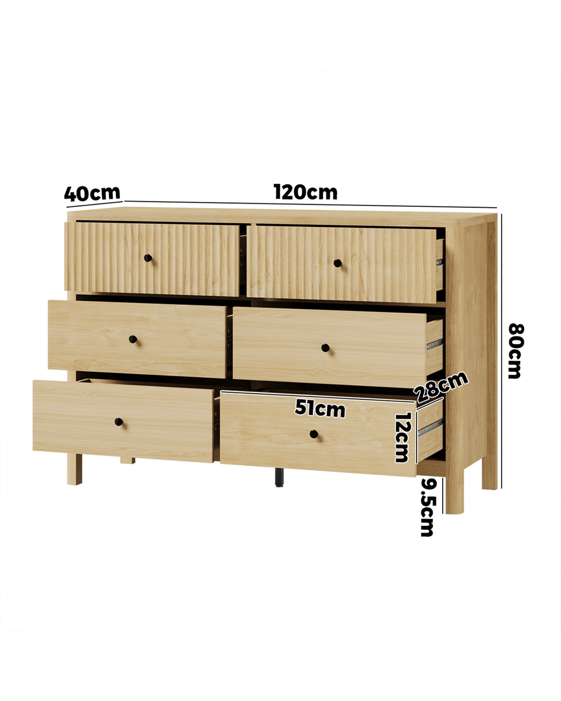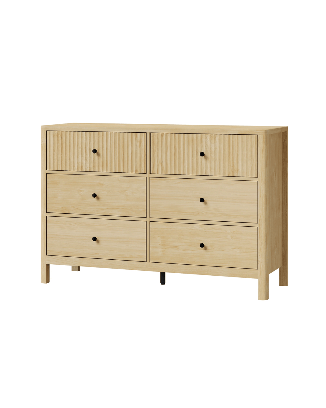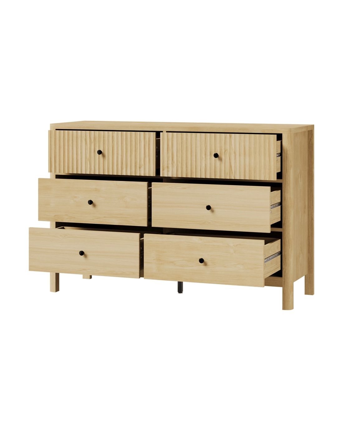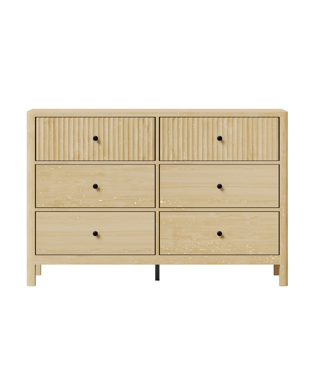 Oikiture 6 Chest Of Drawers Dresser Lowboy Storage Cabinet - Natural