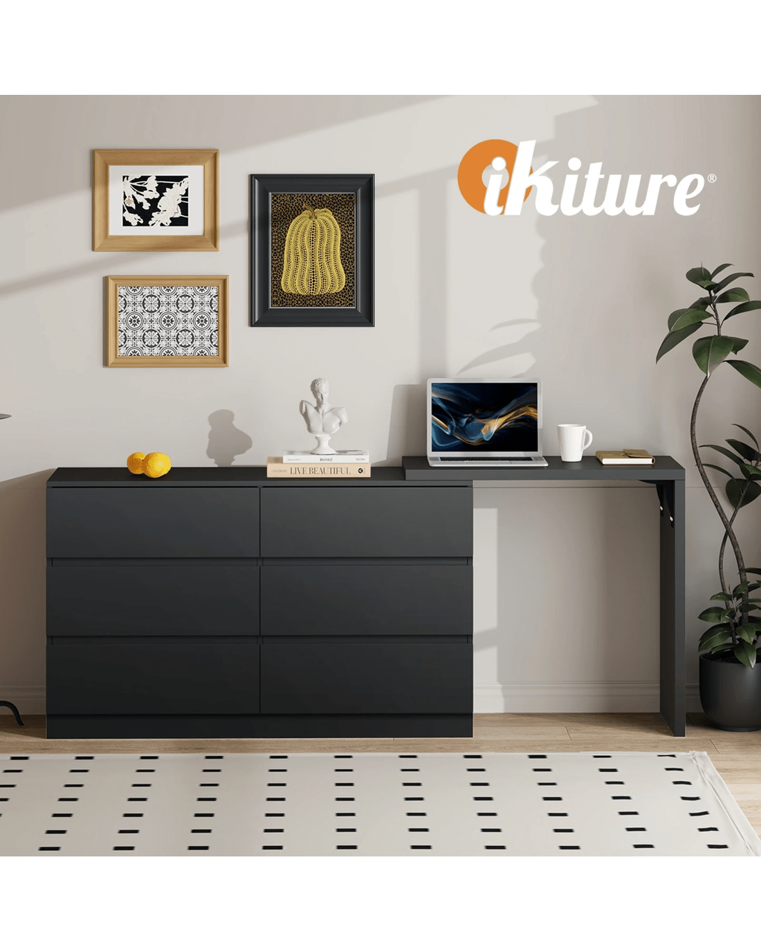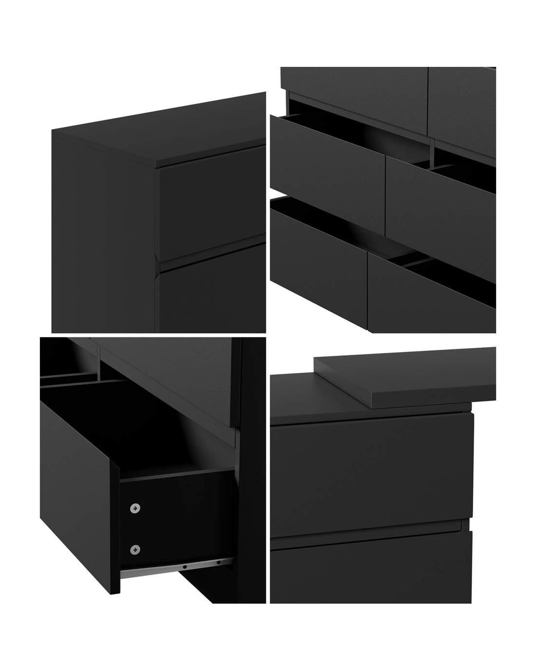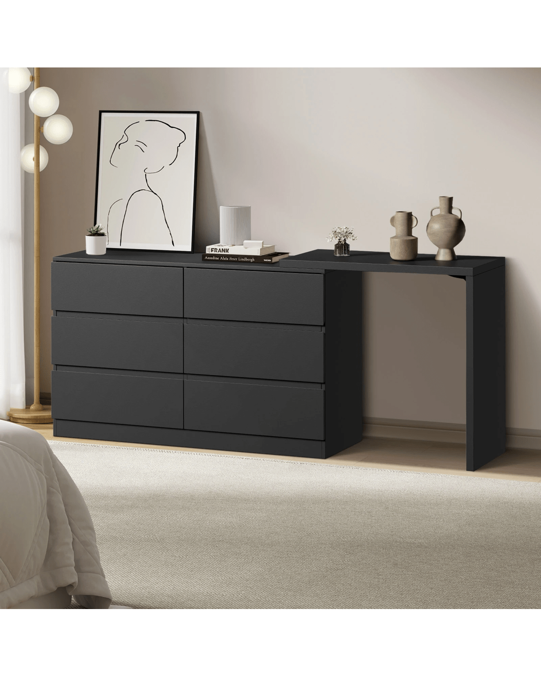 Oikiture 6 Chest Of Drawers Dresser With Side Table Storage - Black