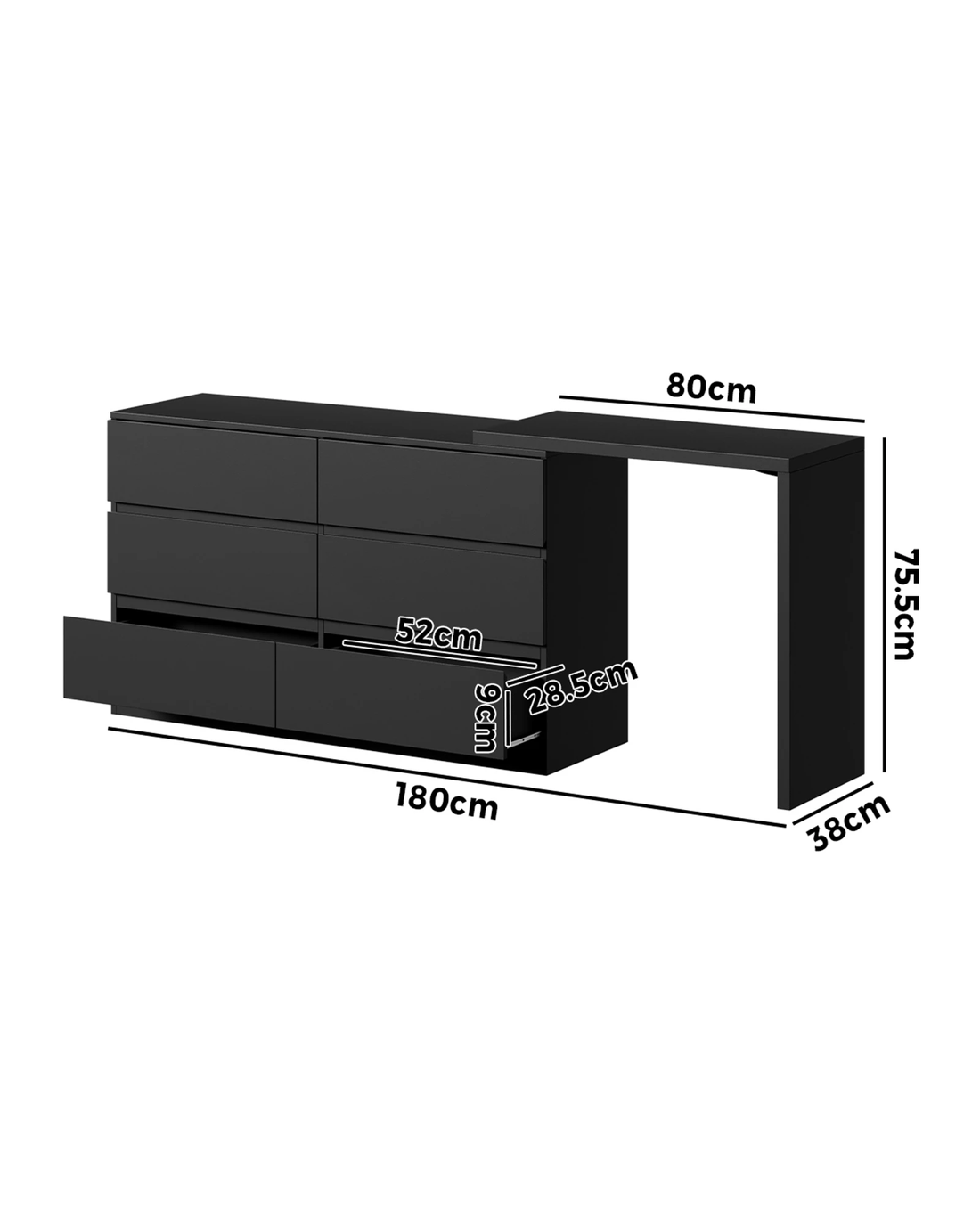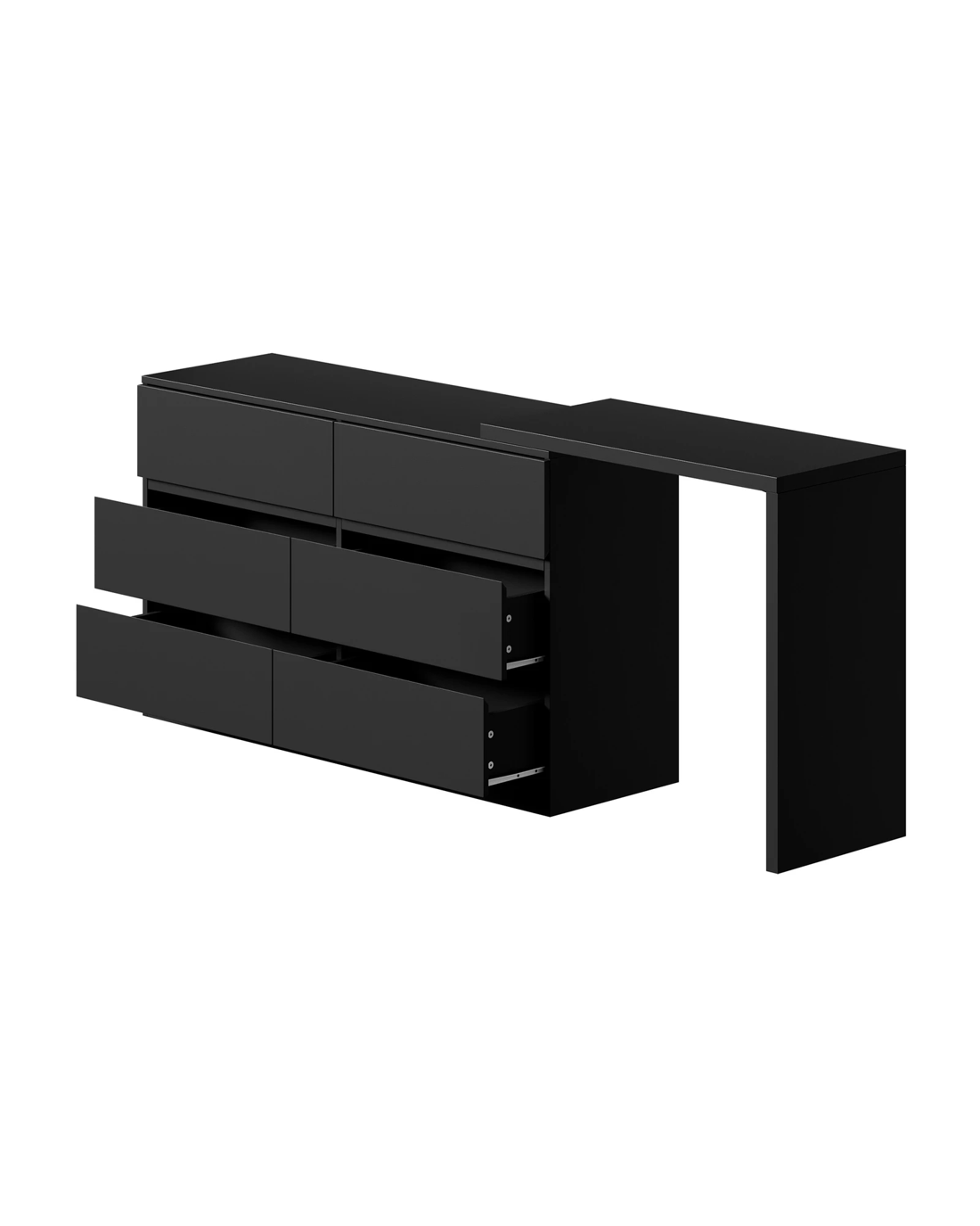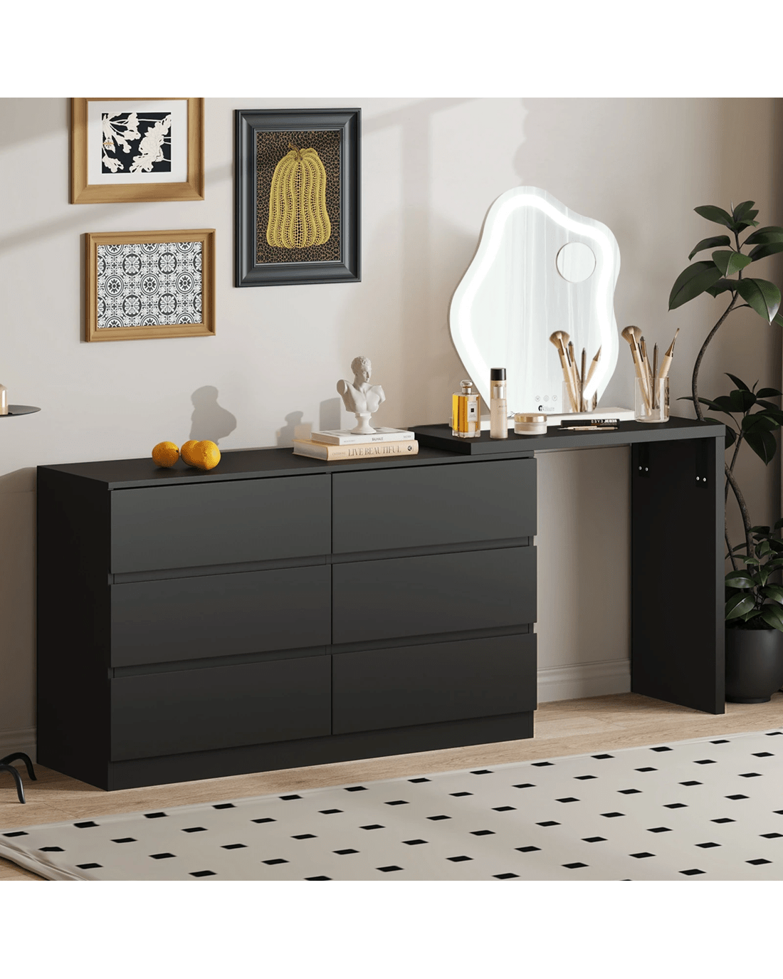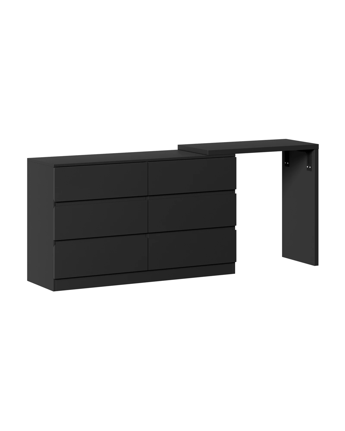 Oikiture 6 Chest Of Drawers Dresser With Side Table Storage - Black