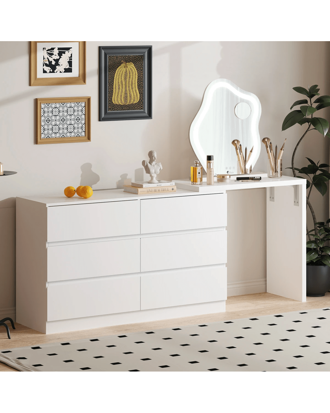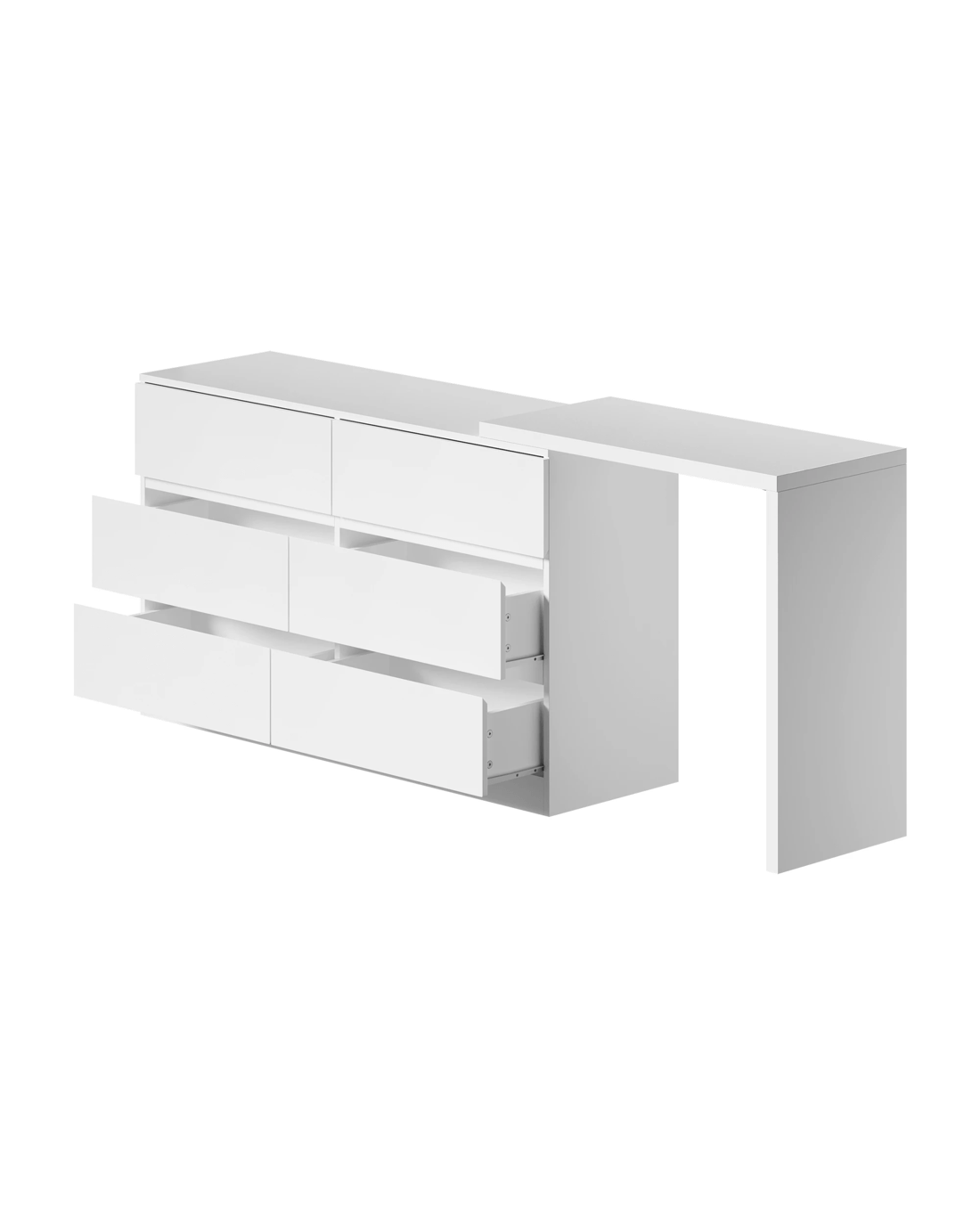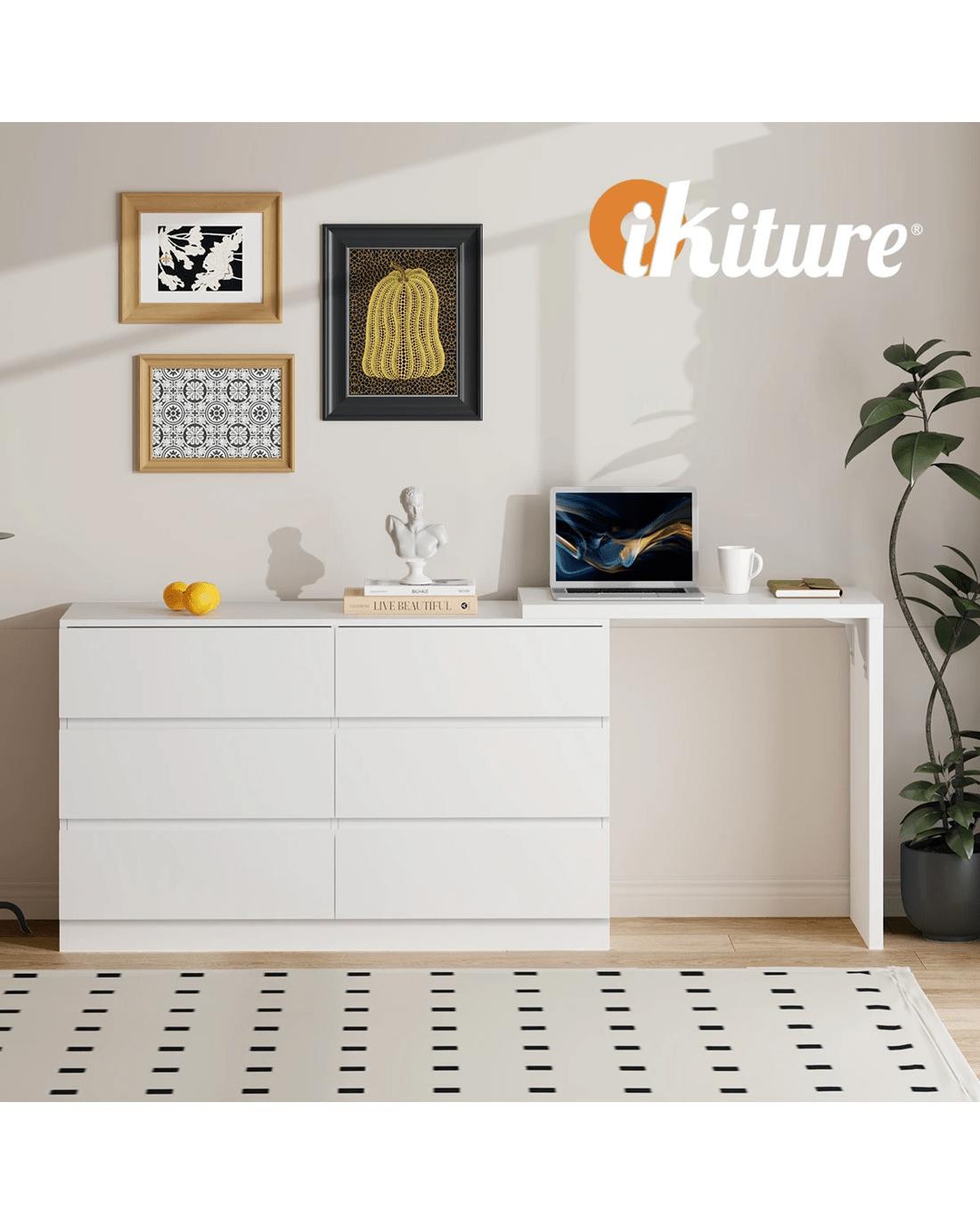 Oikiture 6 Chest Of Drawers Dresser With Side Table Storage - White